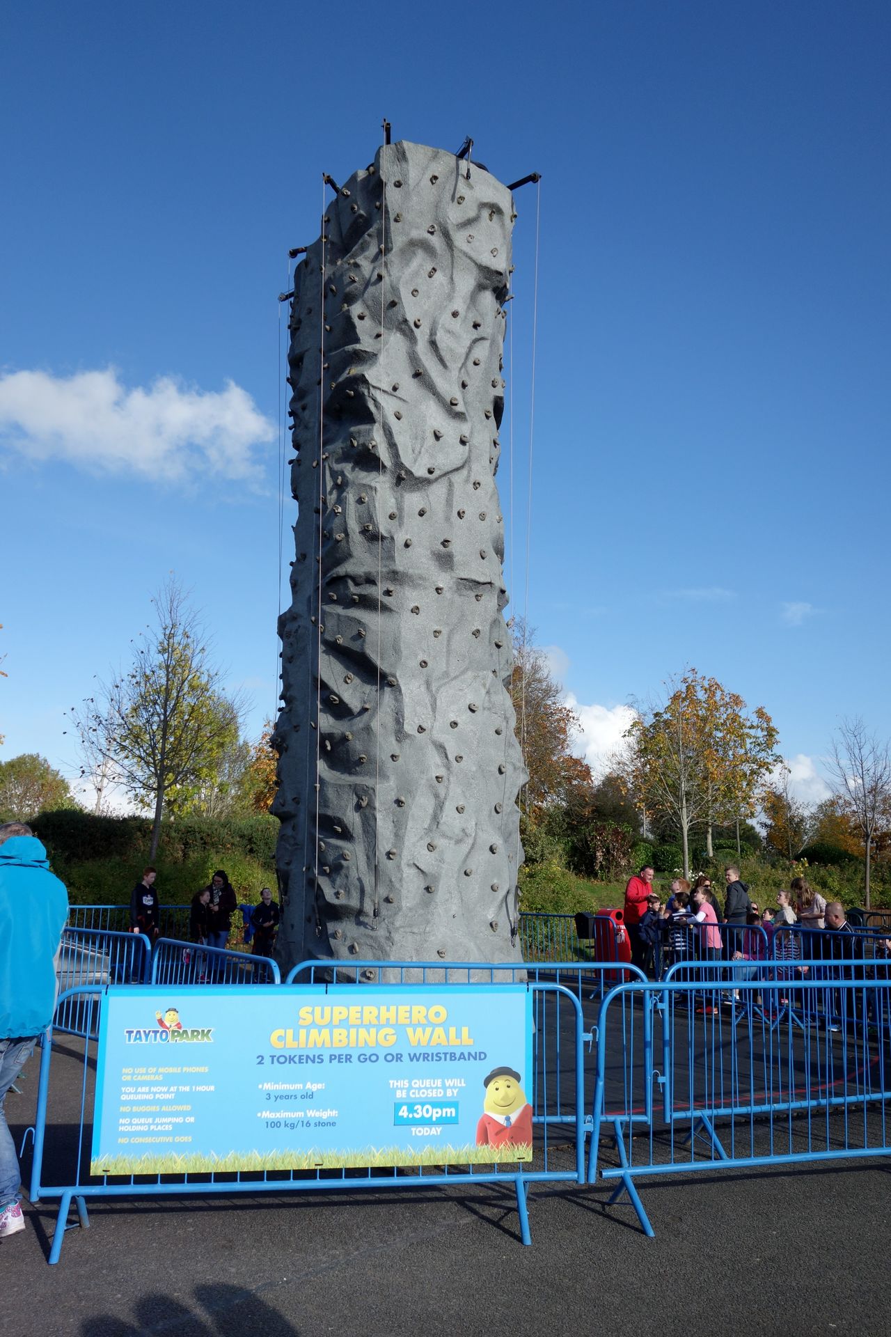 Die Wartezeit zog sich allerdings doch ziemlich in die Länge. Es gibt im Grunde 4 Reihen, an denen jeweils eine bestimmte Anzahl von Personen von einem Mitarbeiter "eingekleidet" wird. Sprich Gurtzeug, Karabiner und Helm. Dann geht es in eben jener Gruppe gemeinsam nach oben. Leider waren während meiner Wartezeit zeitweise nur zwei Mitarbeiter an der Einkleideposition zugange, sodass ich kurz darüber nachdachte, die sich kaum bewegende Schlange wieder zu verlassen. Auch aufziehende dunkle Wolken begleitet von einer frischen Brise, ließen kurz die Befürchtung aufkommen, dass die Attraktion quasi direkt vor mir geschlossen werden könnte. Letztlich konnte ich dann aber doch eingekleidet werden und den Aufstieg wagen.