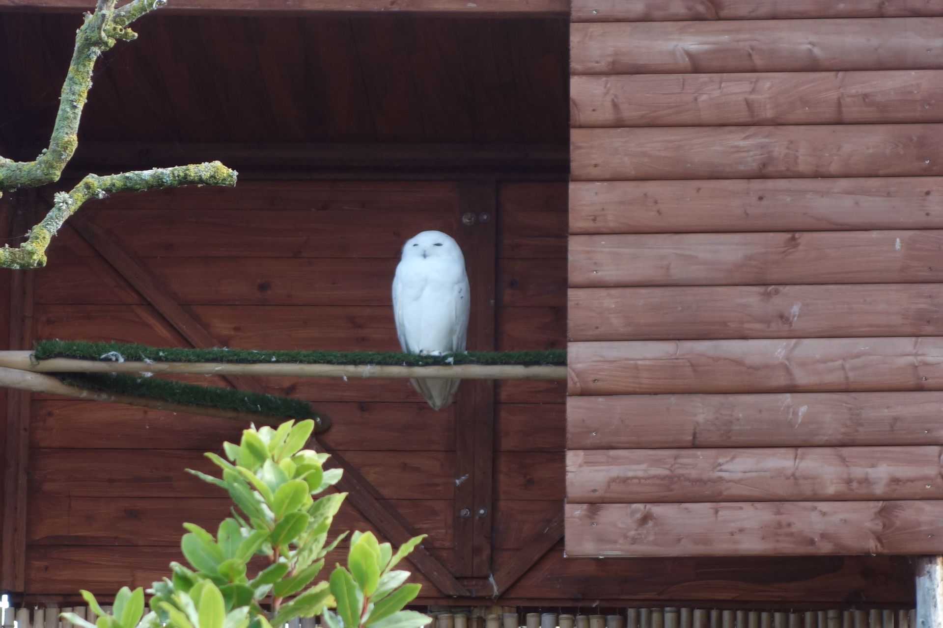 Eine verschlafen dreinblickende Schneeeule.