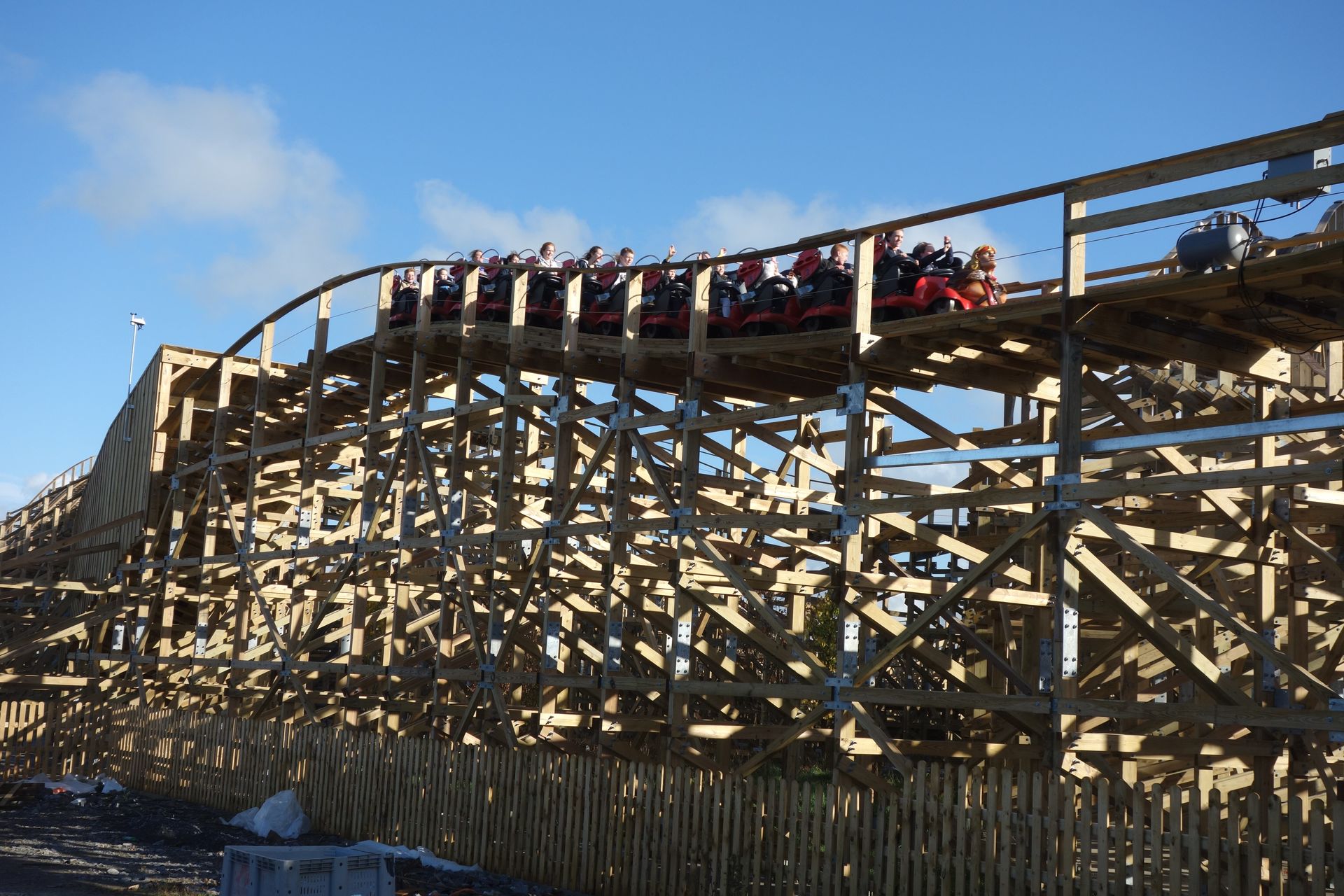 Fazit: Außerhalb Irlands war der Tayto Park bislang wohl den wenigsten ein Begriff. Selbst eingefleischte Fans rieben sich zunächst verwundert die Augen, als dieser unbekannte Park eine so große Holzachterbahn ankündigte. Und die ersten Fahrberichte klangen mehr als vielversprechend. Dennoch erschien es mir zunächst ein wenig unverschämt, dass man zusätzlich zu einem Eintrittspreis von 14¤ noch ein Wristband oder Token erwerben musste, um die wenigen richtigen Attraktionen nutzen zu können. Vor Ort zeigte sich der Park aber doch größer als gedacht. Insbesondere der ältere Parkteil mit dem Zoo ist sehr schön angelegt und überzeugt mit viel Grün. Der neue Parkteil mit den Thrill-Attraktionen ist dagegen noch sehr kahl und könnte etwas mehr Vegetation gut gebrauchen. Auch die vielen provisorischen Metallzäune als Wartebereich könnten sicherlich schöner umgesetzt werden. Aber wer weiß, was dieser Park in den kommenden Jahren noch vorhat. Mit dem tollen Woodie hat man sich jedenfalls eindrucksvoll auf die Wunschlisten der Achterbahnfans katapultiert.