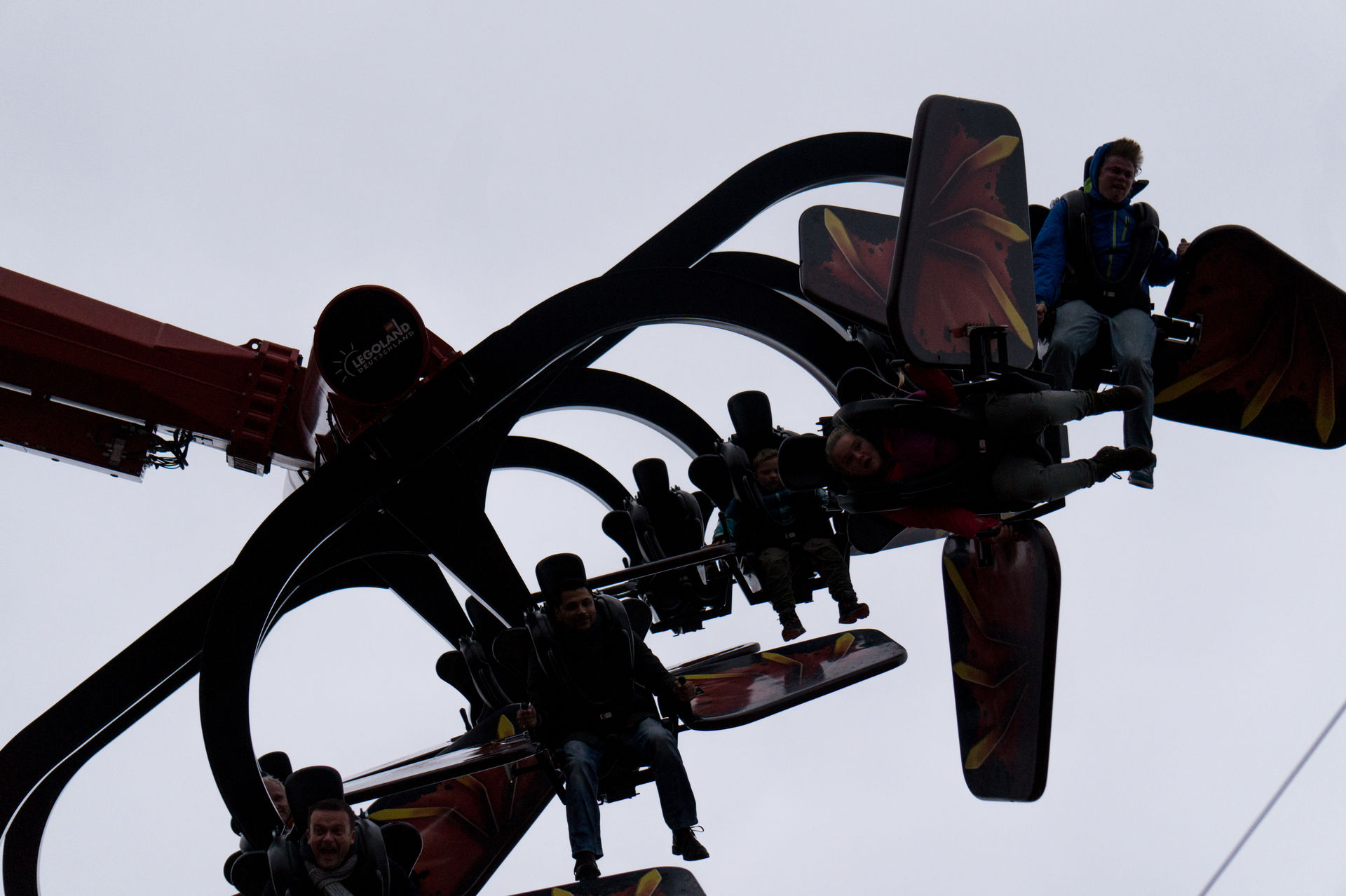 Interessanter Weise fand zu unseren Besuchszeitpunkt bereits Halloween statt, weswegen der Mittelalterbereich deutlich umgestaltet wurde und sich der Feuerdrache daher in einem anderen Gewand zeigte. Fast alle Figuren wurden mit Bettlaken zu Geistern umgestaltet und die Tonspuren deaktiviert bzw. abgeändert, was jedoch den Sinn der Themenfahrt vor dem eigentlichen Achterbahnteil ein wenig einschränkte. Auch gab es für die etwas mutigeren Kinder ein kleines Maze, sprich ein Grusellabyrinth, welches trotz des geringen Andrangs innerhalb der Woche tatsächlich betrieben wurde.