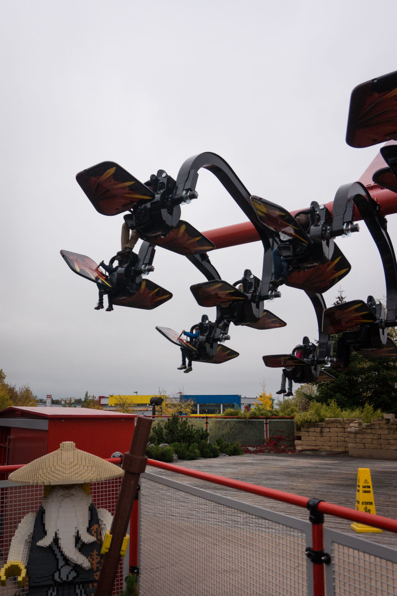 Im gleichen Jahr in dem sich der Prototyp der Sky Fly Anlagen im französischen Nigloland dem Publikum zeigte eröffnete mit Flying Ninjago die zweite Anlage dieses Typs. Das nach der recht beliebten hauseigenen Animationsserie Ninjago gestaltete Exemplar stellt seither seine mehr oder weniger wagemutigen Mitfahrer überkopf oder auch nicht, leider aber ohne The Weekend Whip, der Titelmusik der Serie, als Soundtrack. Stattdessen sammelt man unter seichter asiatisch klingender Musik seine Überschläge an, welche ohne große Übung zahlreich sein können. Leider betrieb man die Anlage einen Großteil der Zeit ohne die letzten zwei Reihen, so dass im ansonsten leeren Park Wartezeiten entstanden.