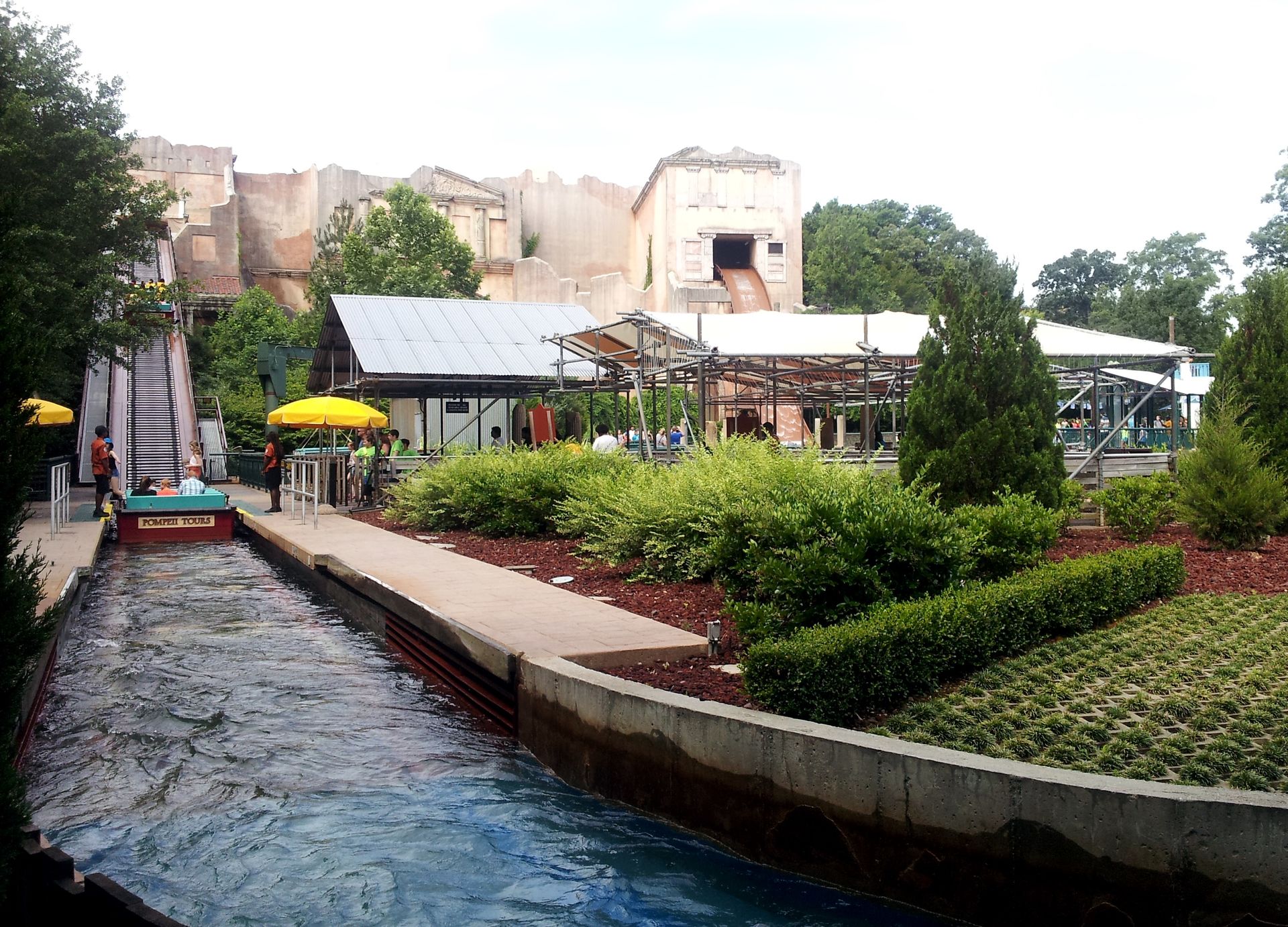 Die Warteschlange war erstaunlich kurz und als Aushilfsmatrose im Team Titanic kam ich natürlich nicht um eine Fahrt in der ersten Reihe herum. Angesichts der sonstigen Beladung mit kleinen Grundschulkindern rechneten wir mit einem tiefen Eintauchen der Front und entsprechendem Nässegrad. Wir hatten allerdings nicht damit gerechnet, dass das Boot schon beim Verlassen des Lifthills mit der kompletten Front untertauchen und damit eine ordentliche Welle auf unsere Füße schaufeln würde. Im folgenden Darkride-Part gibt man sich aber alle Mühe, die Füße wieder zu trocknen. Während man gemütlich durch die römischen Ruinen schippert, bricht der Vesuv wieder aus und bringt Säulen, Statuen und mehr zum Einsturz. Und womit darf man bei einem simulierten Vulkanausbruch absolut nicht geizen? Richtig, mit Feuer. Zunächst lodern links und rechts nur ein paar Flammen auf, doch die breiten sich explosionsartig aus. Über die Wasseroberfläche, an einer Statue empor und schließlich sogar an der Decke direkt über dem Boot. Gefühlt der halbe Raum steht in Flammen und man kommt sich vor wie in einem riesigen Toaster. Noch besser würde sich das natürlich am Ende der Fahrt machen, dann könnte man sich auch diese komischen Trockenkabinen sparen. Die stinken gegen solch ein Inferno nämlich mächtig ab.
