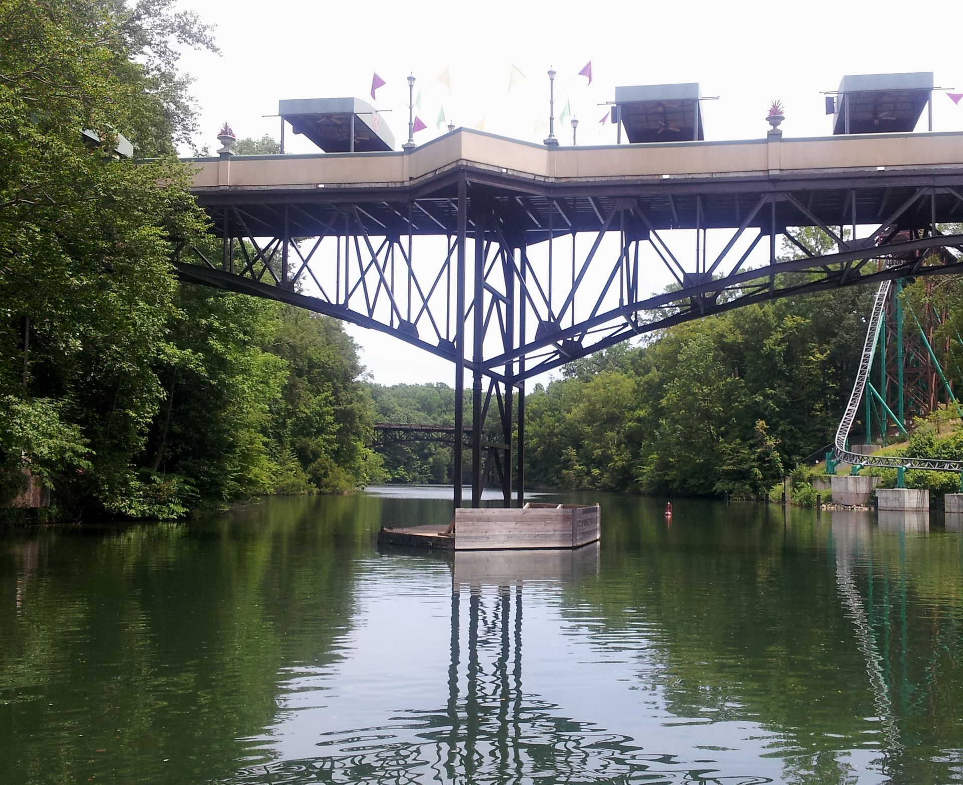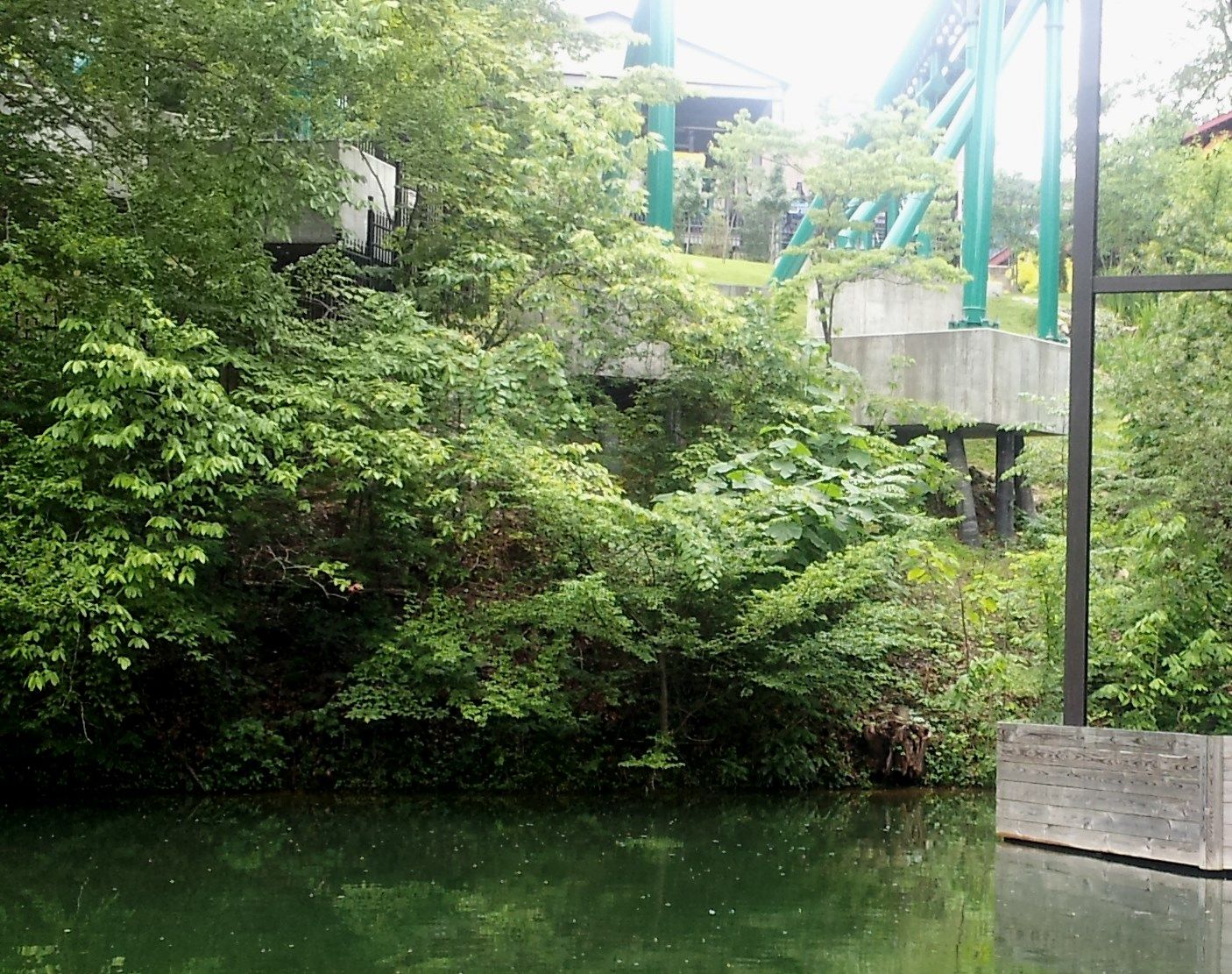 Weiter führt die Fahrt unter der Parkeisenbahn hindurch. Von Freizeitpark ist an dieser Stelle nicht mehr viel zu sehen...