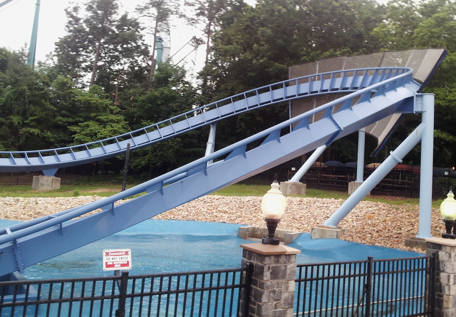 Obwohl ich ja nicht so auf Wasser stehe, hat mich das nach dem Pre-Drop vom Lifthill runter doch irgendwie enttäuscht. Aber so kann ich die Bahn wenigstens auch den Leuten wärmstens