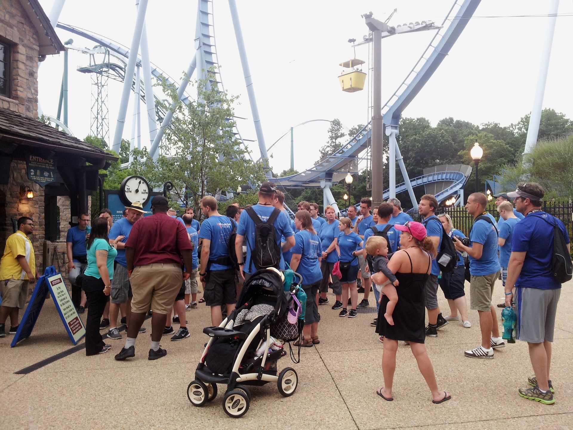 Leider ist es auch in Busch Gardens so, dass Taschen bei den Achterbahnen nicht in der Station abgelegt werden können. Allerdings kosten die Schließfächer hier auch nur 50 Cent. Und beim nagelneuen Premier-Rides-Launcher Tempesto bekommt man sogar eine kleine Brusttasche, um kleine Gegenstände wie das Handy doch mitnehmen zu können. Das kann man bei der neuesten Bahn des Parks auch gut gebrauchen, denn während wir bisher eigentlich so gut wie keine Wartezeiten hatten, mussten wir hier etwa 20-30 Minuten überbrücken.
