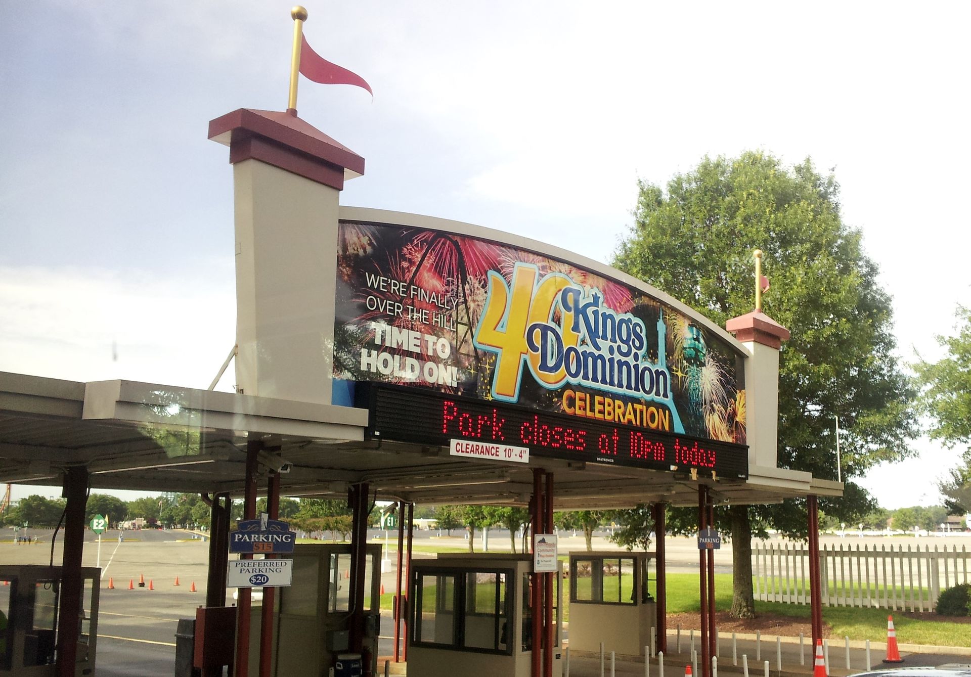 Noch immer beeindruckt von Busch Gardens machten wir uns an Tag 14 auf den Weg ins gut eine Stunde entfernte Doswell, ebenfalls Virginia. Dort wartete ein Park auf uns, der uns zumindest in Teilen ziemlich bekannt vorkam. Denn schon nach der ersten Saison war man mit dem Erfolg von Kings Island derart zufrieden, dass die Taft Broadcasting Company (diesmal in Zusammenarbeit mit Top Value Enterprises) sofort mit dem Bau eines zweiten Parks begann. In Anlehnung an den Spitznamen Virginias "Old Dominion" wurde der neue Schwesterpark auf den Namen Kings Dominion getauft.