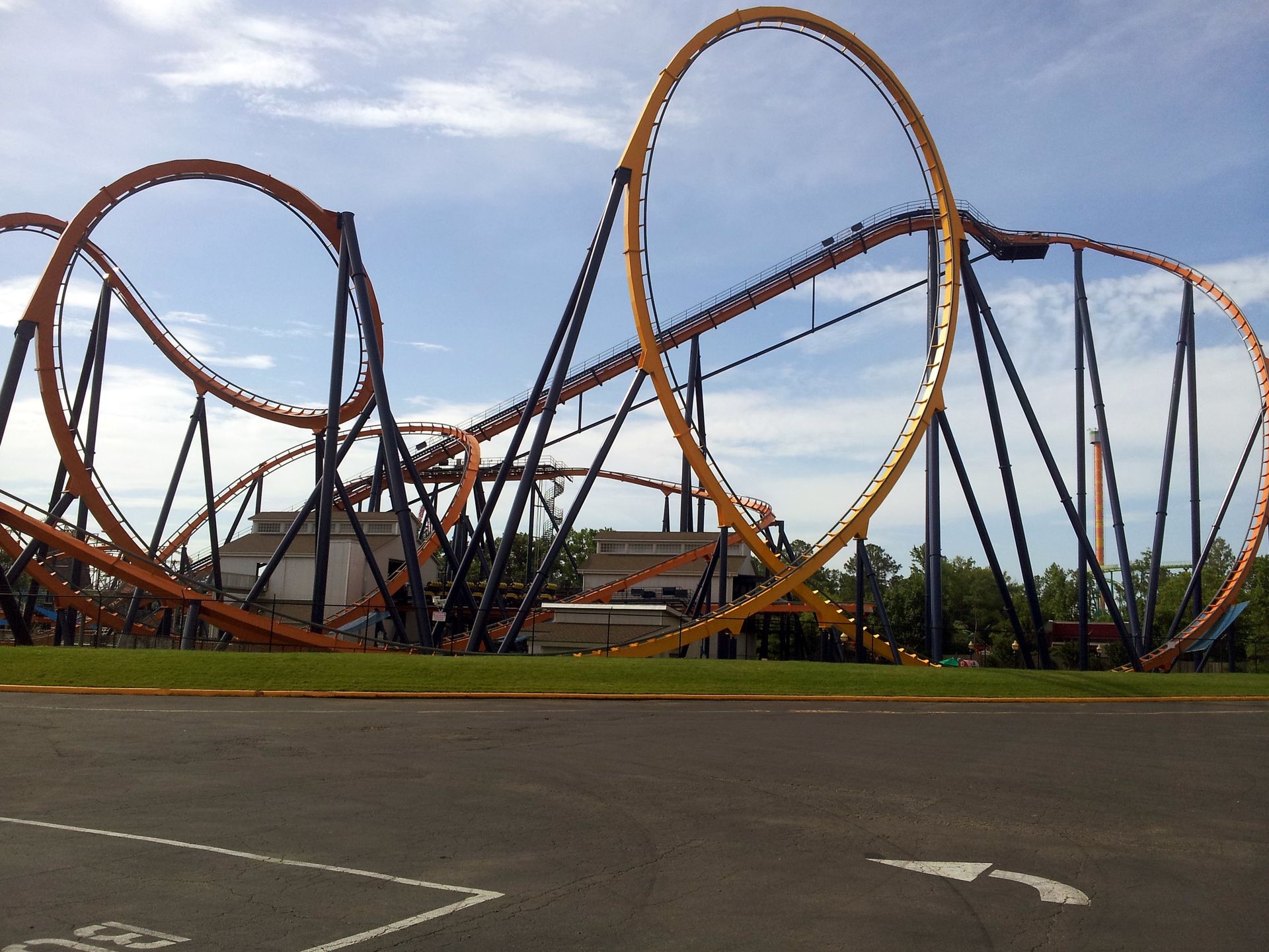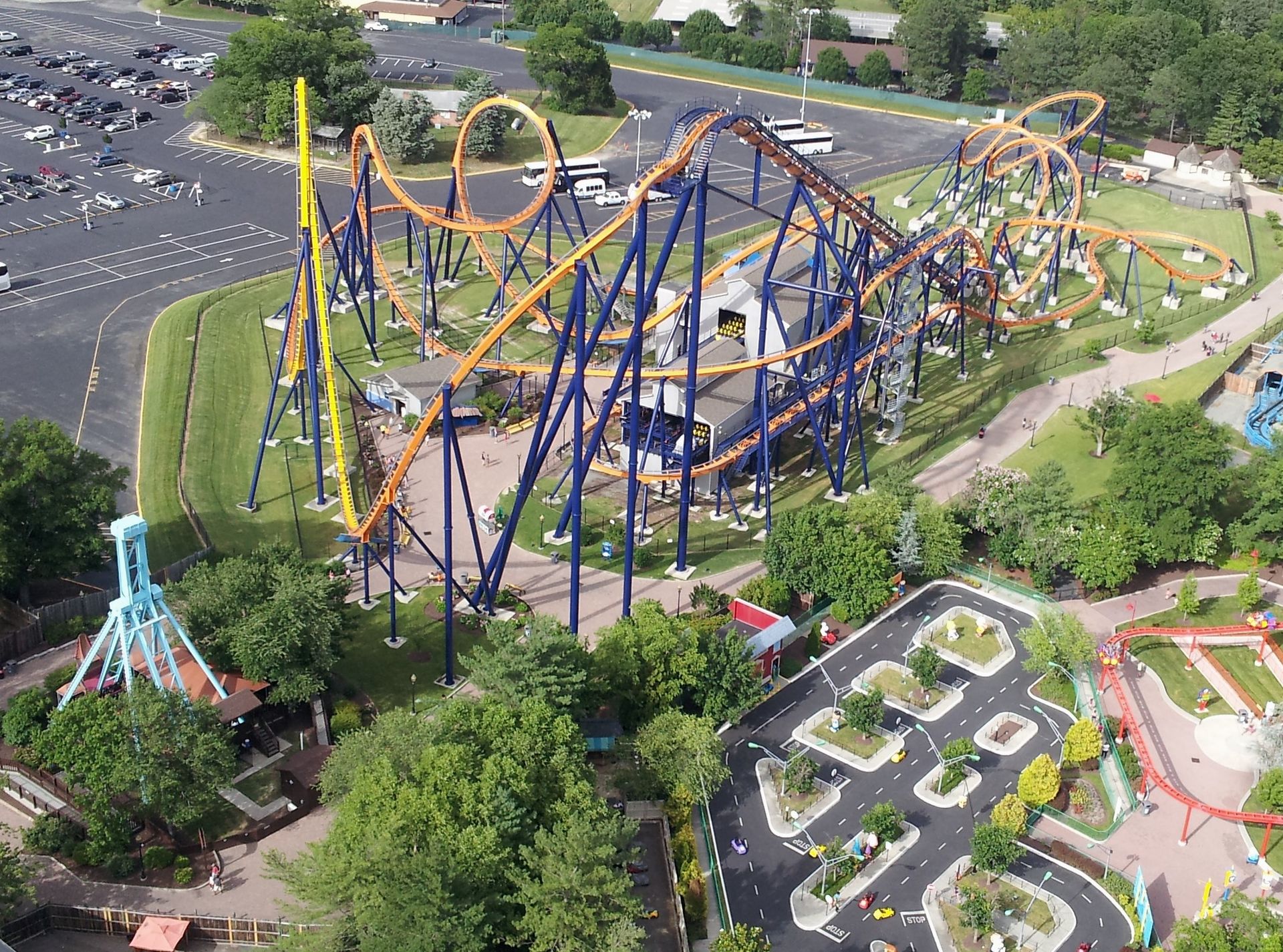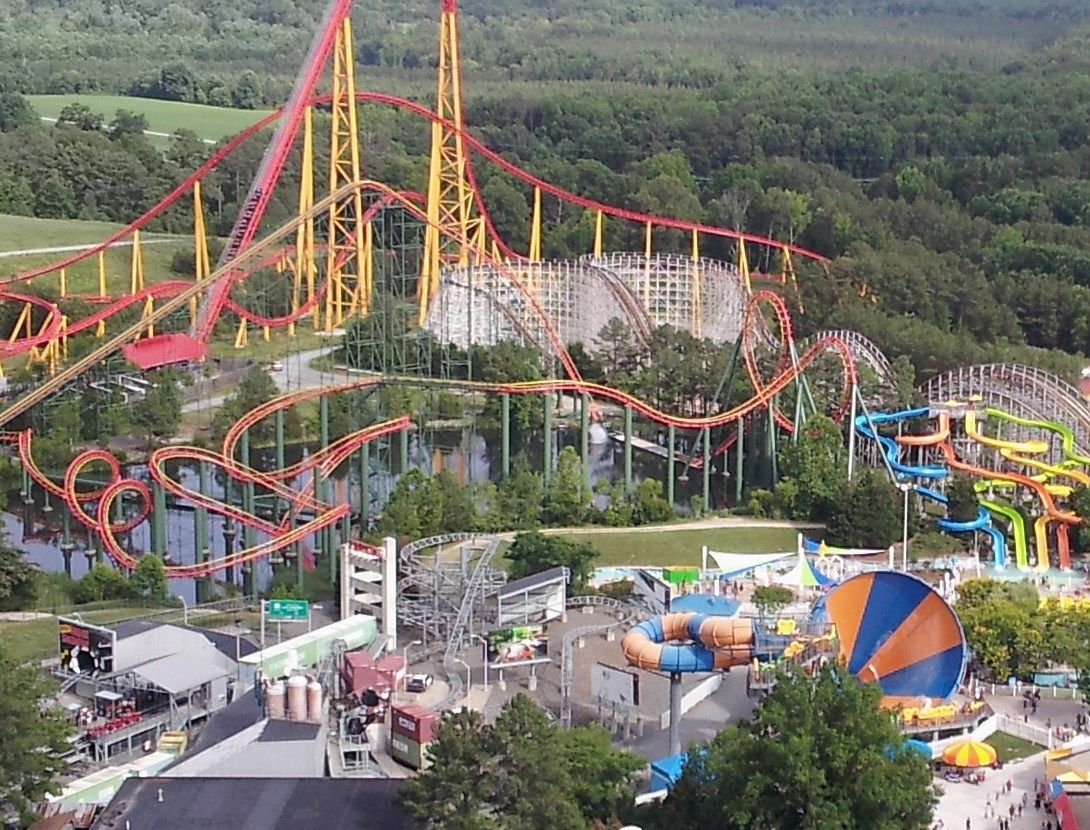 Etwas weiter Intimidator 305 und Anaconda. Unten noch zum Teil der Stunt Coaster.