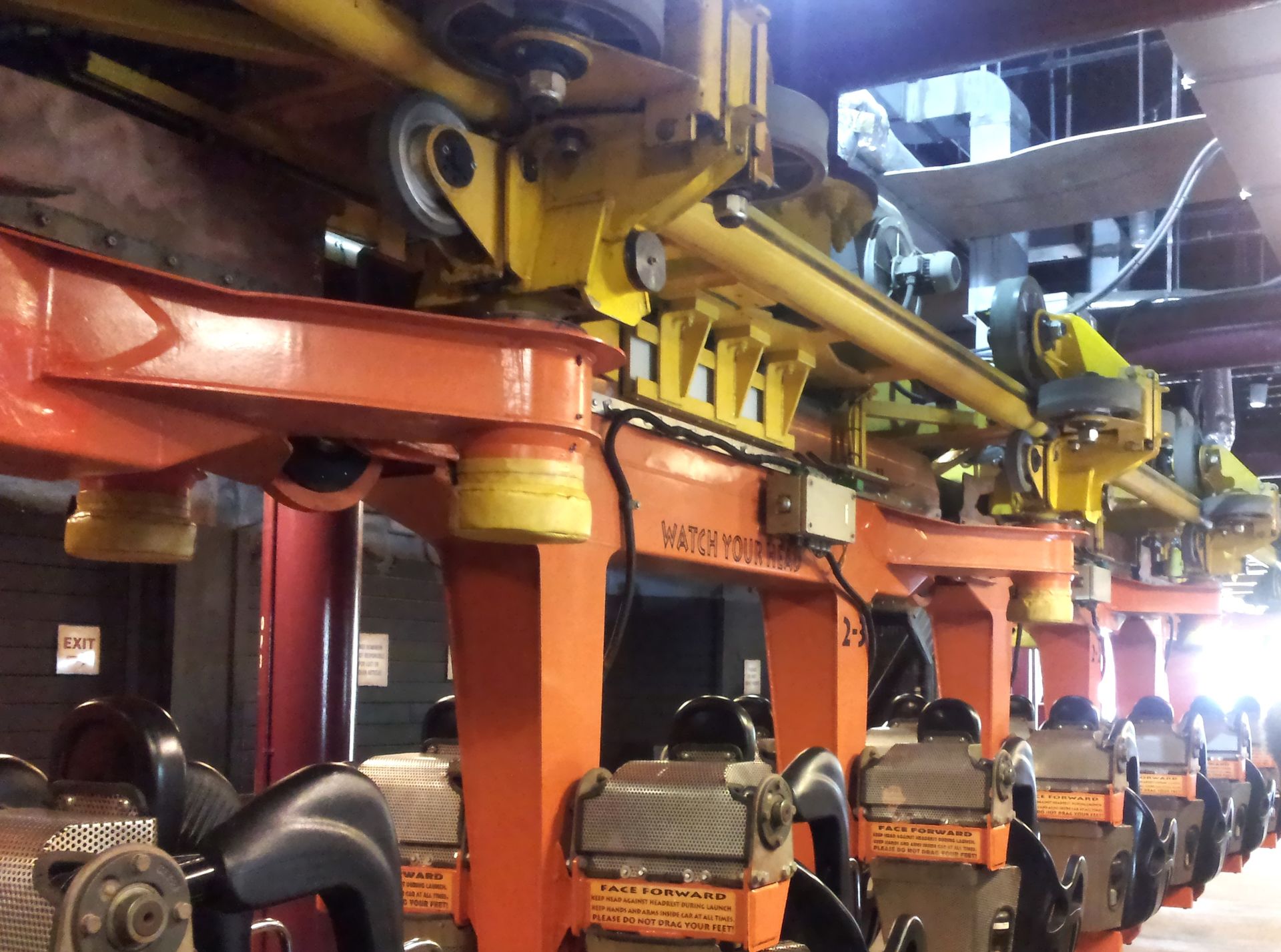 Als wir nach der ersten Fahrt wieder die Station erreichten, forderte uns Dirk von draußen auf, wieder auf der Einstiegsseite auszusteigen, um uns dort wieder anzustellen. Im Gegensatz dazu schrie Dale von vorne "Left! Left!", was ich dann auch befolgte. Als so ziemlich einziger, wie mir erst im Ausgang stehend auffiel. Nunja, also einmal schnell rausrennen und wieder durch den Eingang rein. Ein weiter Weg. Aber ich hatte ja eine ganze Fahrt lang Zeit. Nach dieser Fahrt Pause war ich dann für die dritte Runde wieder an Bord. Von da an hatten auch die Ride-Ops eingesehen, dass sie uns besser einfach machen lassen. So stieg ich zwar immer links aus, füllte dann aber von dort noch freie Plätze auf. So fuhr ich dann drei Runden hintereinander (obwohl man laut Dale nach zwei Runden einmal außenrum hätte laufen sollen). Danach wollte ich mich einmal für die letzte Reihe anstellen und stieg rechts aus. Dazu kam es dann aber nicht mehr, denn nachdem ich eine weitere Runde ausgesetzt hatte, sollte es nur noch eine Runde geben, ehe die ERT enden würde. Wir verteilten uns also alle noch auf den Zug und beendeten diese extreme ERT nach leider nur 7 Runden (von denen ich immerhin 5 mitgemacht habe).