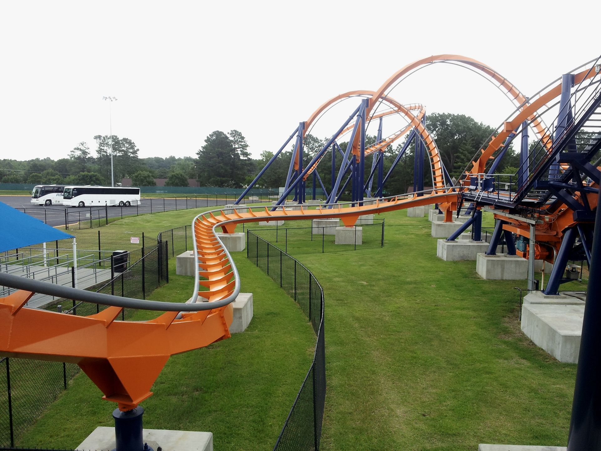 Floorless Coaster dieser Erde. Sieht aber ehrlich gesagt komisch aus. Eine dunklere Farbe für den Rest der Strecke hätte dann besser ausgesehen. Außerdem ist der