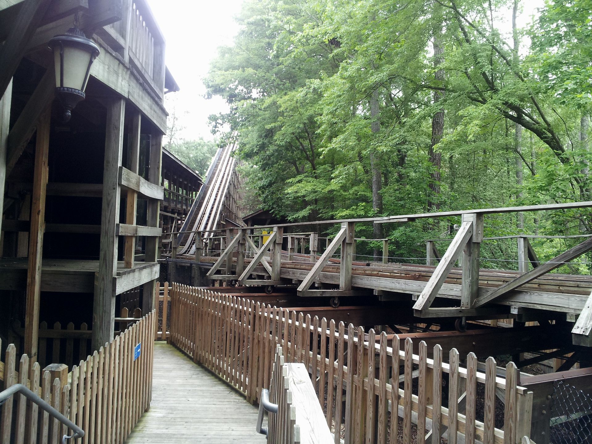 Trimbrake. Zwar sind die geraden Streckenabschnitte mit den Airtimehügeln deutlich besser, die rauen Kurven nehmen aber jeglichen Fahrspaß. Normalerweise plädiere ich ja für den Erhalt einer jeden Achterbahn, besonders wenn sie aus Holz ist. Aber hier wäre ein Abriss sinnvoller gewesen als bei Shockwave. Zur Not könnte
