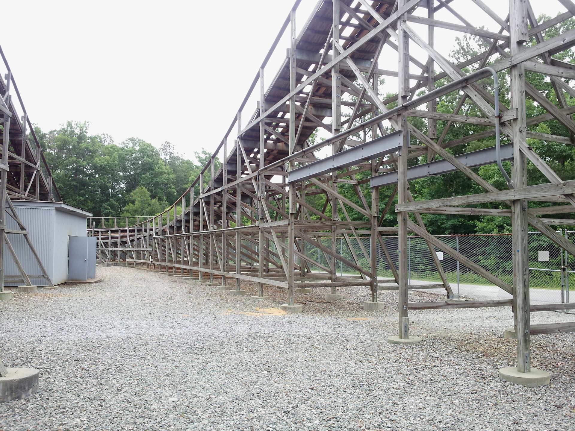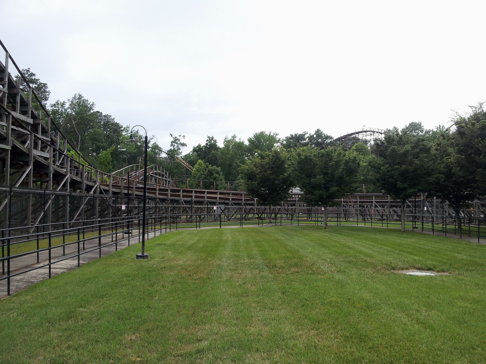 Leider habe ich von diesem Woodie aus dem Jahr 1982 nur dieses eine Bild. Das Layout ist identisch zum ein Jahr vorher eröffneten Wild Beast in Canada's Wonderland und wurde inspiriert von Coney Islands Wildcat. Also nicht das Coney Island in New York, sondern in Cincinnati, Ohio (dem Quasi-Vorgänger von Kings Island). Aus knapp 27 Metern Höhe führt die Strecke 960 Meter durch den dichten Wald. Über einige flache Hügel und ein paar hohe, langsam durchfahrene Kurven. Ein ganz netter Woodie, aber an Rebel Yell kommt der bei weitem nicht ran.