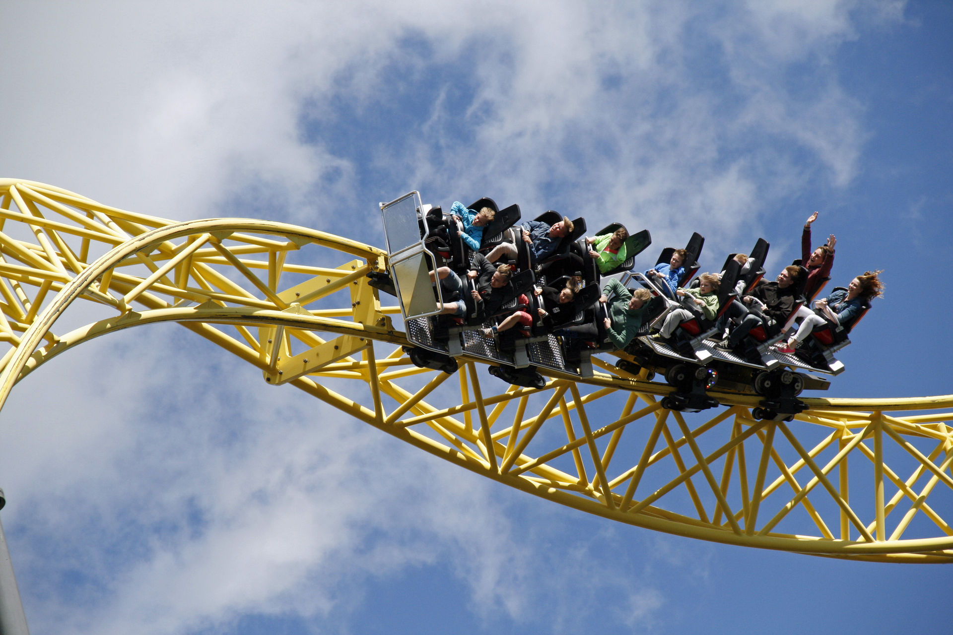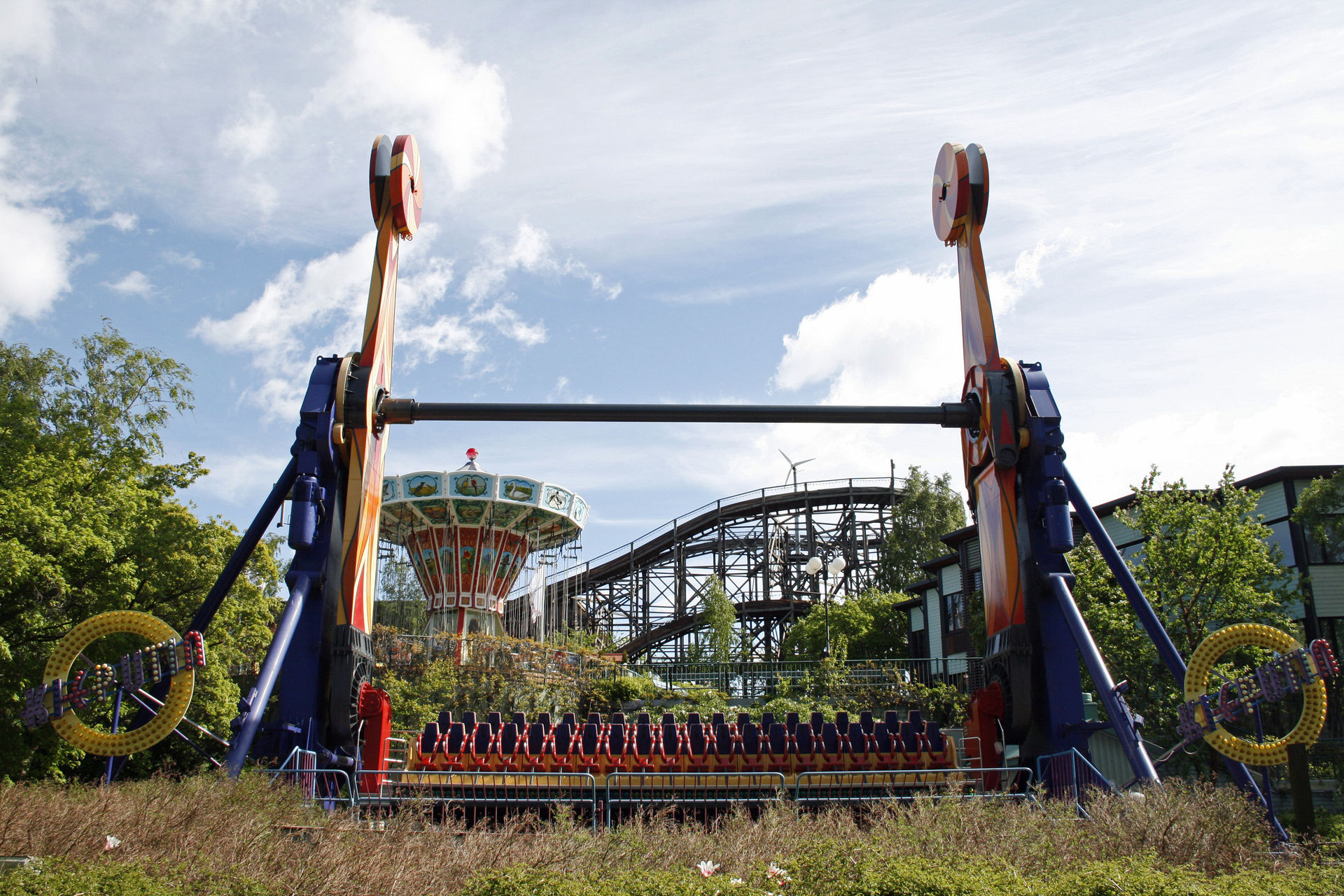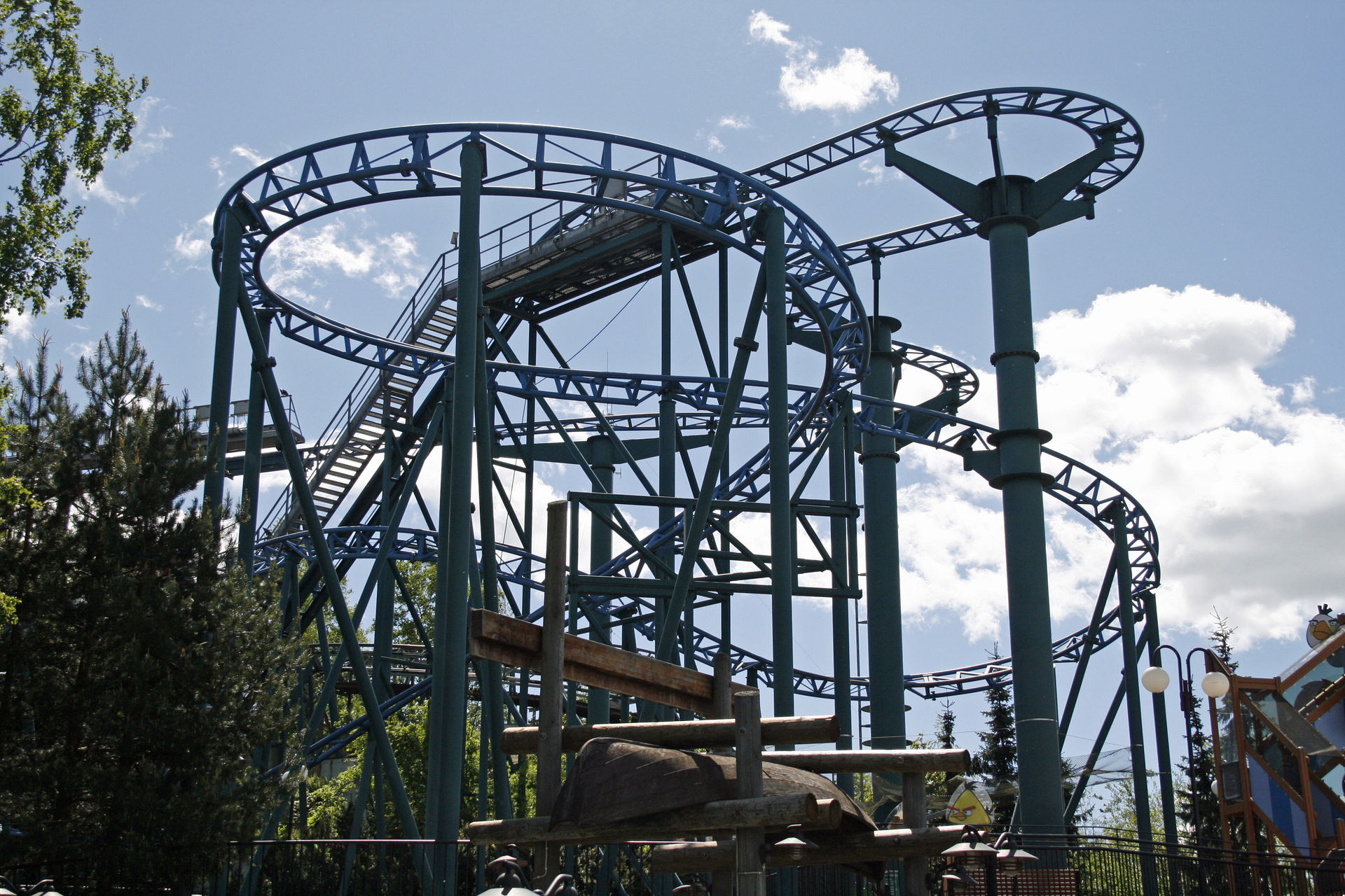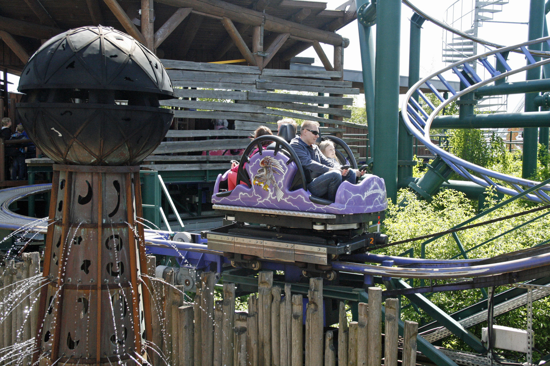 Spinner - und Supports perfekt eingepasst zwischen Wasserbahn, Felsen, Schaukel und Powered Coaster