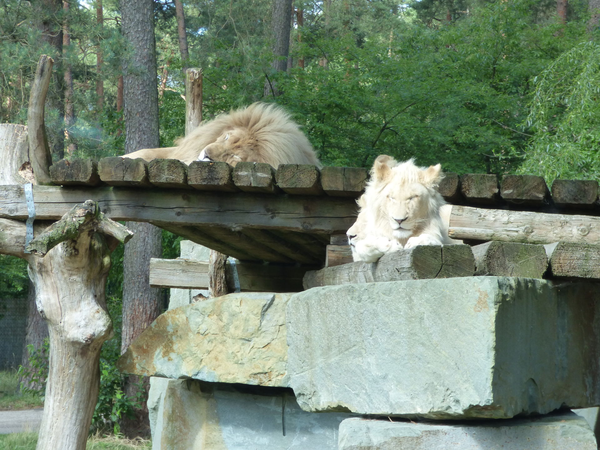 Nach dem Zirkusbesuch sahen wir uns dann die Anlagen der weißen Tiger und der weißen Löwen an. Ich finde beide Anlagen sehr schön und großzügig gestaltet. Mittlerweile gibt es auch Rundgänge in entsprechender Höhe so dass man die Tiere auch perfekt sehen kann, das war früher nicht ganz so einfach gewesen.