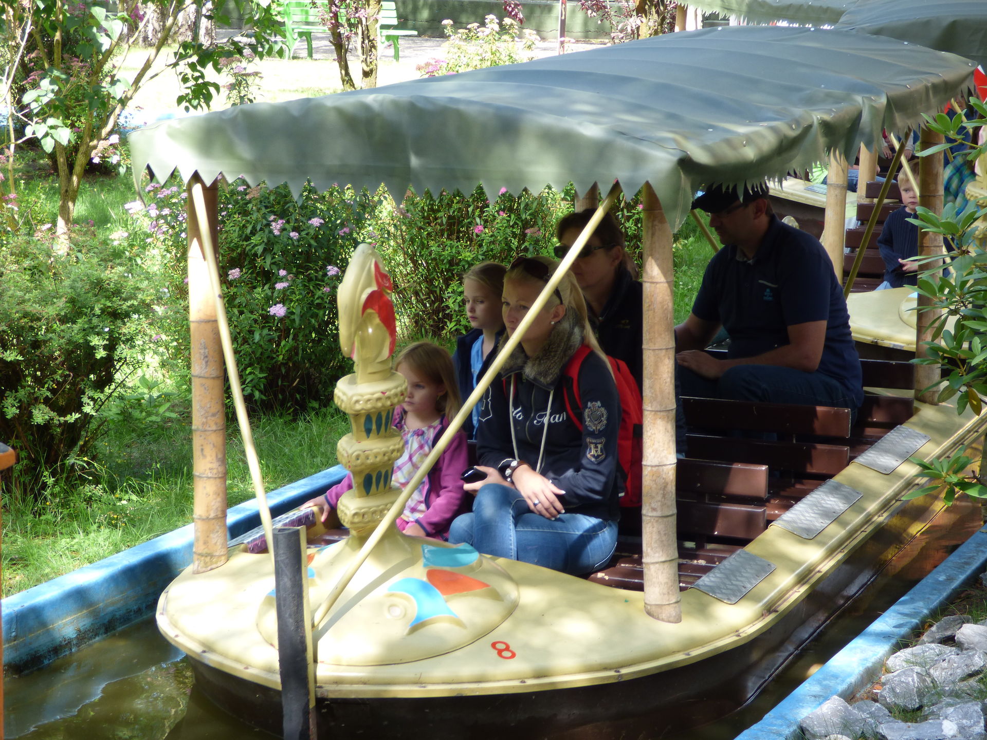 Normalerweise stellt man sich ja in einem Park nicht direkt an der ersten Attraktion an auf die man trifft, da so gut wie alle dorthin pilgern aber Mia wollte unbedingt als erstes mit der Kanalfahrt umherschippern. Hier bekamen wir bereits einen kleinen Vorgeschmack wie voll es heute im Park werden sollte, knappe 20 Minuten mussten wir warten.