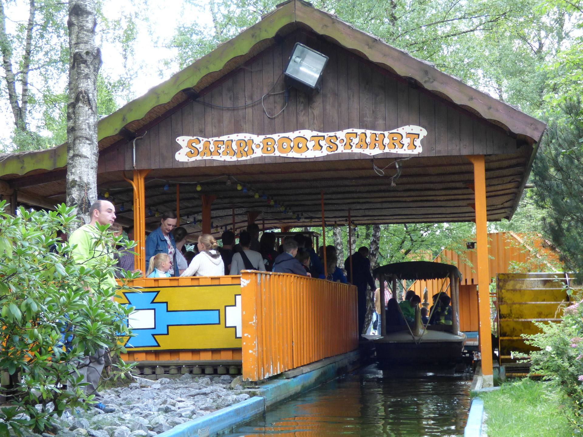 Beim Anstehen erinnerte ich mich kurz an meinen letzten Besuch mit den verrückten onridern vor 10 Jahren und dem Gag mit dem heruntergefallenen "K". Da die Attraktion mittlerweile "Safari Bootsfahrt" heißt kann man den leider nicht mehr bringen.