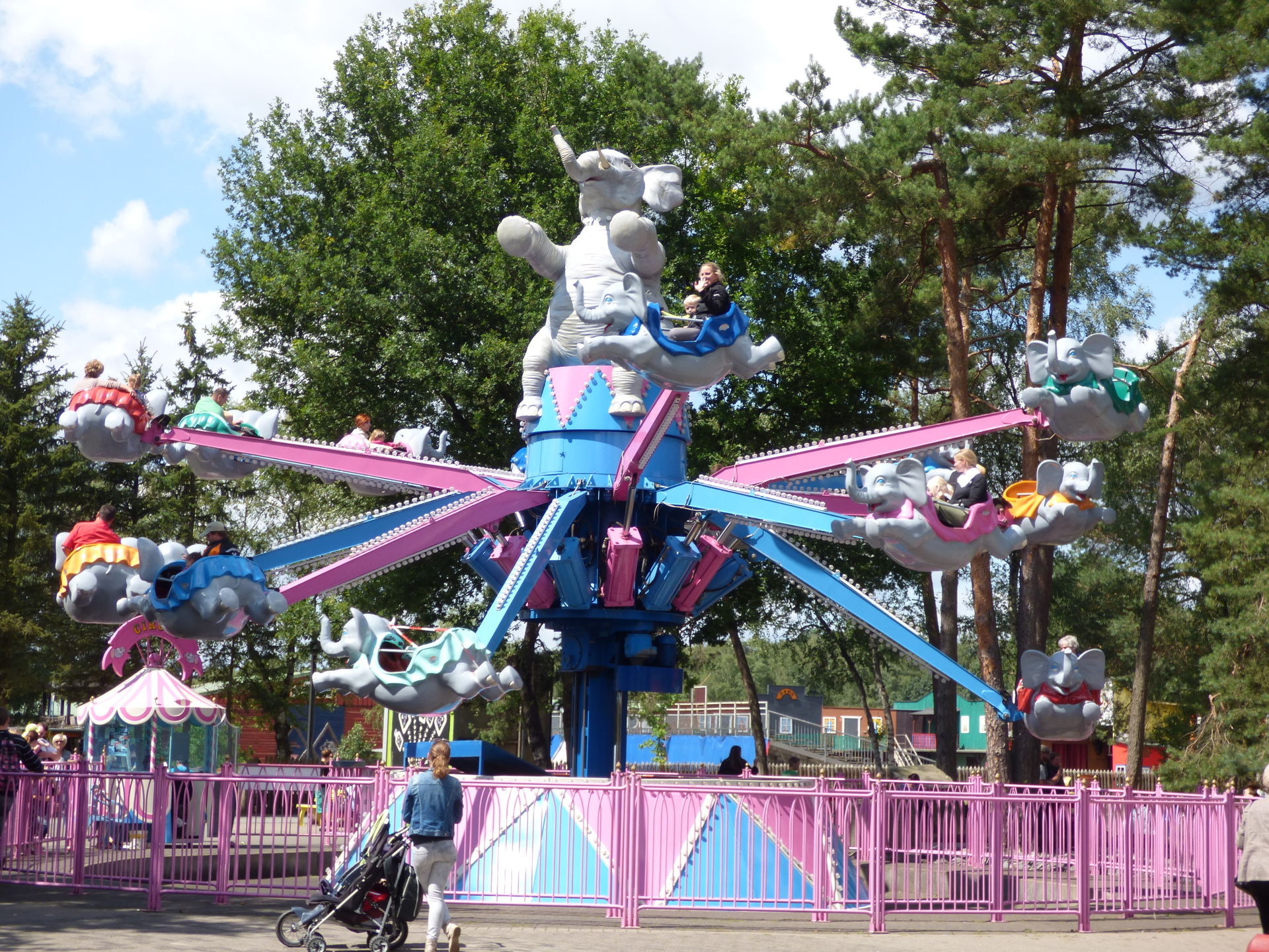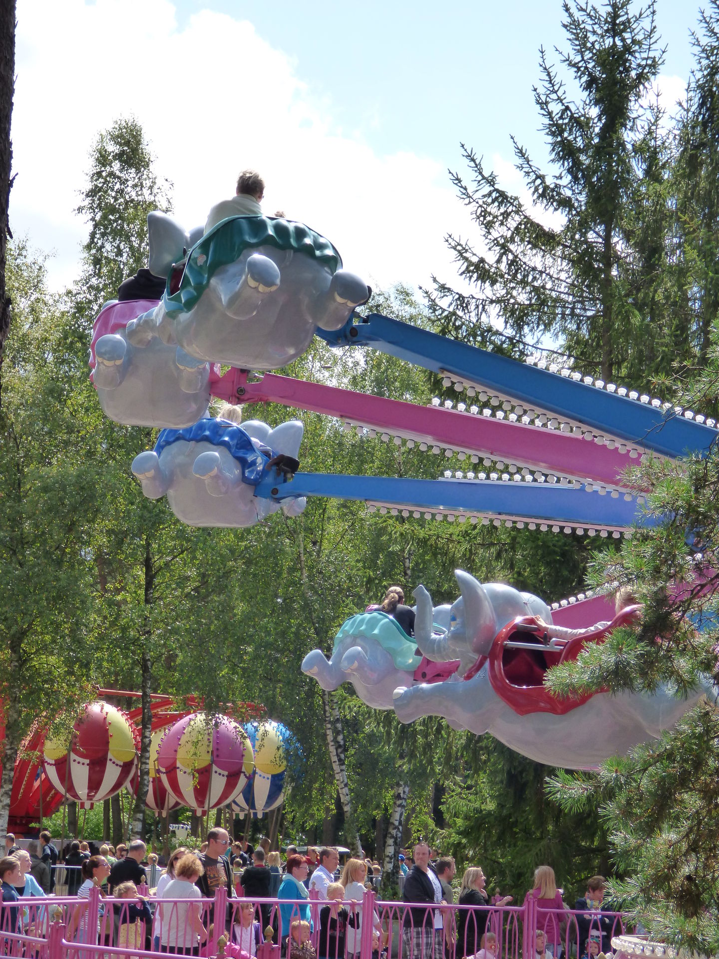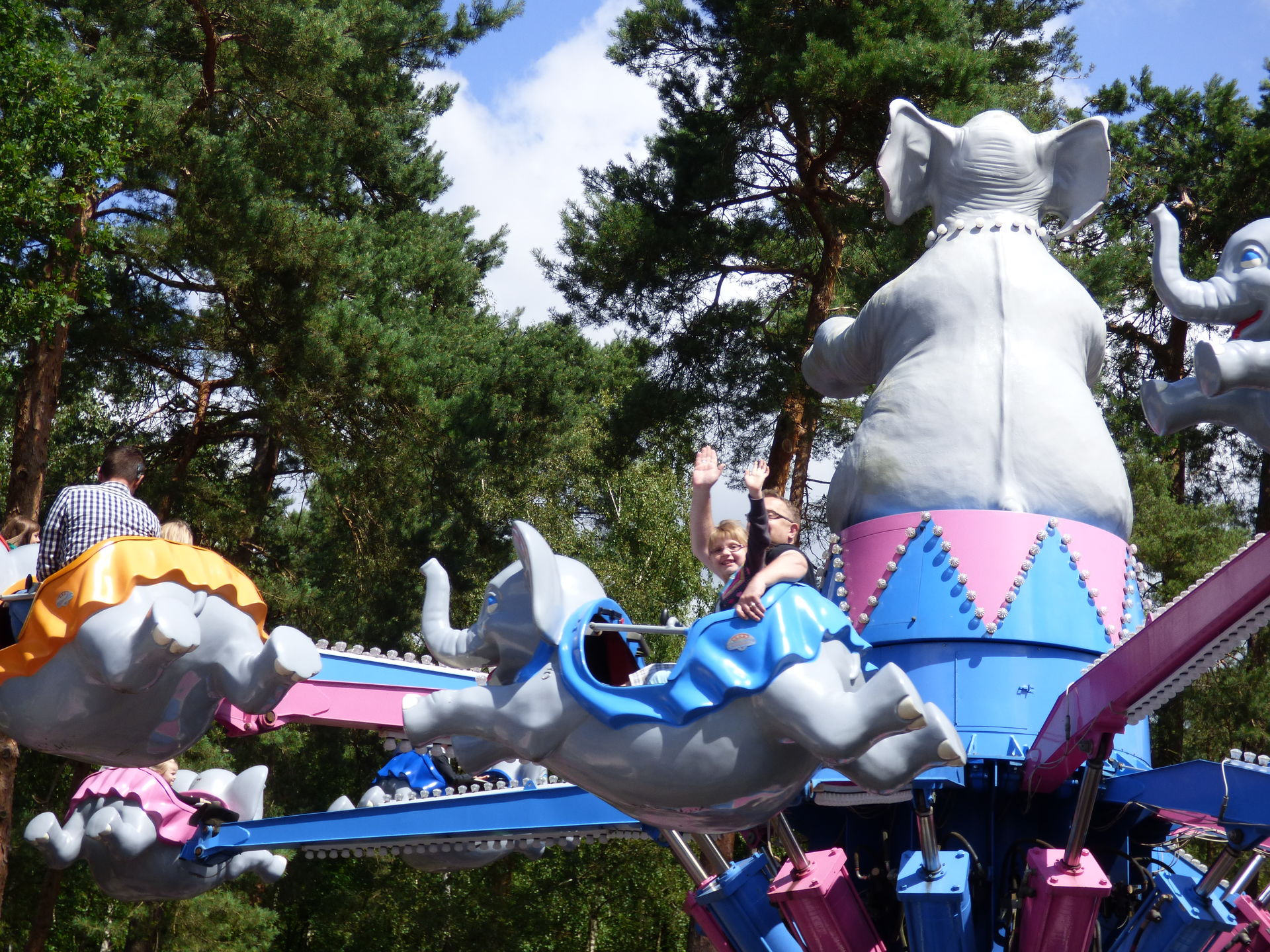 Mittlerweile war der Großteil der Besucher wohl durch den Safaripark durch, denn jetzt wurde es langsam richtig voll im Park. Als wir bei den fliegenden Elefanten ankamen war es dort schon mal richtig voll. Gut, die Abfertigung war auch eine Vollkatastrofe aber das sollten wir heute noch des öfteren erleben.