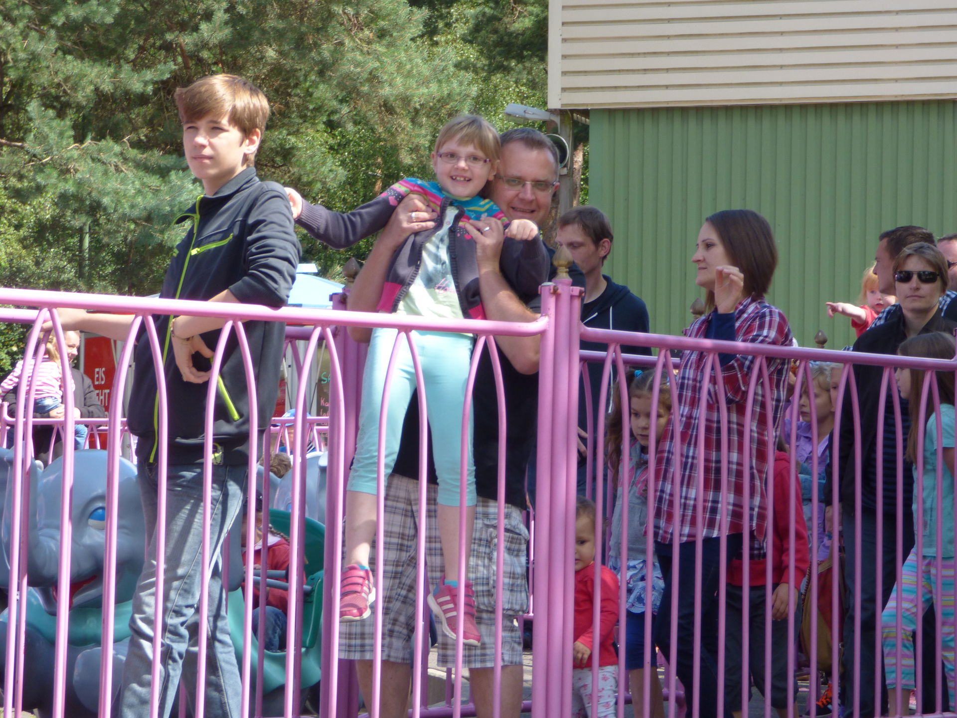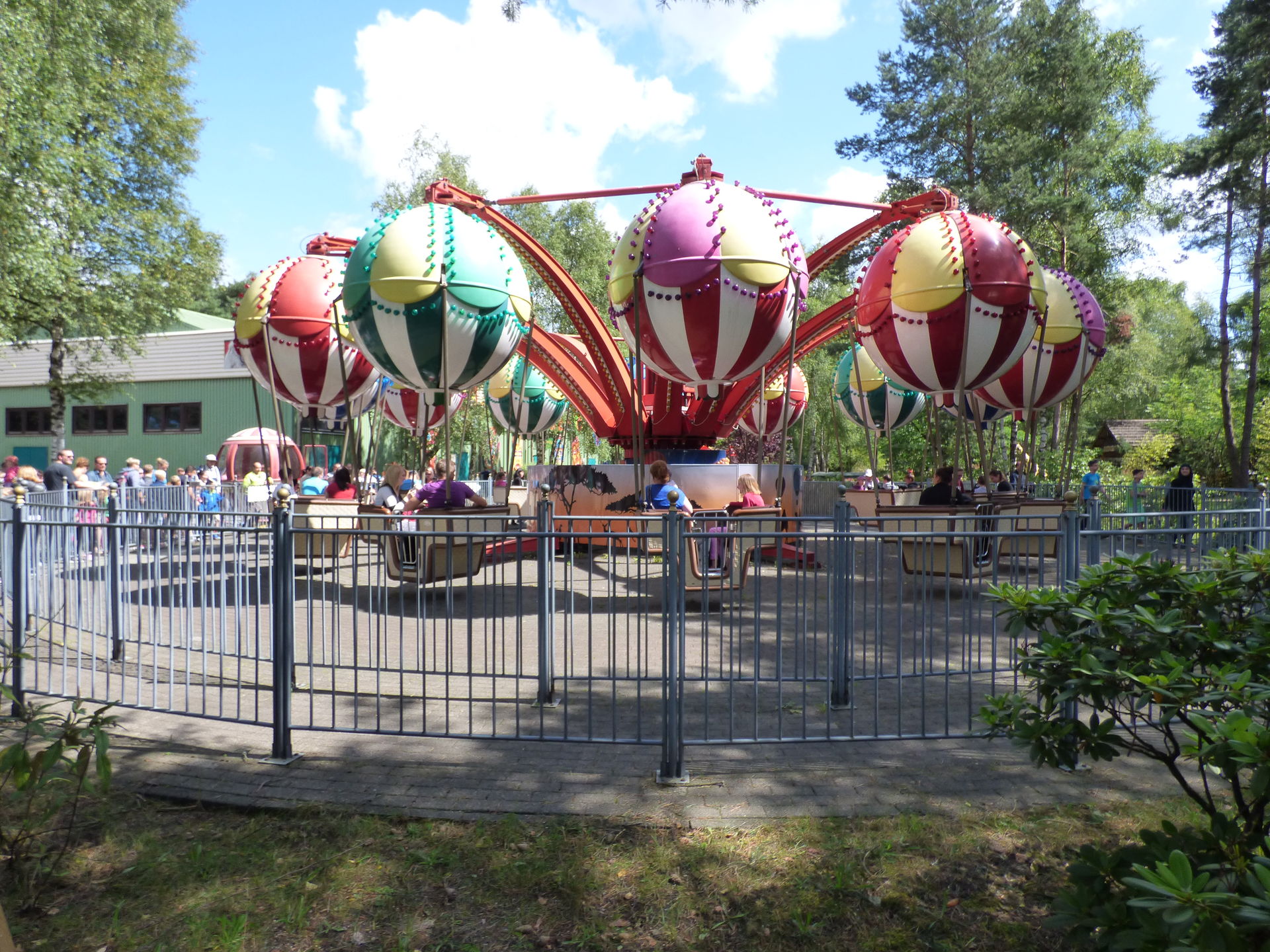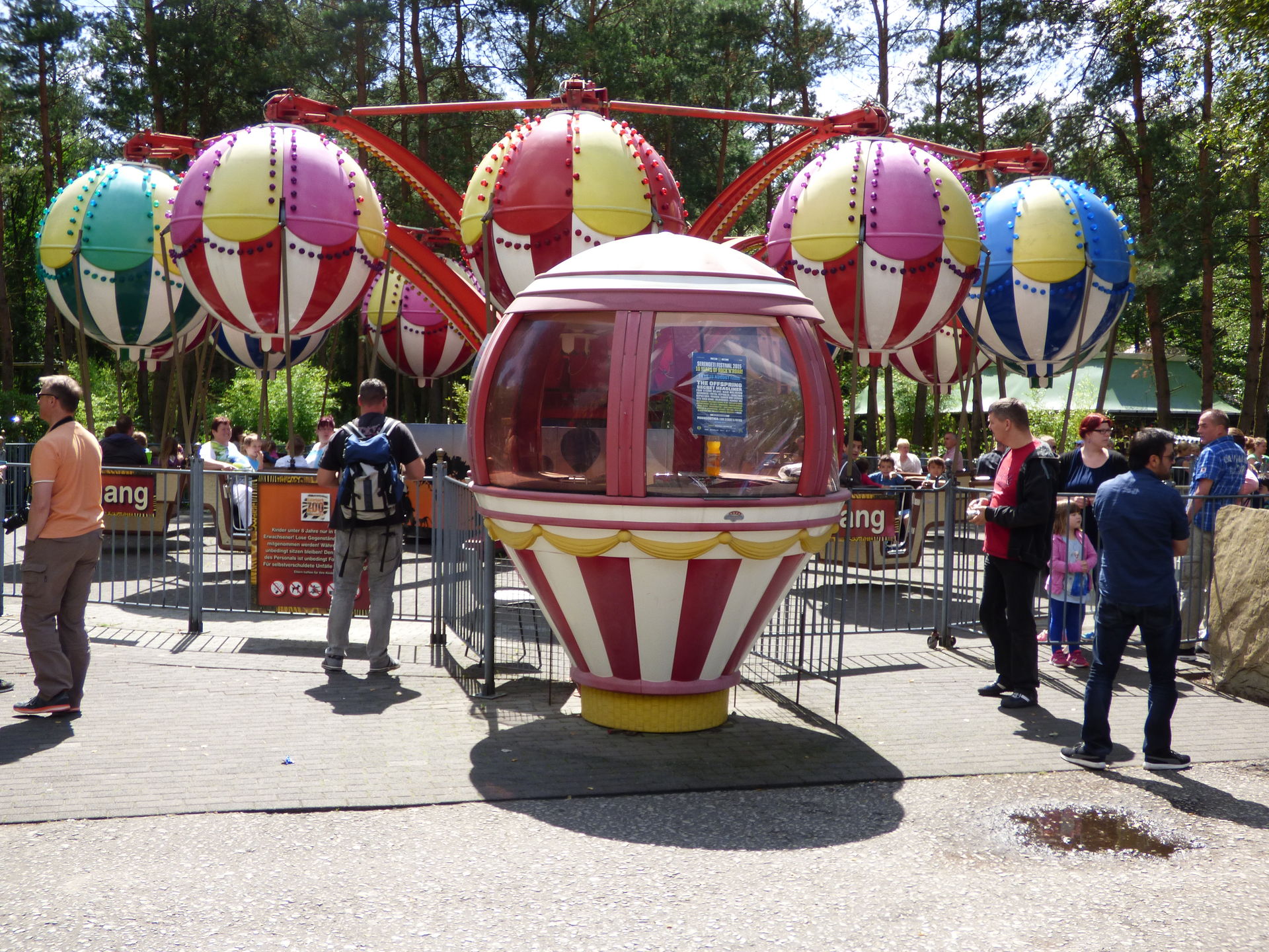 Mittlerweile war der Großteil der Besucher wohl durch den Safaripark durch, denn jetzt wurde es langsam richtig voll im Park. Als wir bei den fliegenden Elefanten ankamen war es dort schon mal richtig voll. Gut, die Abfertigung war auch eine Vollkatastrofe aber das sollten wir heute noch des öfteren erleben.