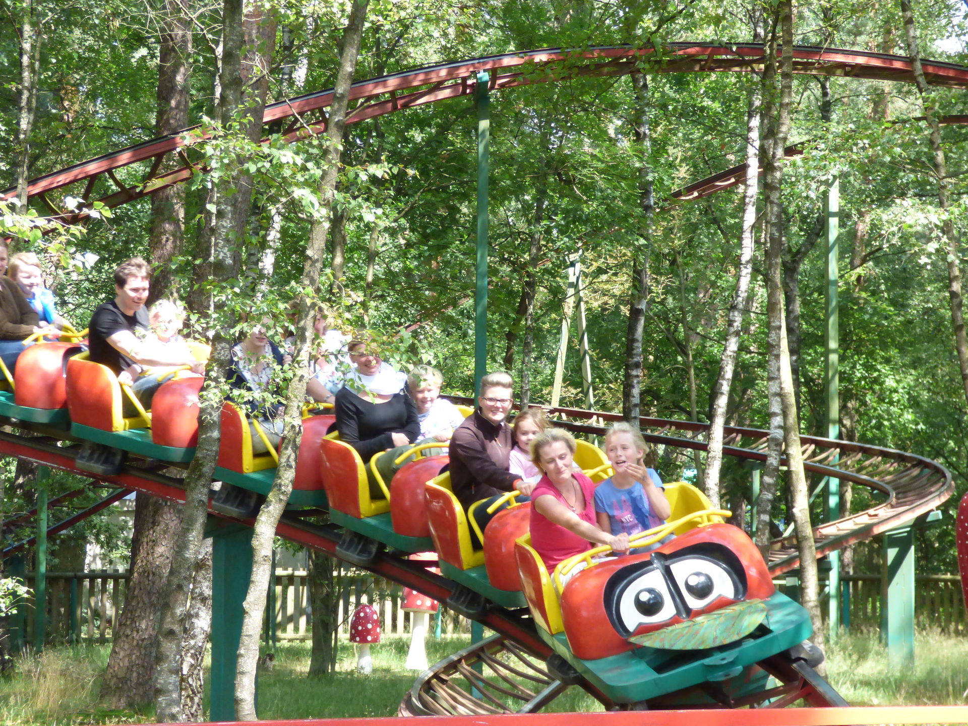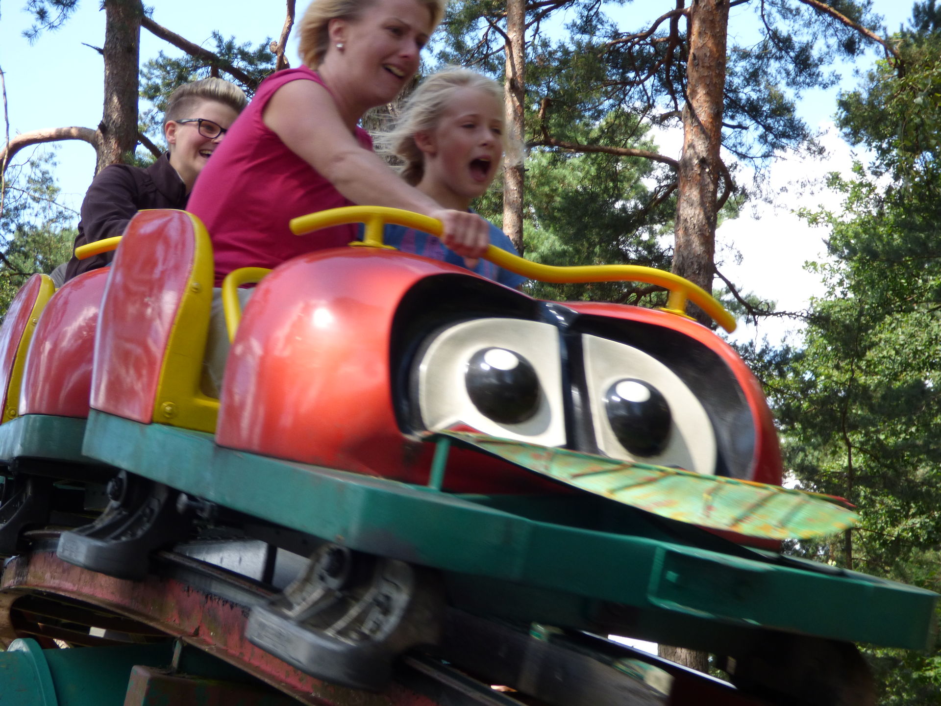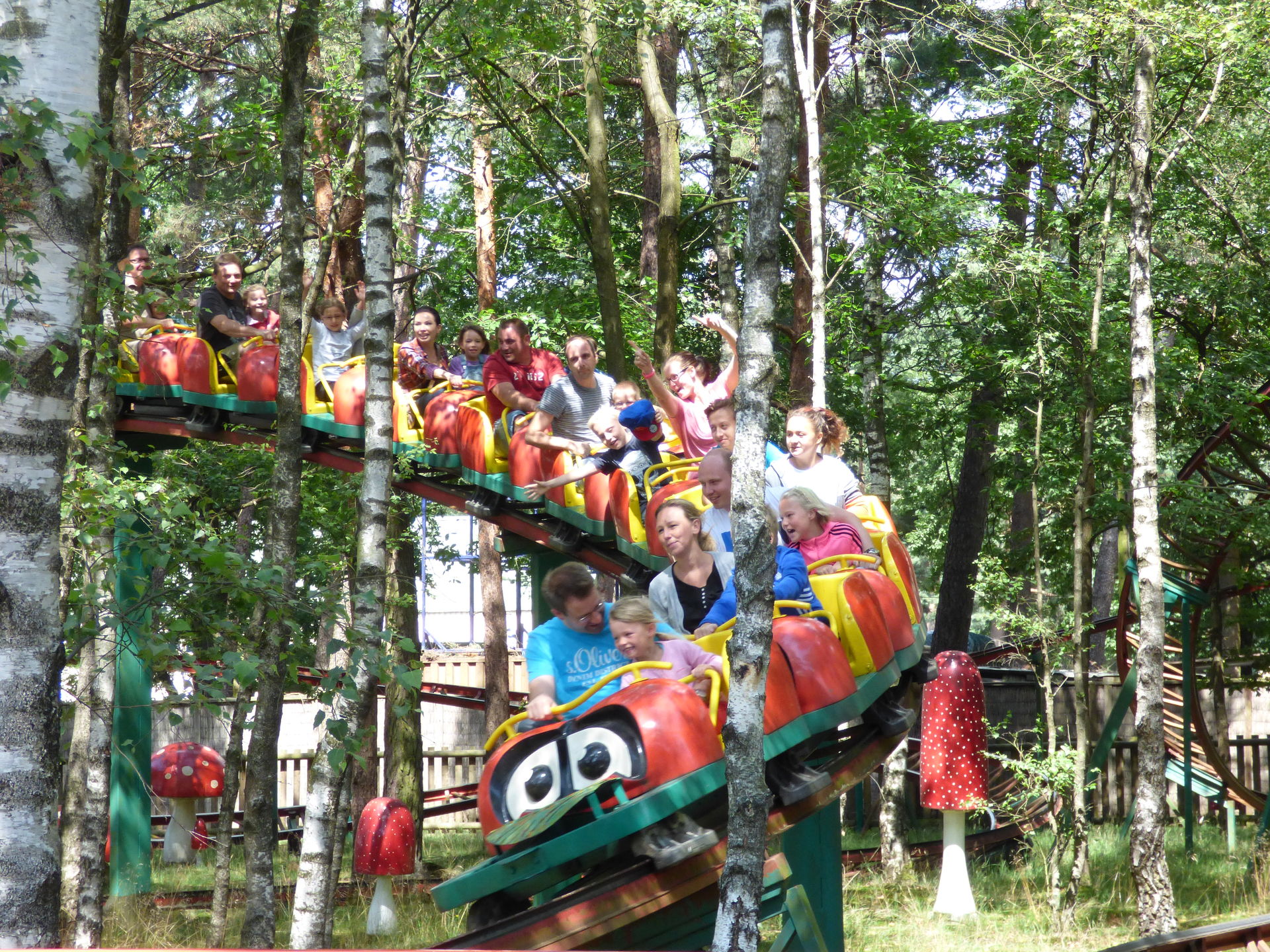 Für eine Fahrt mit der Marienkäferbahn benötigten wir schlappe 30 Minuten dank dieser unfassbaren Abfertigung in Kombination mit der Schnelligkeit des Operators. Gegen Abend, kurz vor der Schließung haben wir dann noch die eine und andere Fahrt nachgeholt, da war es dann etwas erträglicher geworden. Nach der Achterbahnfahrt setzten wir unseren Weg durch den Park fort.