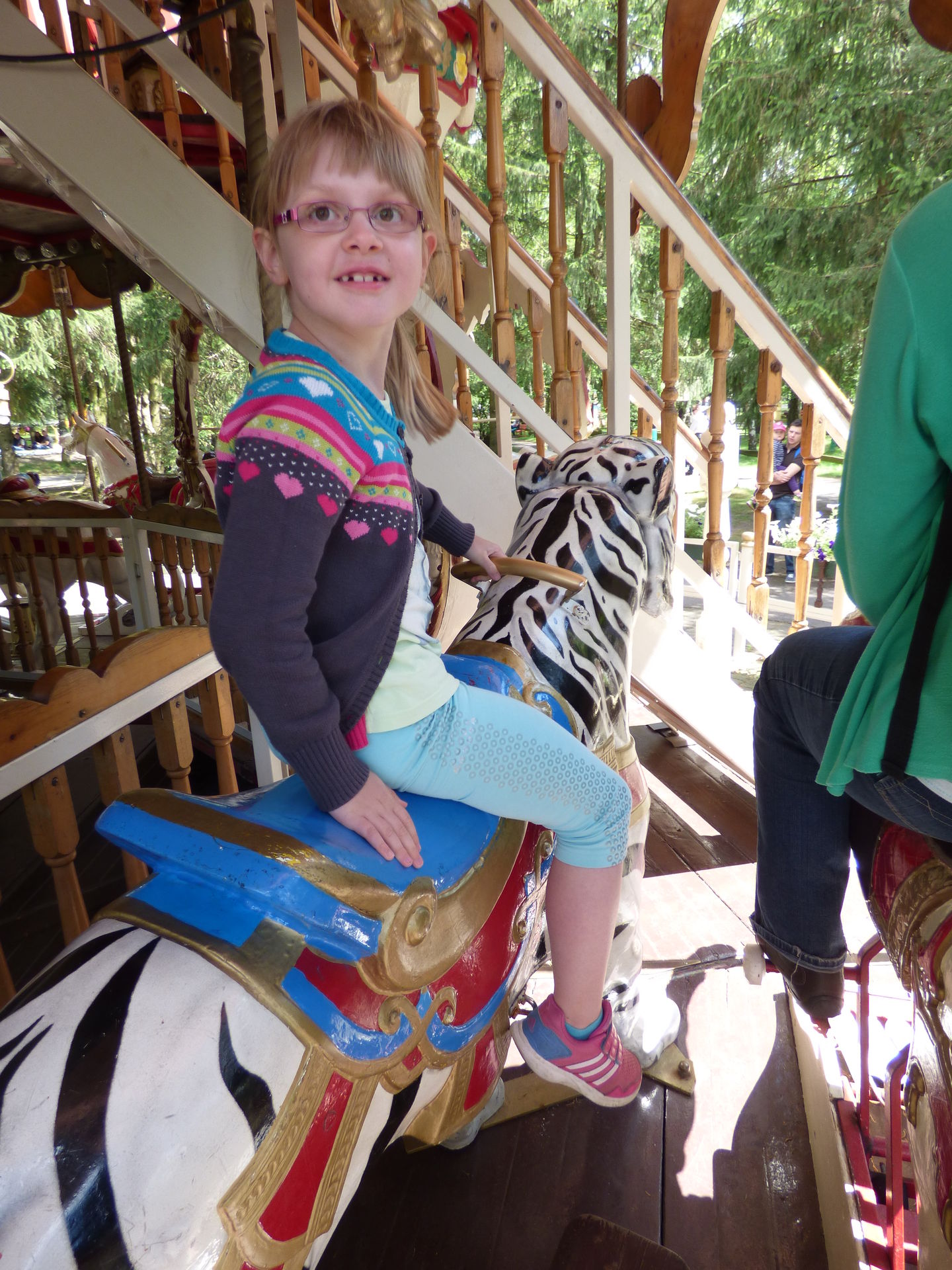 Nächster Stop war "Ponderosa", eine elektronische Pferdereitbahn auf der ich schon als Kind geritten bin. Anschließend ging es direkt nach gegenüber zum historischen Karussell, auf dem wir auch direkt zwei Runden drehten.