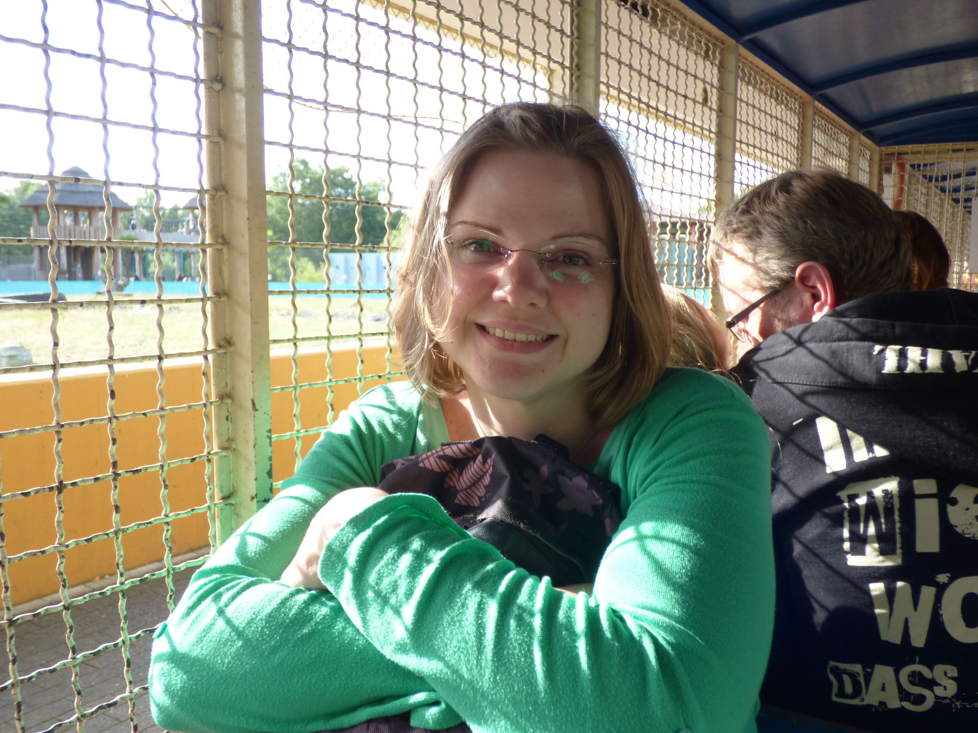 Trotz zweistündiger Verlängerung neigte sich der Tag im Zoo Safari Park Stukenbrock für uns nun langsam dem Ende entgegen. Wir schlenderten gemütlich zurück, nahmen unterwegs noch die eine oder andere kleine Attraktion mit wie zum Beispiel Wildwasserrondell oder Comet Schaukel, fuhren noch ein paar Mal Marienkäferbahn und Mia musste natürlich noch ein paar Mal auf den Hip Hop Tower.