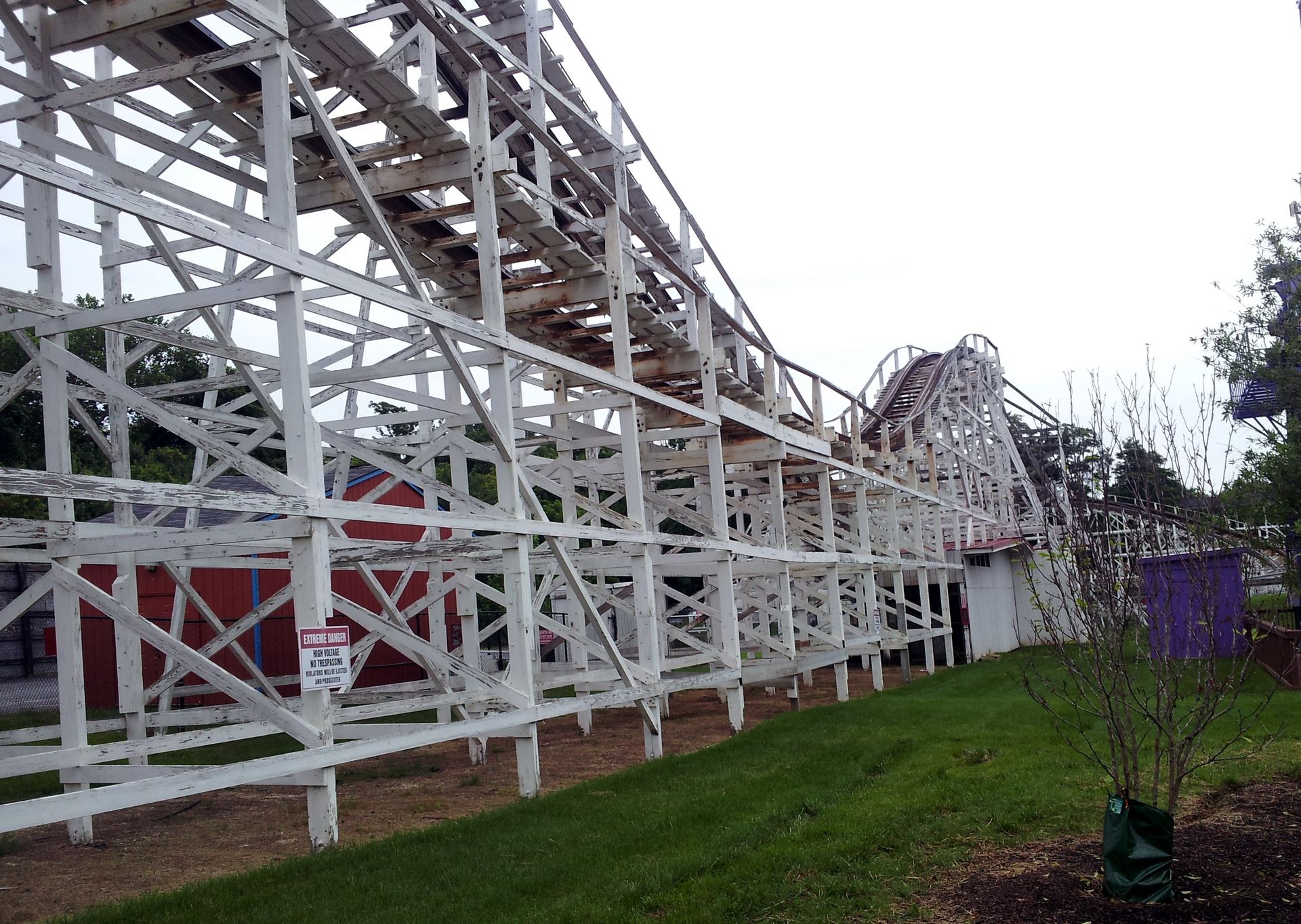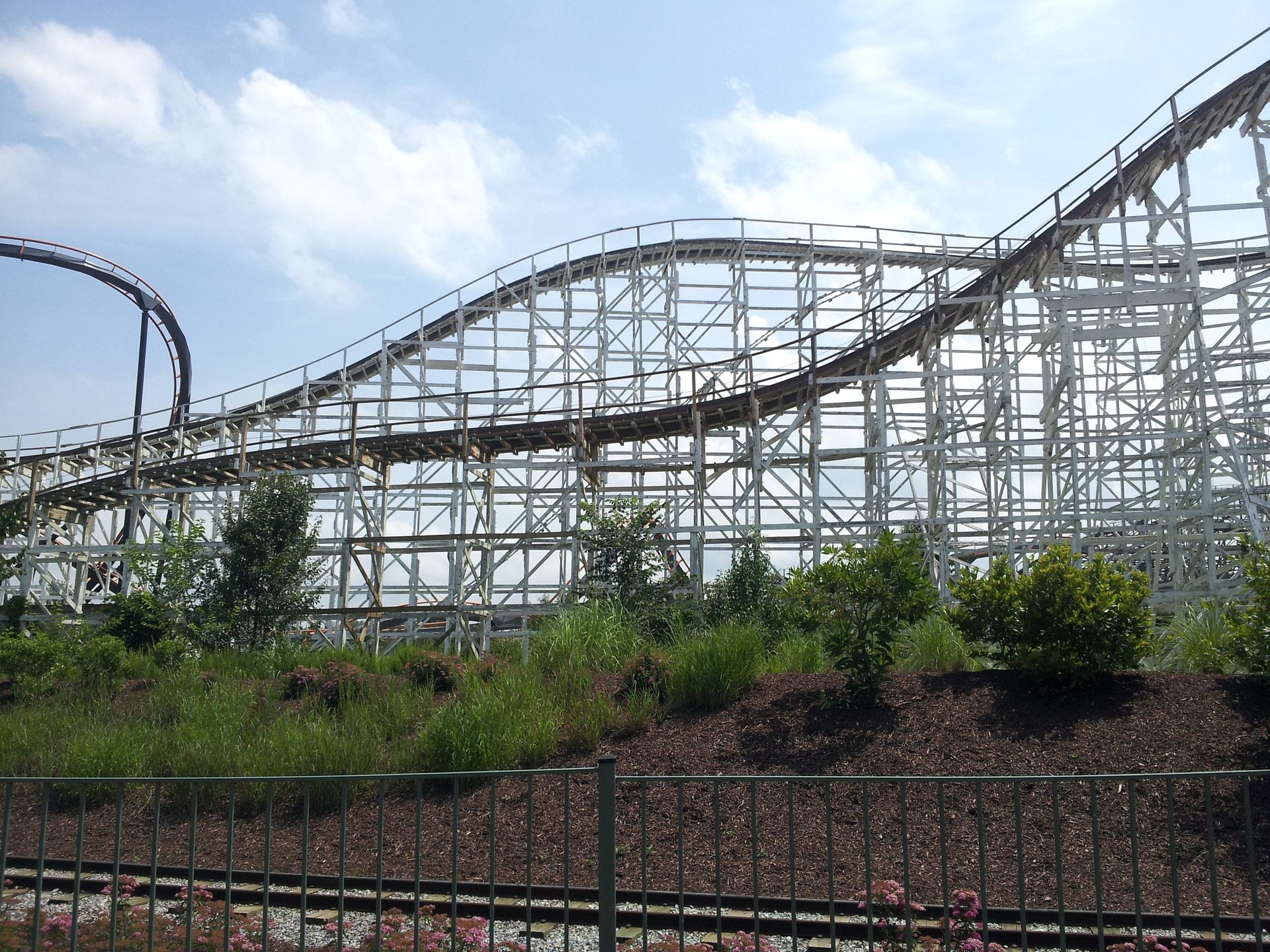 Das alte Schätzchen teilt den Park zudem in zwei Hälften. Und das - wie mir jetzt erst klar wurde - nicht nur auf die Fläche bezogen. Tatsächlich ist der gesamte Bereich zwischen Eingang und Wild One der "schöne" Teil des Parks. Sowohl landschaftlich als auch von der Optik der Attraktionen. Hinter Wild One beginnt dann allerdings die Einöde Marylands. Eine riesige Fläche, auf der die Attraktionen relativ großzügig verteilt wurden. In meist eher abschreckendem Zustand, wie man gleich noch sehen wird. Und die Vegetation fällt auch etwas spärlicher aus.