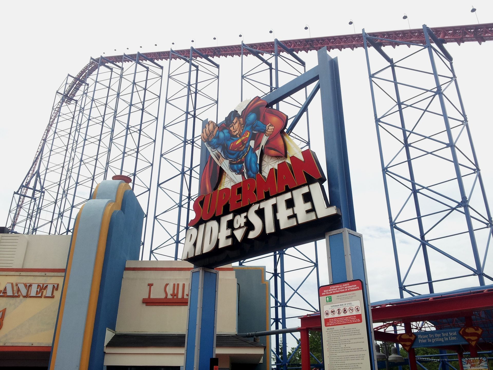 Der Intamin Mega Coaster Superman. Wer es nicht erkennen kann: Die Bahn ist aus Stahl.