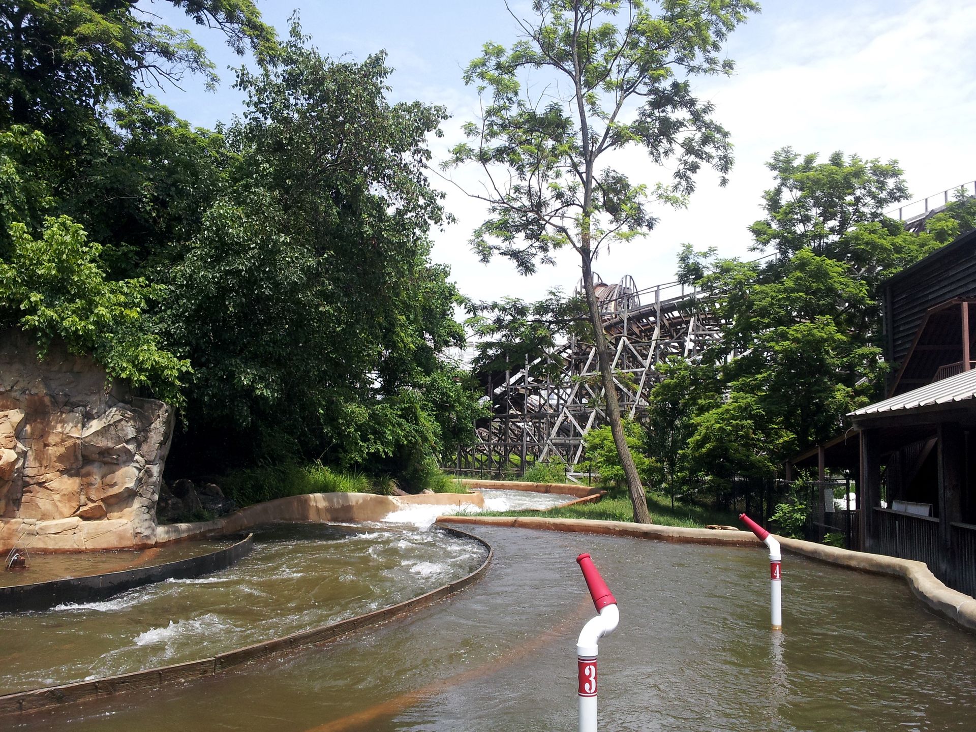 Vekoma im Jahr 1995 sage und schreibe 9 dieser berüchtigten Bahnen aus. Inklusive diesem Modell in Maryland. Welches allerdings gerade nicht einsatzfähig war. Aber direkt gegenüber steht ja wie gesagt noch das Rafting aus dem gleichen Jahr. Wirklich Lust darauf hatte jedoch nur duddi, der Rest von uns stellte sich an die Kanonen, um den Nässegrad für ihn etwas anzuheben.