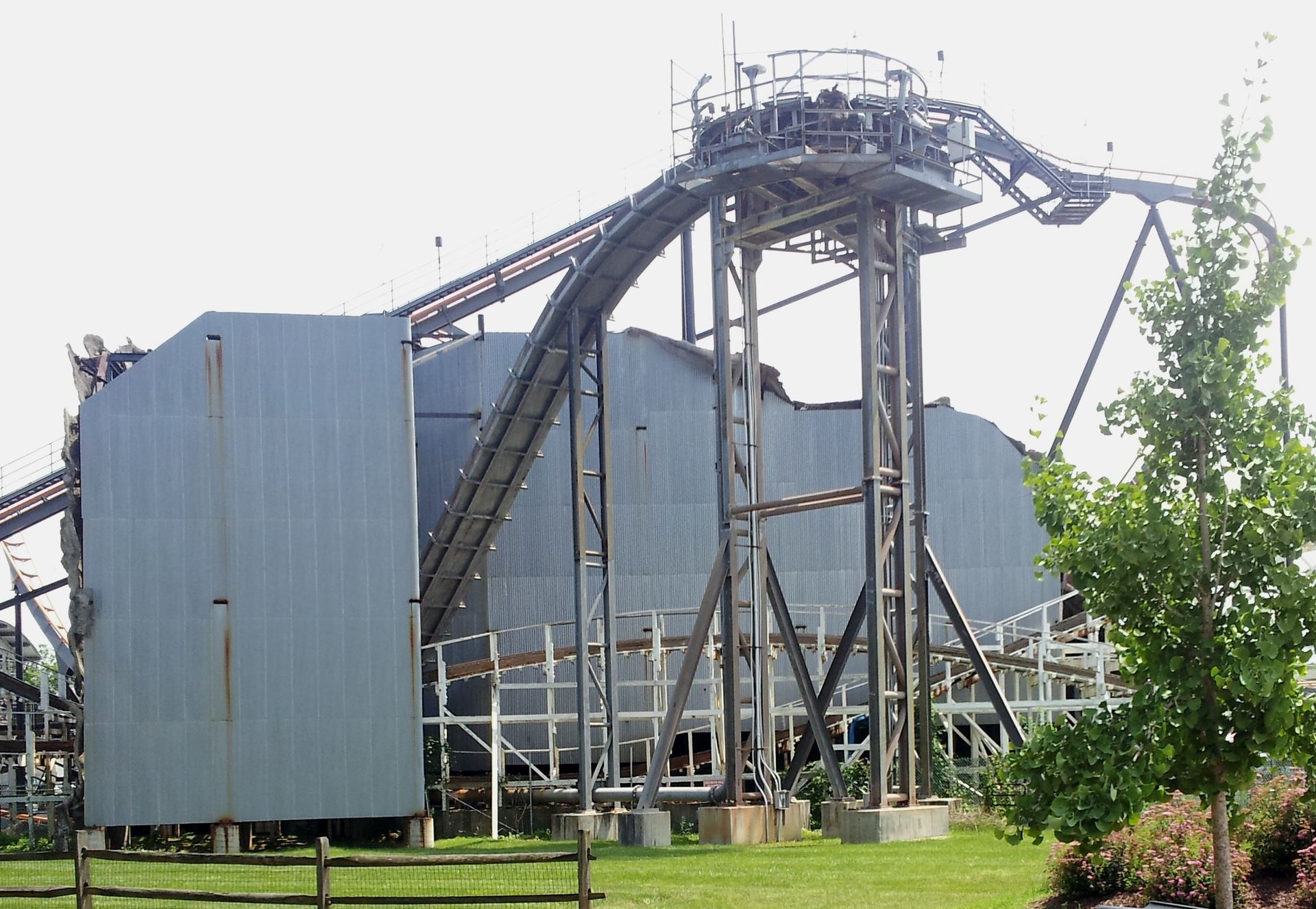 Von hinten jedoch nacktes Metall und Reste einer Intamin-Wasserbahn...