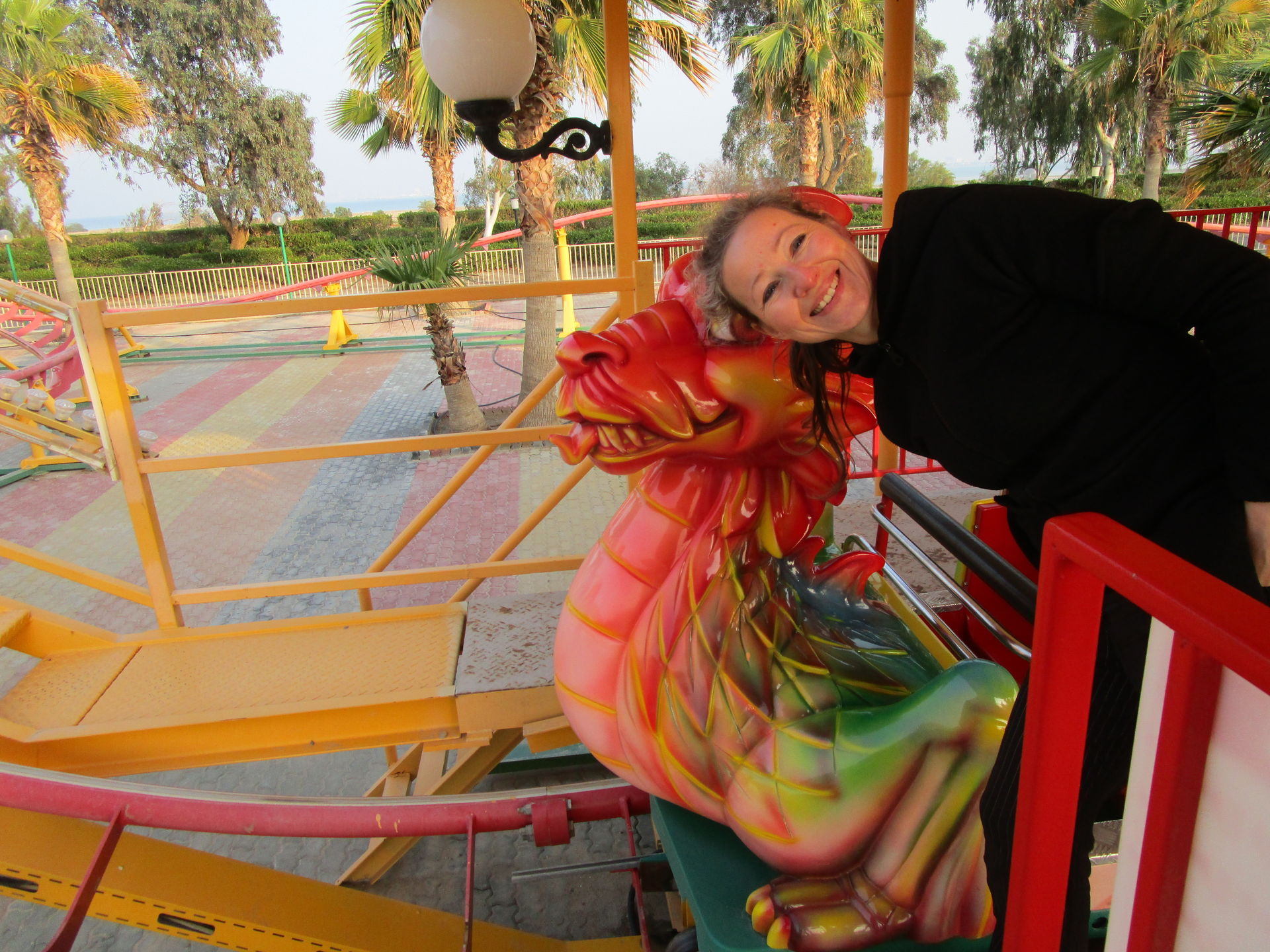 Abgesehen von einem Eingangsbereich, in dem neben dem üblichen Tand fragwürdigerweise auch bunt einfärbte Küken und Babykaninchen in Puppenkleidern feilgeboten werden, ist der Hawally Park die Vergnügungsstätte mit dem bisher schönsten Flair. Wir fühlen uns ein bißchen wie einem südeuropäischen Lunapark.