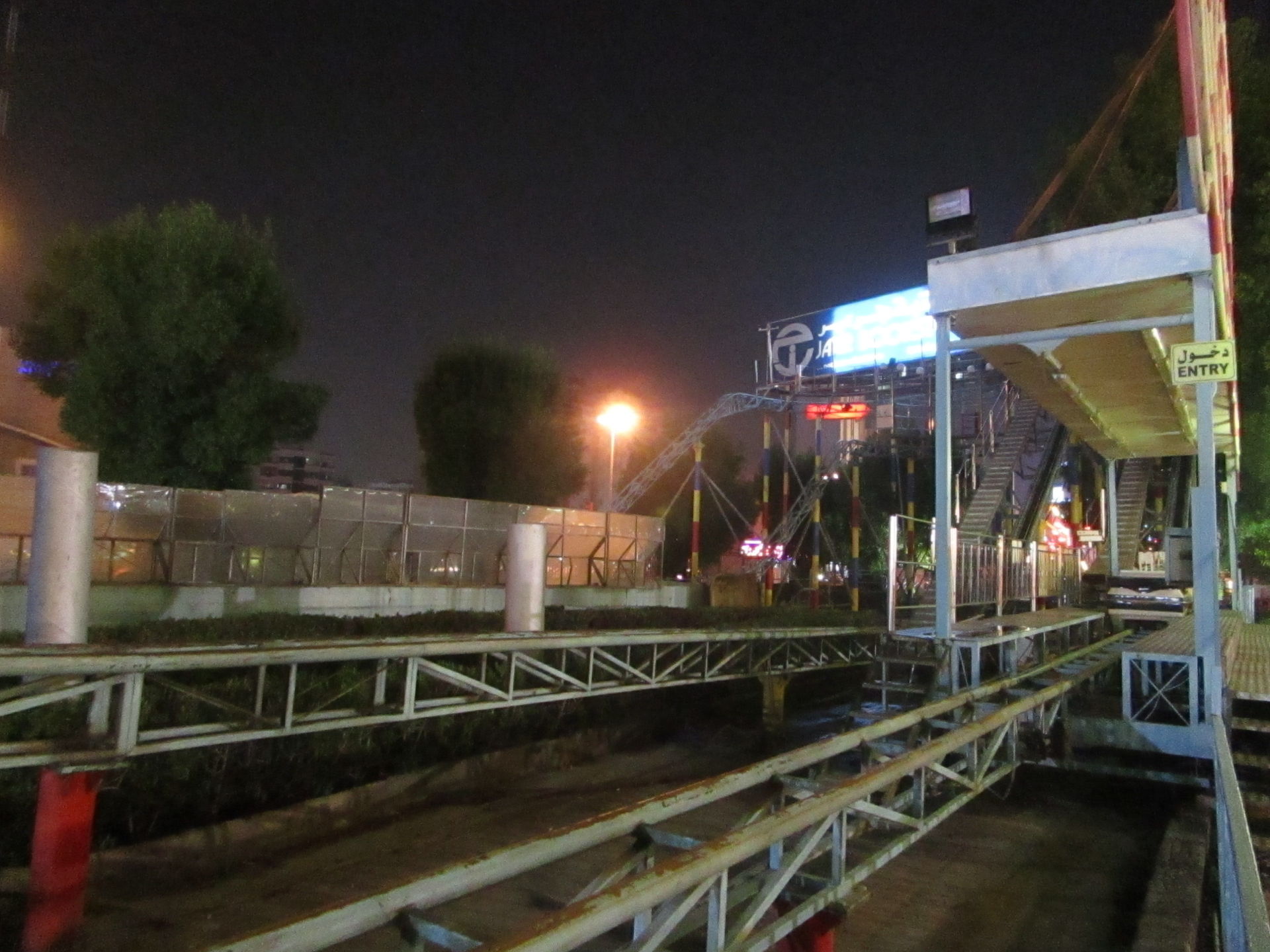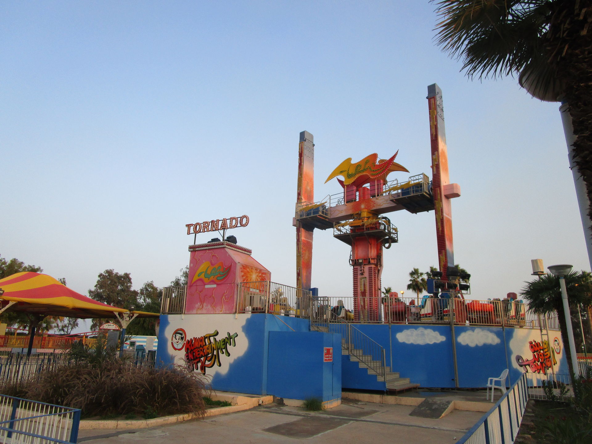 Laut rcdb.com hatte Kuwait Magic bis 2009 einen Powered Coaster, seitdem müssen sich die Kuwaitis hier angeblich schienenlos vergnügen. Wir wollen prüfen, ob dem wirklich so ist. Der Eintritt in diesen Freizeitpark ist kostenlos und nachdem man die zugehörige Mall durchquert und sich draußen am Meer nach rechts gewendet und den hoch umzäunten Wasserpark hinter sich gelassen hat sieht, man schon die ersten Fahrgeschäfte.