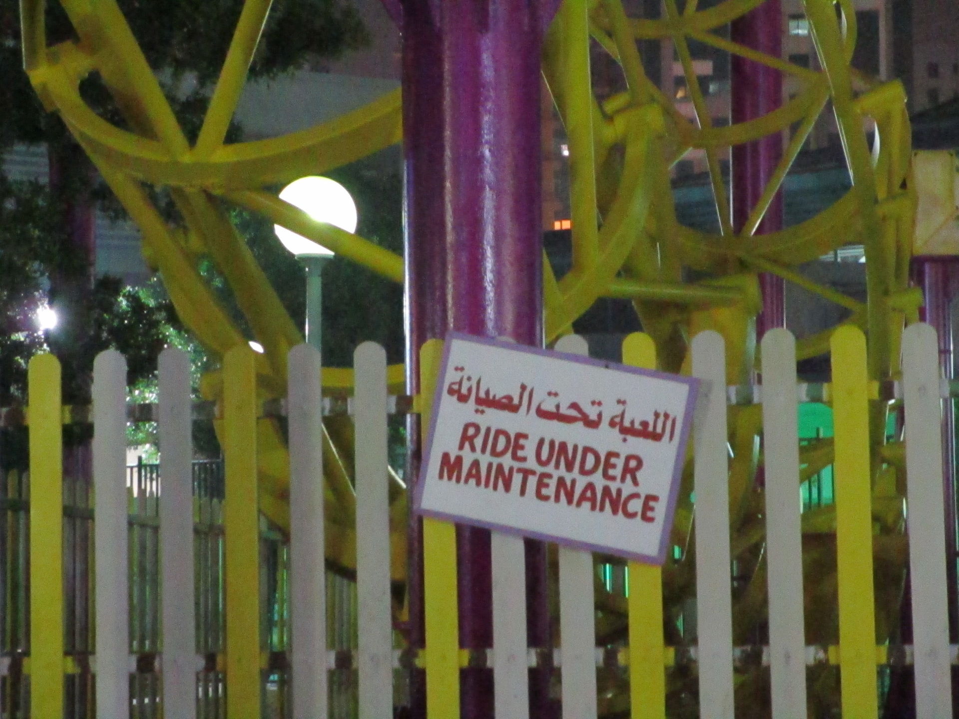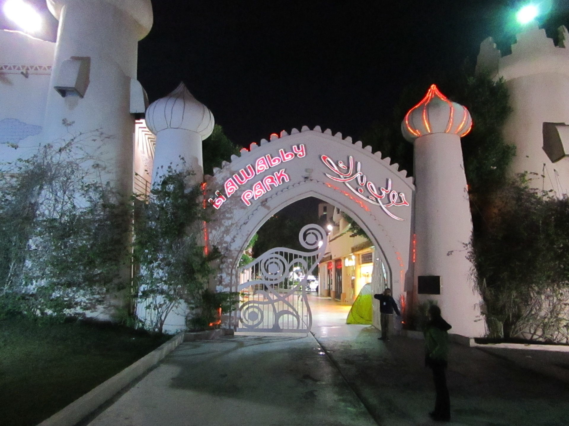 Auf unserer bevorzugten Seite für die Einschätzung von Sicherheitslagen in fremden Ländern wird auf Zurückhaltung beim Fotografieren von Personen in arabischen Ländern hingewiesen. Da wir als Gäste in Kuwait, einem als recht konservativ geltendem Land, sind, halten wir uns natürlich daran. Desweiteren sind die Freizeitparks hier häufig erst abends geöffnet, so dass die Lichtverhältnisse unsere kleine Canon Ixus sehr schnell überfordern. Auf gut deutsch: Die Bilder sind unscharf und es sind keine Leute zu sehen.