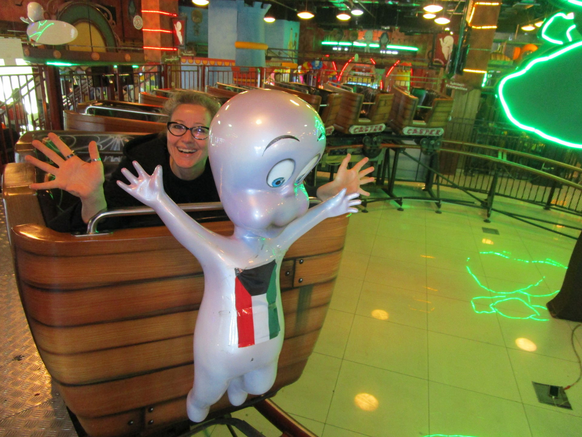 Dem Aachener Grufti Coaster Fan fallen sofort die kindlich-morbiden Charaktere rund um den freundlichen Geist Casper auf. Und die Achterbahn steht wunderbarerweise mitten im Park und ist daher nicht zu übersehen. Wie schon bei anderen Achterbahnen für den Nachwuchs müssen wir auch hier drei Runden drehen, bevor wir wieder aussteigen dürfen. Die Fahrt an sich ist, na ja, wie eine Kinderachterbahn halt.