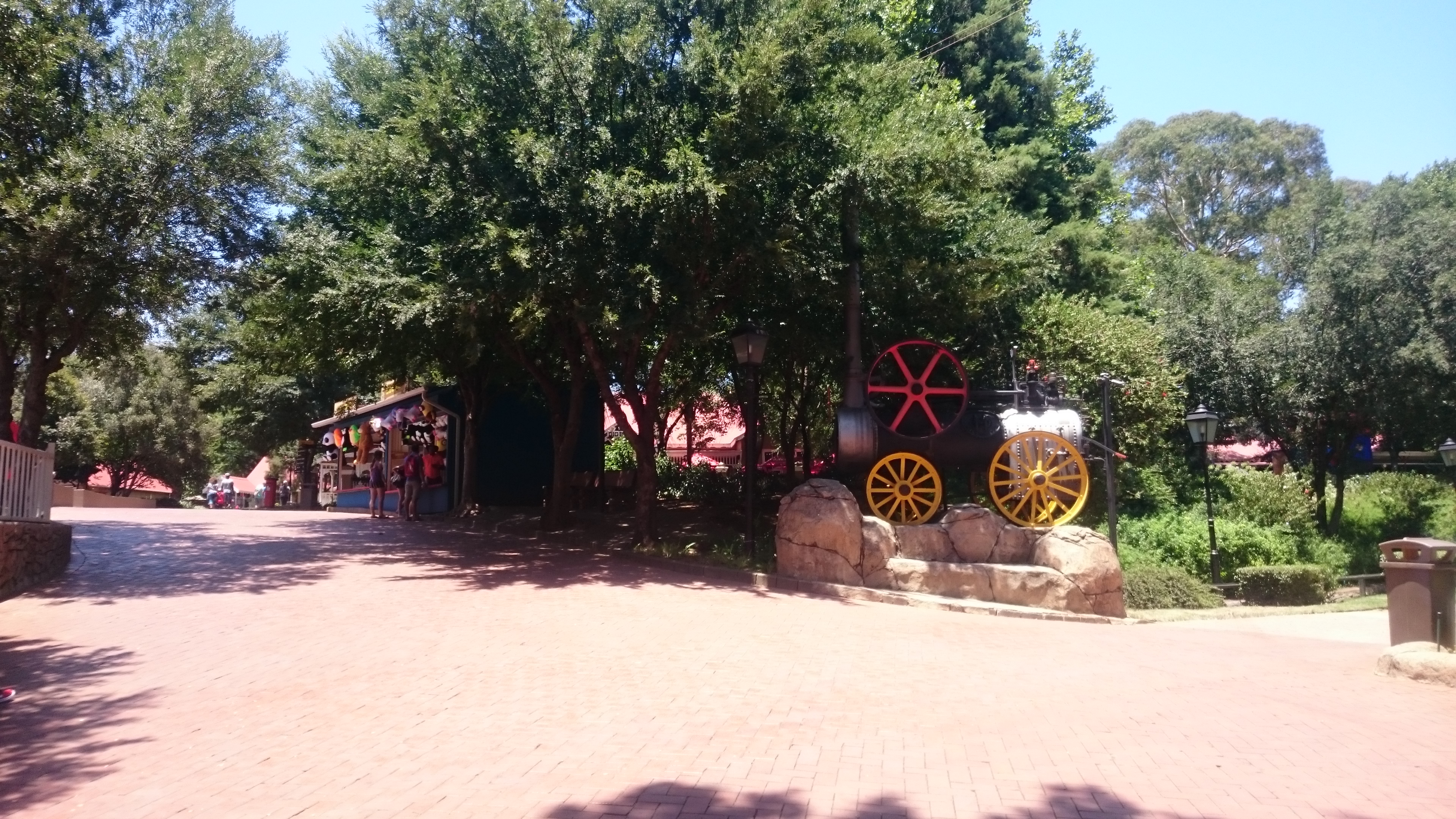 Der Bereich um den Tower of Terror. Hier bin ich mir nicht sicher ob es sich hier um Theming oder um Ueberbleibsel aus der Zeit als auf dem Parkgelaende noch eine Goldmiene betrieben wurde handelt. Ist auch egal, sieht gut aus und passt wunderbar.