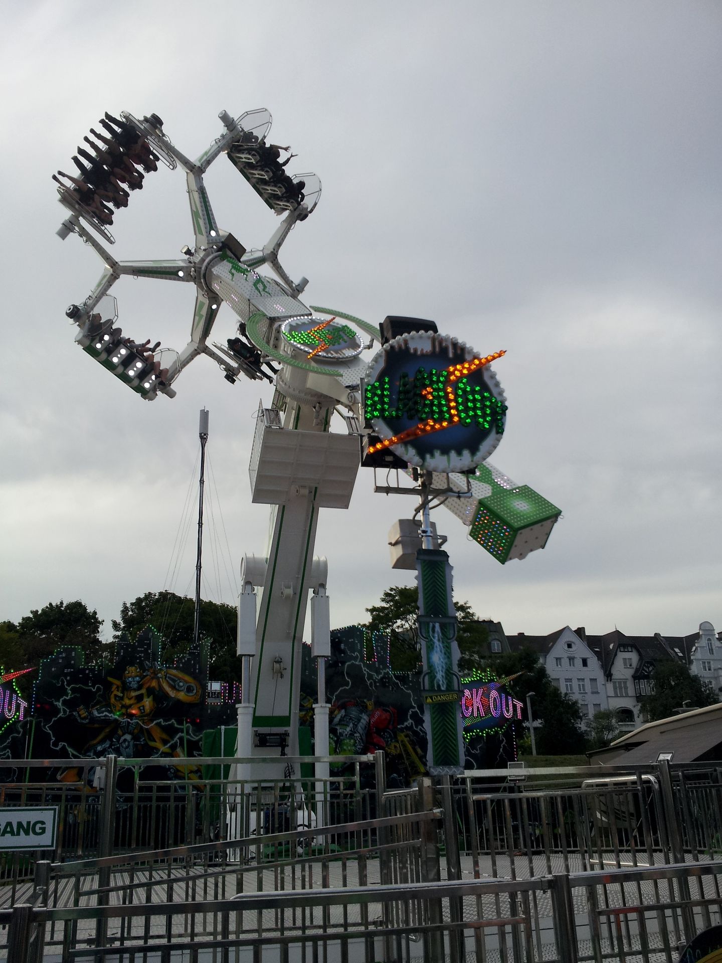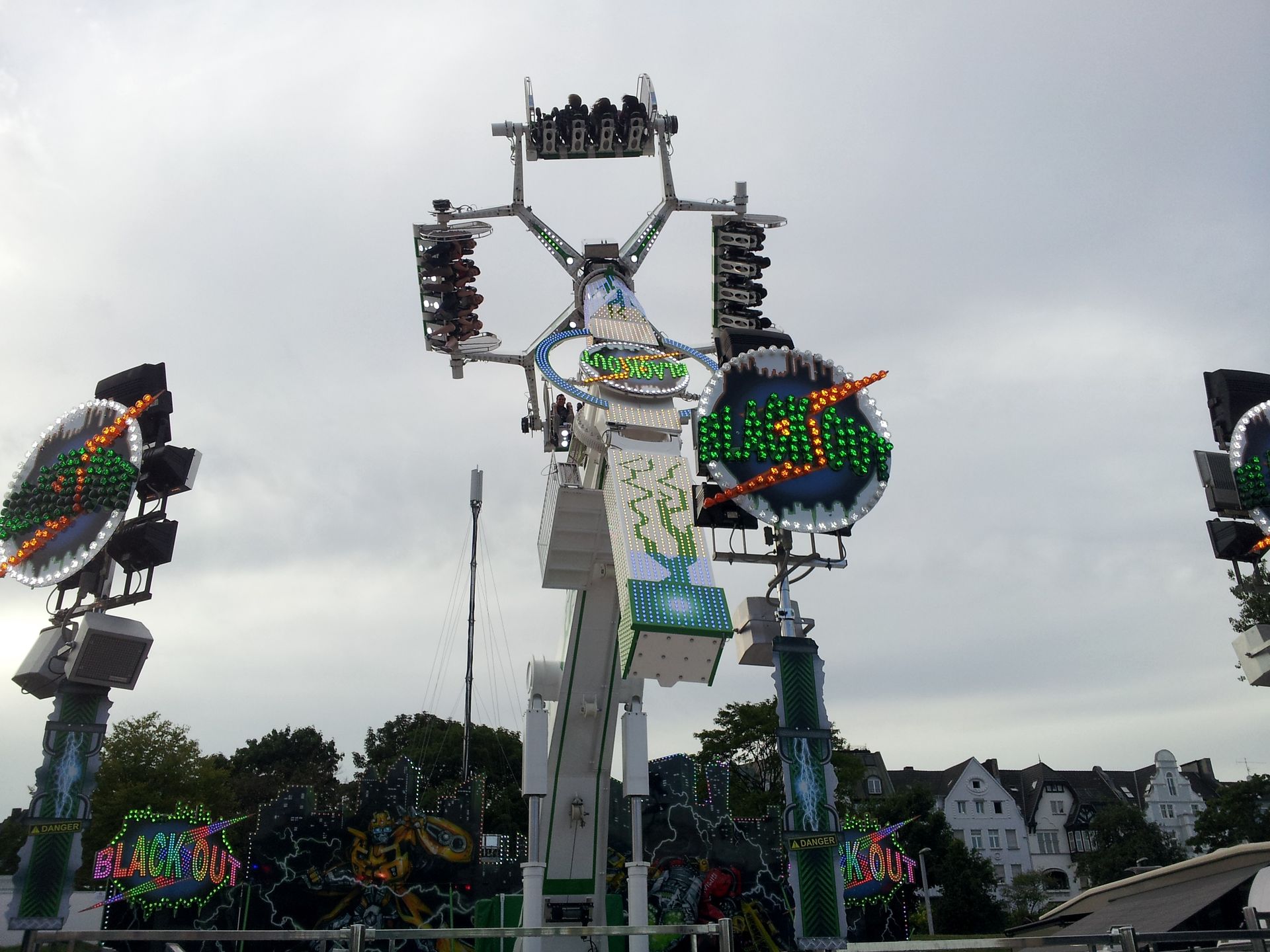 Wobei es kurz nicht ganz trifft. Die Jungs waren nämlich froh, wenn sich überhaupt mal jemand zu ihrem Fahrgeschäft verirrte. So saßen wir auch fast als einzige in dem Gerät, das zudem noch eine extrem lange Fahrt bot. In Sachen Preis-Leistung war der Black Out vermutlich mit Abstand das beste Fahrgeschäft auf der Rheinkirmes. Macht zudem auch noch ne Menge Spaß, trotz der etwas knarzenden Sitzschalen.