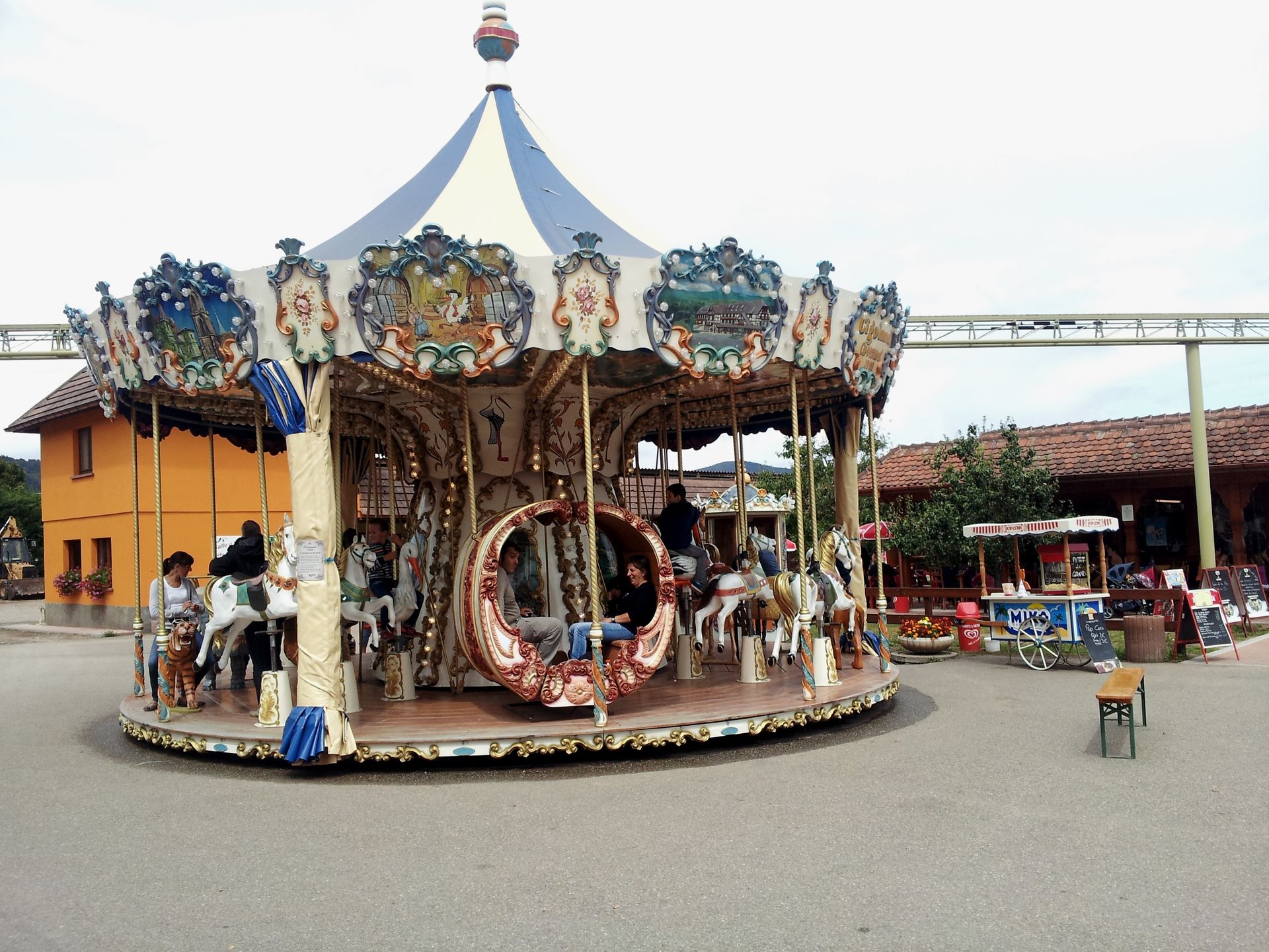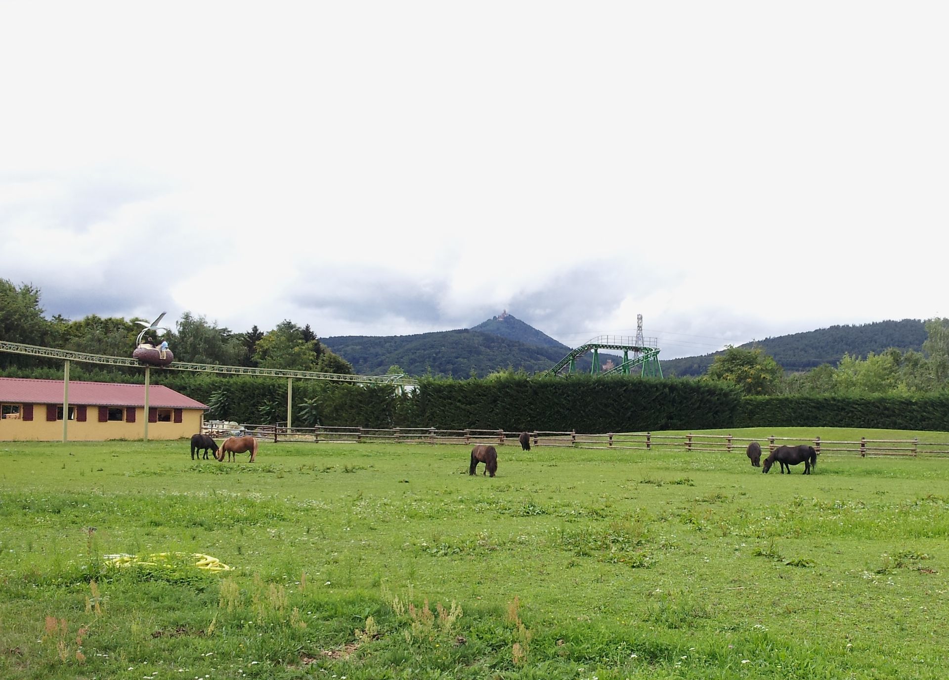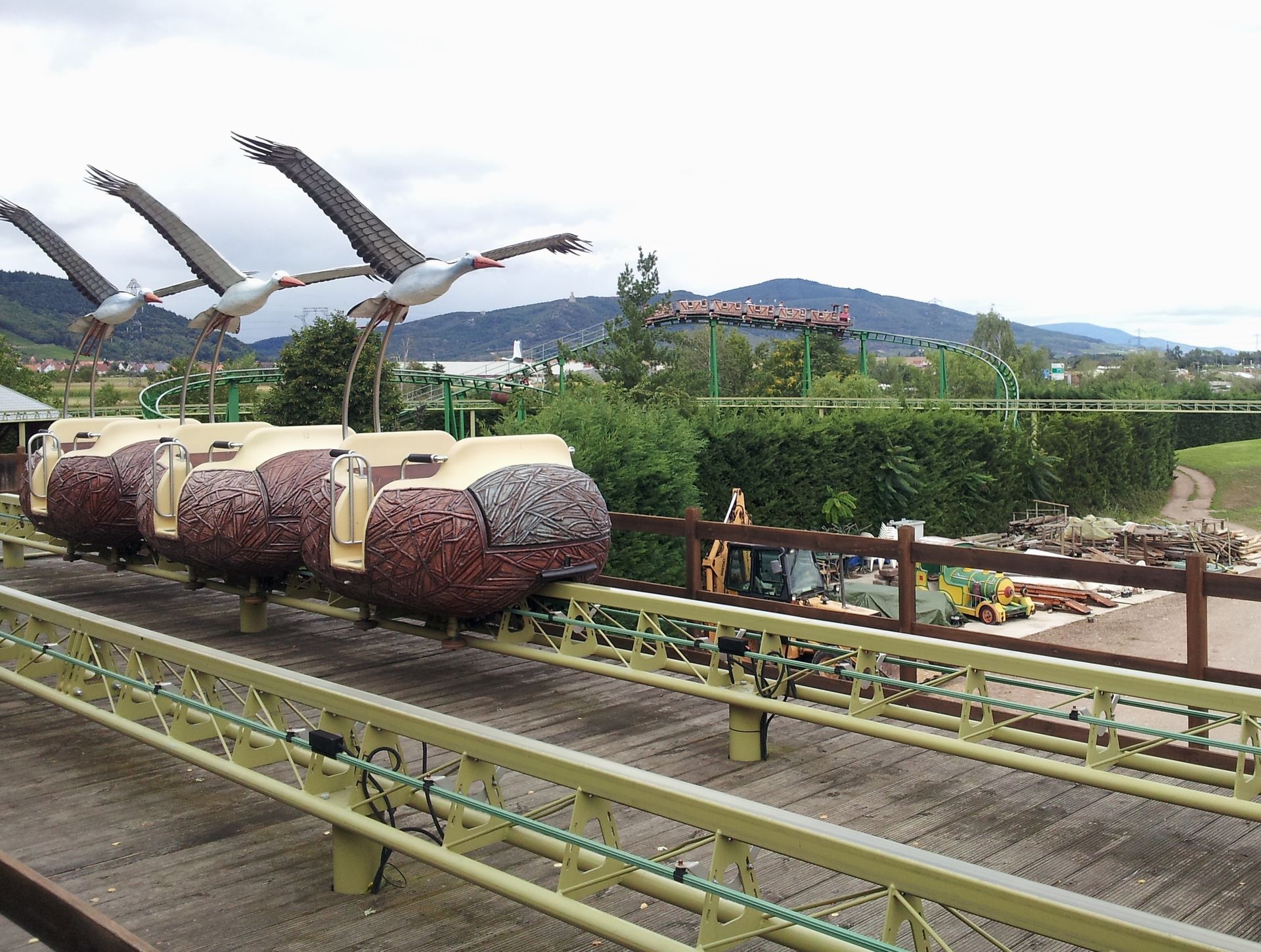 Nach den beiden Zielen auf deutscher Seite ging es nun einmal über den Rhein nach Frankreich. Schon bei den ersten Planungen für meine Tour zur "neuen" Toboroule im April hatte ich die beiden hiesigen Parks auf der Rechnung. Letztlich war es mir aber zu viel und ich hatte mich damals auf die Alpine Coaster beschränkt. Nun konnte das wenige Monate später nachgeholt werden - deutlich schneller als gedacht. Der erste dieser Parks liegt einige Kilometer nördlich von Colmar im kleinen elsässischen Örtchen Kintzheim. Vor einigen Jahren bin ich bereits auf dem Weg nach Rom daran vorbeigefahren, denn die Autobahn N83 führt unmittelbar hinter dem Park entlang. Die Achterbahn war mir damals direkt aufgefallen. Nun sollte ich das damals ergooglete Cigoland also endlich besuchen. Benannt ist der Park nach dem Symboltier des Elsass, dem Weißstorch. Auf Französisch Cigogne.
