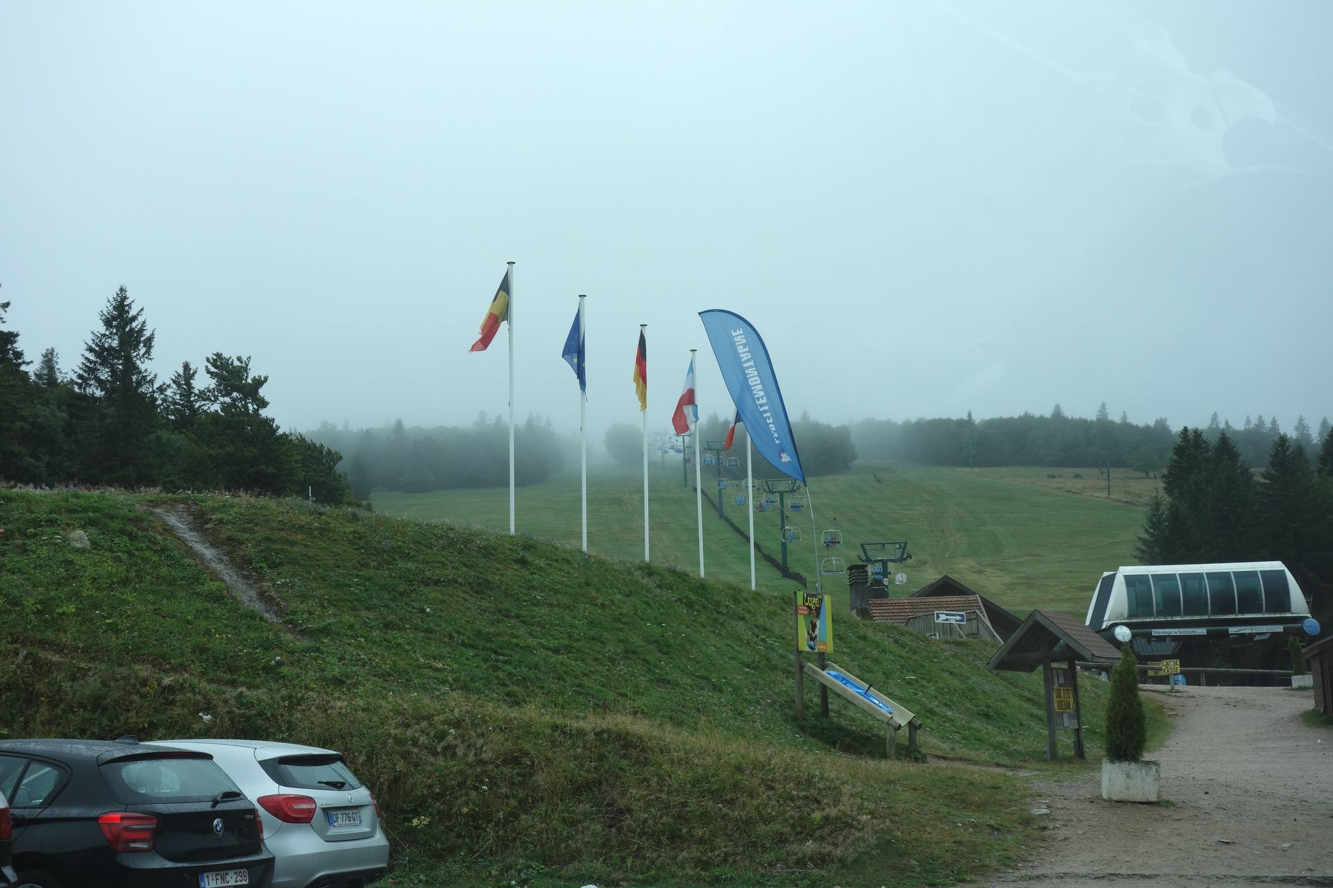 Vom Cigoland ging es nun weiter gen Süden zum letzten Park dieser Tagestour. Allerdings nicht ganz auf kürzestem Weg, denn F623 fehlten auch die Alpine Coaster in den nahen Vogesen. Also machten wir einen kleinen Schlenker nach Westen, auch wenn Mountainman und ich dort keine Haken mehr holen konnten. Das Wetter war bei meinem Besuch im April auch deutlich besser als an diesem Tag. Dichter Nebel säumte die Berghänge ein leichter Nieselregen machte die Sache erst recht unangenehm. So musste F623 in La Bresse und Le Markstein die jeweiligen Alpine Coaster alleine bewältigen, während wir im Auto warteten. Das ging immerhin. Zwischendurch hielten wir auch kurz am Col de la Schlucht, nur um ganz sicher zu gehen. Aber wie erwartet war ein Betrieb der legendären Sommerrodelbahn bei diesem Wetter ausgeschlossen.
