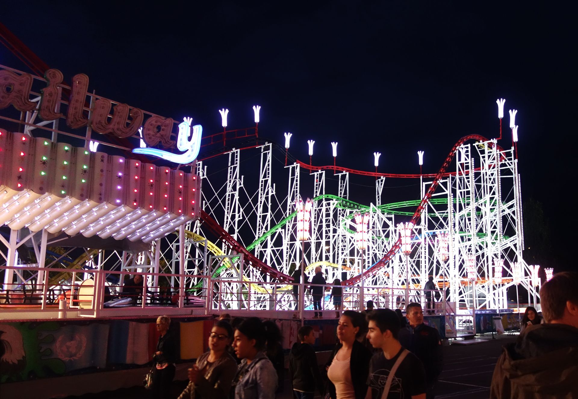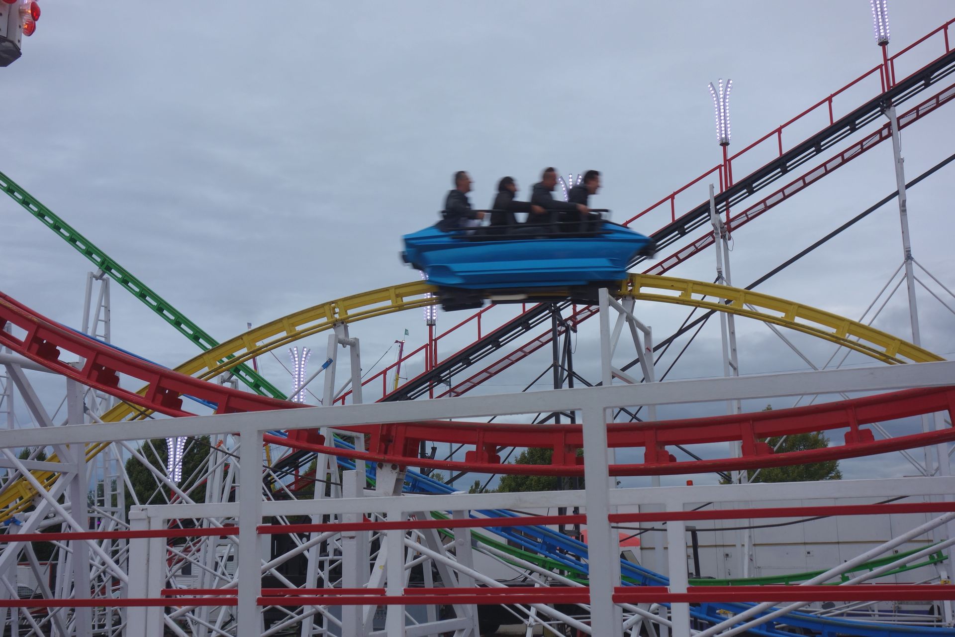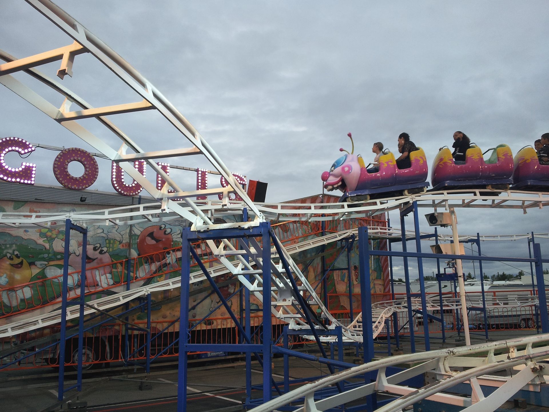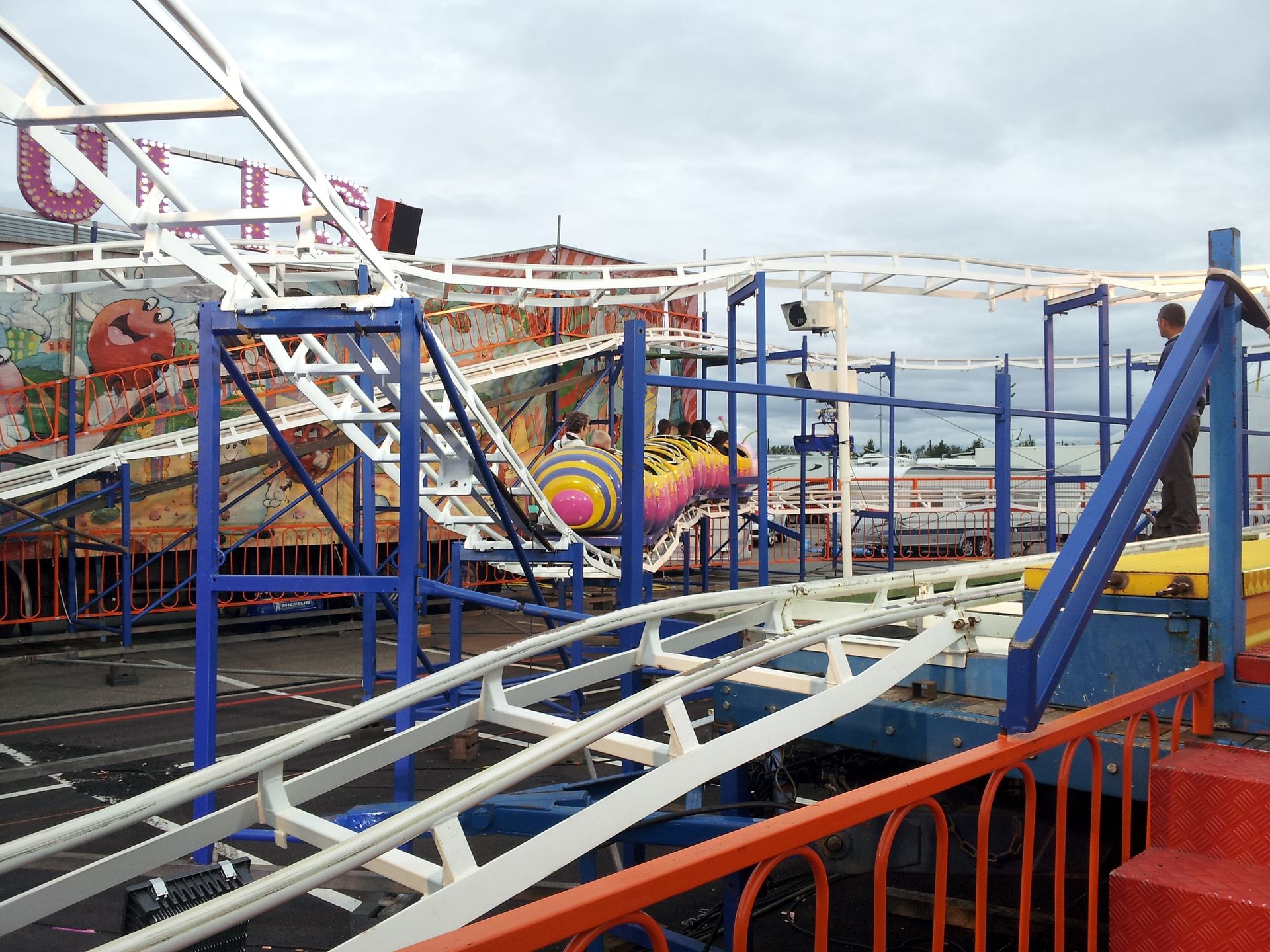 Ob das allerdings damit zu tun hatte, dass wenige Tage zuvor bei einem Slingshot in einem französischen Luna Park ein Seil gerissen war, entzieht sich meiner Kenntnis. Es könnte auch sein, dass der Schausteller sein Fahrgeschäft einfach nur etwas später in Betrieb genommen hat. Ich habe aber später nicht mehr darauf geachtet, ob die Anlage lief oder nicht.