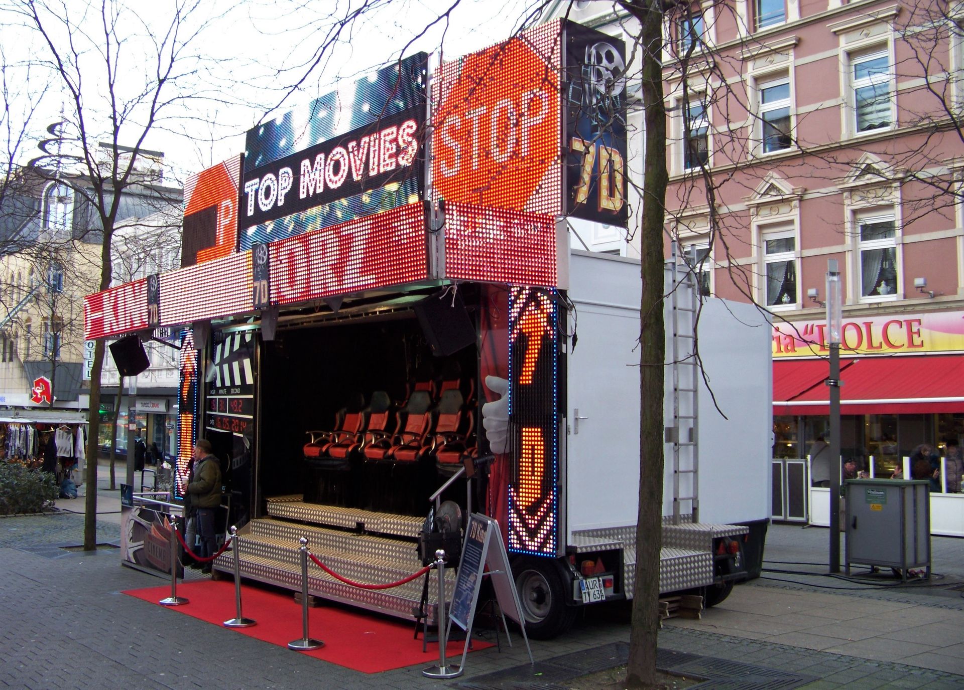 Von dort aus konnte man schon in einiger Entfernung Deinerts X-Factor sehen. Auf dem Weg dorthin kam man außer an Reihen- und Kinderfahrgeschäften noch an Horz' 7D-Kino vorbei.