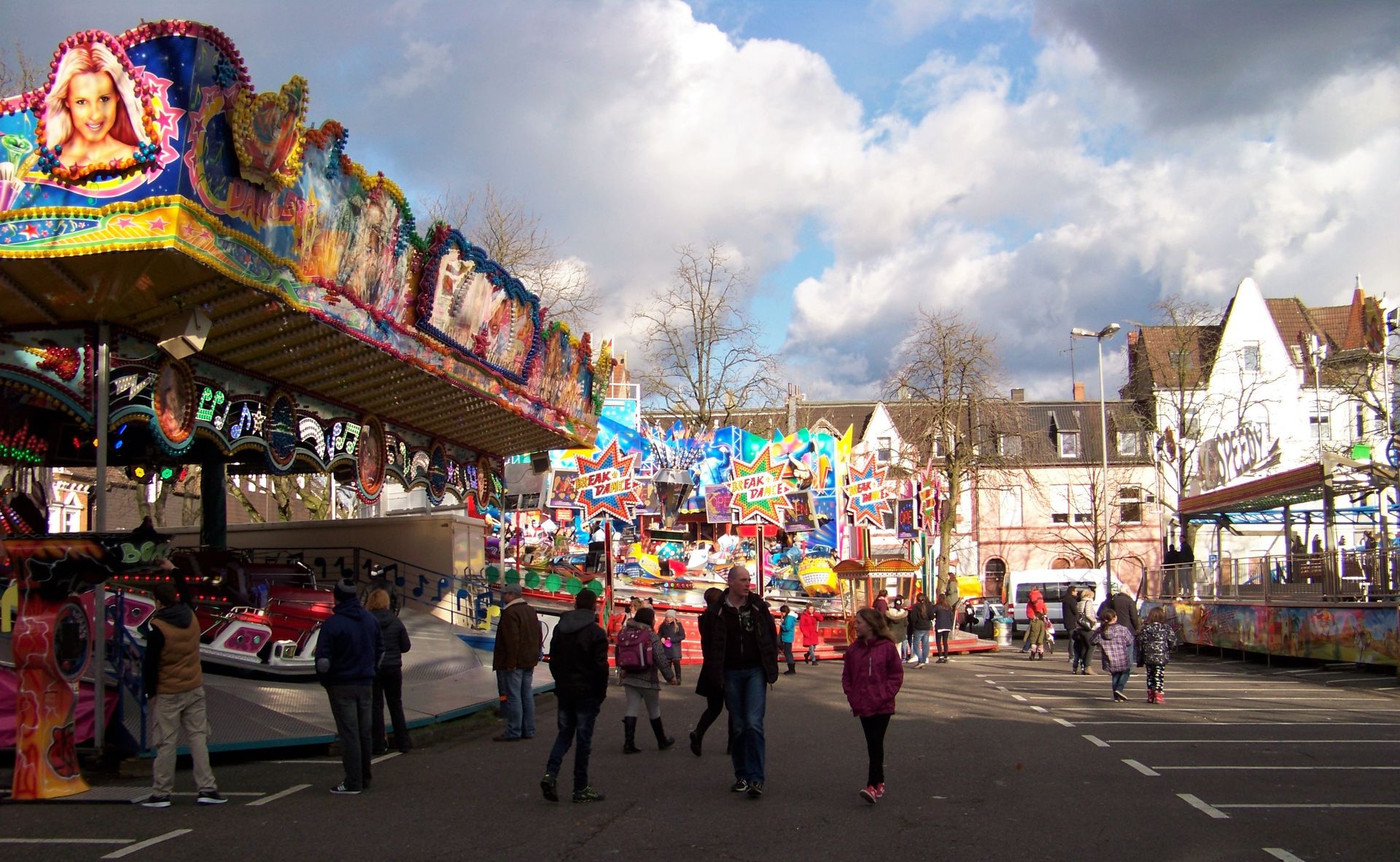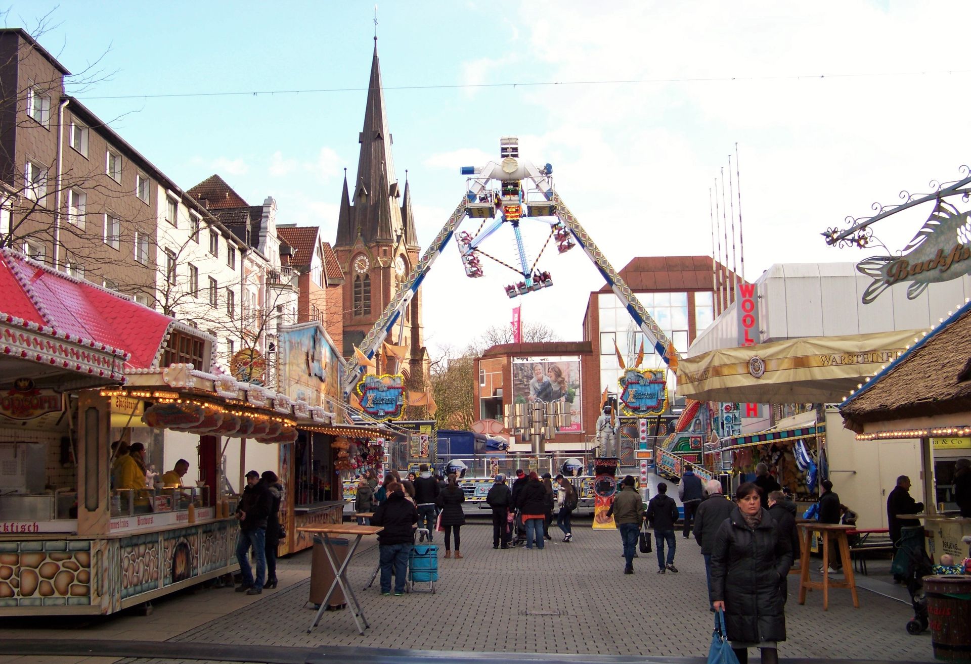 Heute gibt es Bilder von einem für mich neuen Platz. Die City-Kirmes in Herne zieht sich – wie der Name der Veranstaltung schon sagt – durch die Innenstadt. Der größte Teil des Festes befindet sich recht lang gestreckt in der Fußgängerzone. Für besonders Gehfaule gibt es allerdings zwischen den beiden äußeren Enden der Kirmesmeile eine direkte U-Bahn-Verbindung.