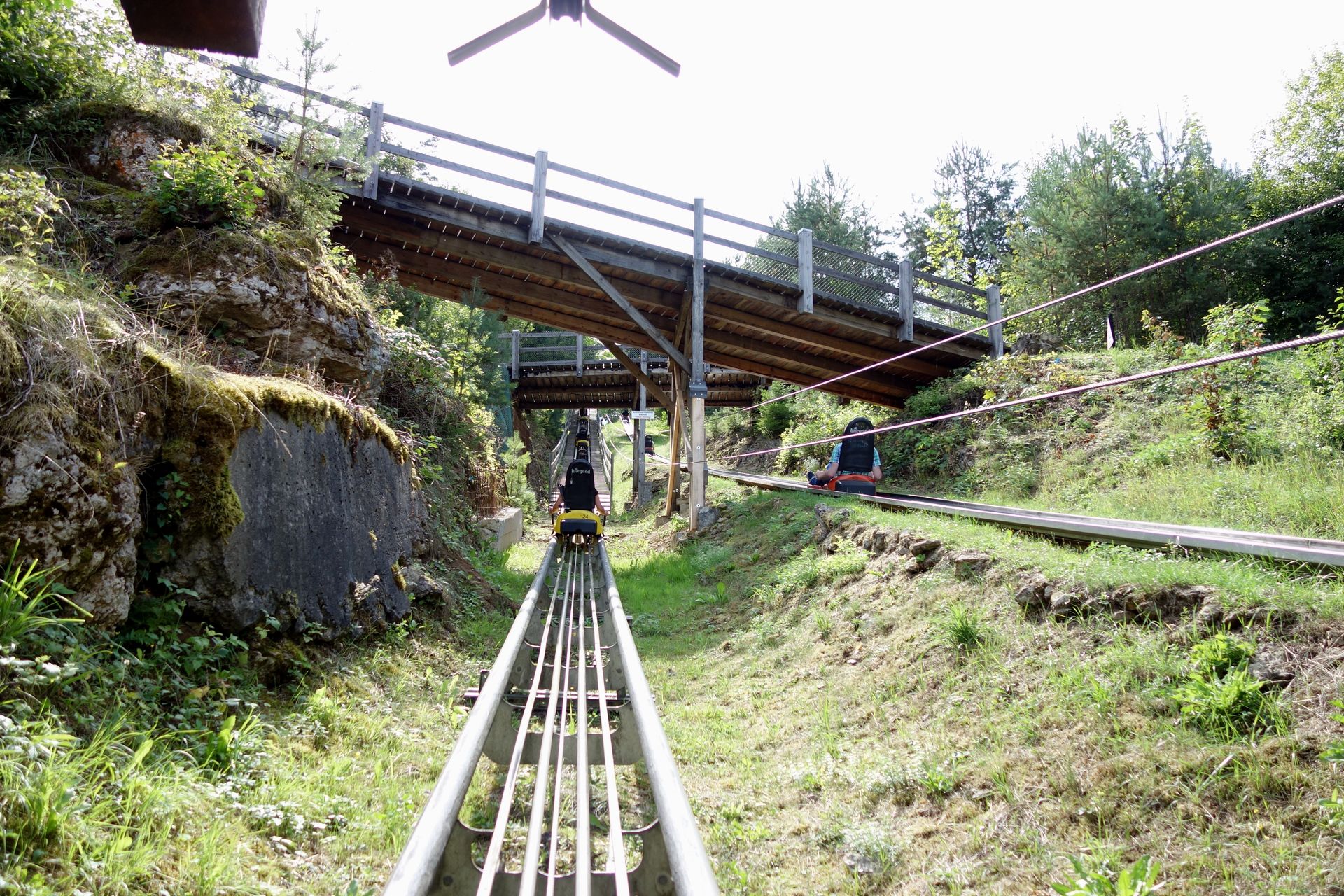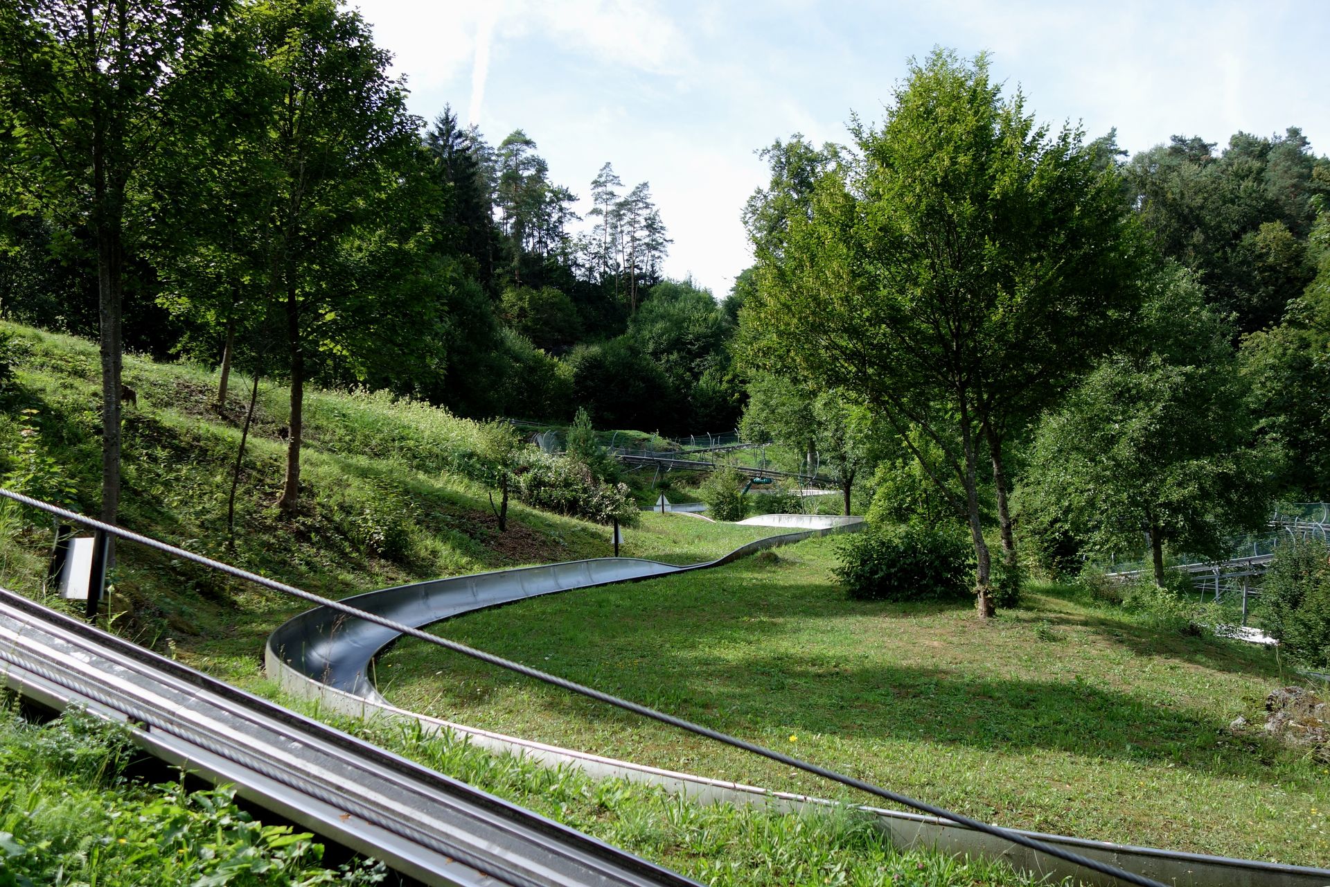 Fazit: Schön ist die Sommerrodelbahn Pottenstein definitiv, davon konnten wir uns ja lange genug überzeugen. Ob es aber wirklich die schönste der Welt ist, vermag ich nicht zu beurteilen, dafür fehlen mir noch zu viele. Dass trotz der Lage irgendwo im Nirgendwo so viel los war, wirkte sich allerdings ganz klar negativ auf die Atmosphäre aus. Reine Massenabfertigung, bei der der Spaß leider auf der Strecke blieb. Vielleicht versuche ich es irgendwann nochmal außerhalb der Ferien...