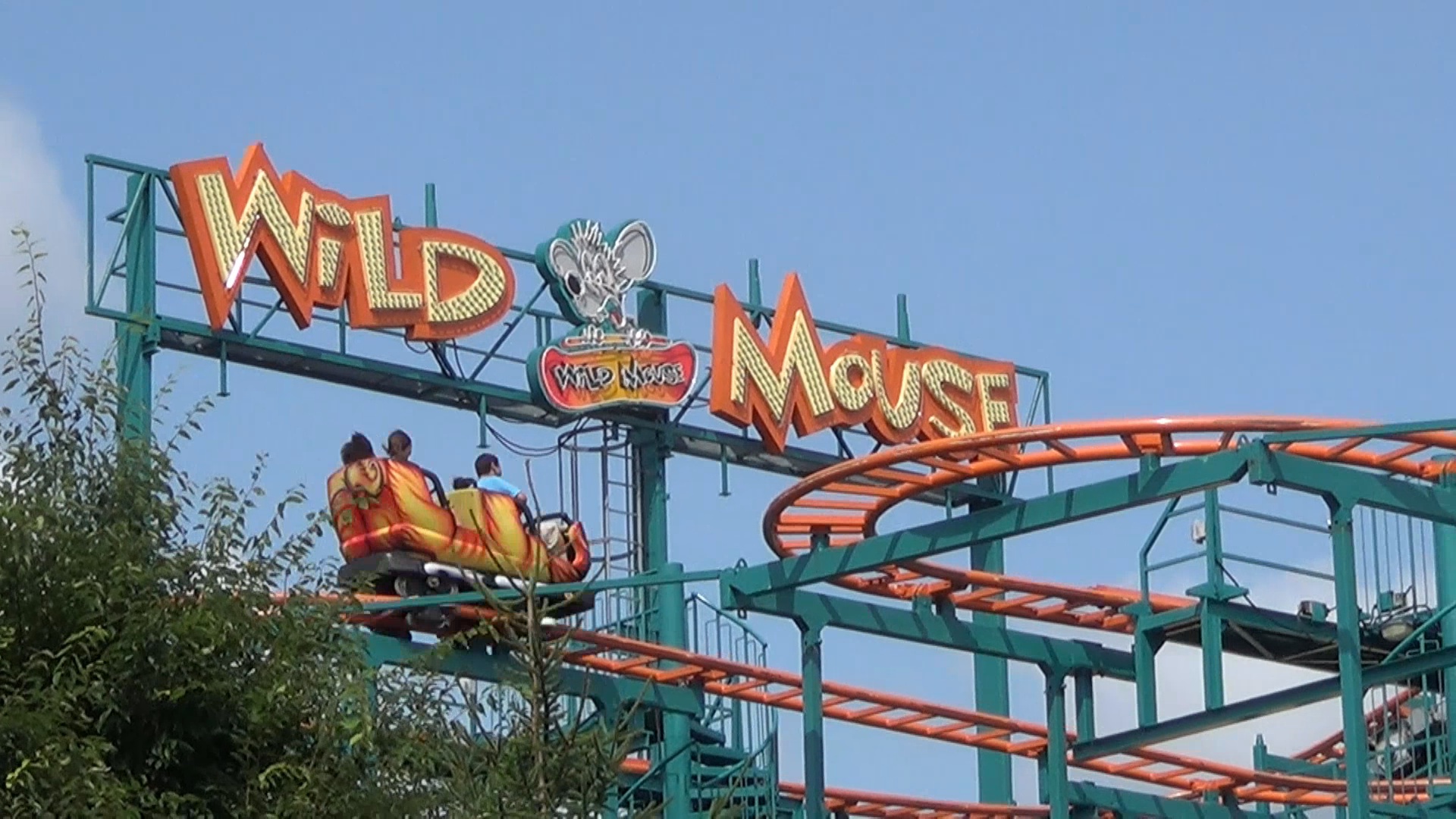 Wild Mouse - die auch so heißt - von Maurer. Hier machen wir auch erstmals Bekanntschaft mit dem Cedar Fair'schen Entertainment System, das auf zahlreichen Flatscreens in den Warteschlangen Werbung, News aus der Unterhaltungsindustrie, sich ständig wiederholende Chartmusik der generischsten Sorte und immerhin gar nicht so uninteressante Quizfragen zu Park, Attraktionen und Gruppe in Dauerschleife ausstrahlt. In einer nicht unerheblichen Lautstärke, versteht sich. Noch stört uns das nicht. Was uns aber stört, ist die grottige Abfertigung an diesem für eine Maus zu langsamen und in Anbetracht der anderen Bahnen eher wenig spannenden Schienenrund, das uns somit kostbare Zeit und Nerven abringt.