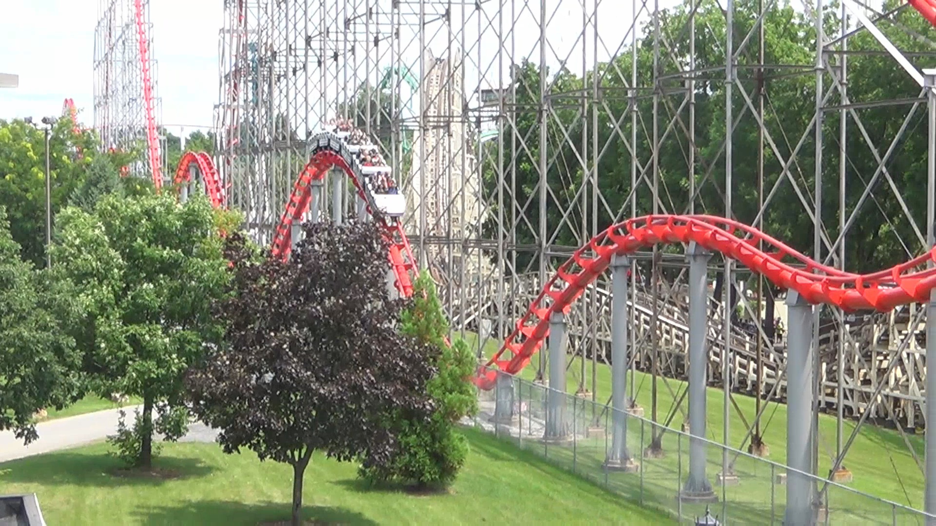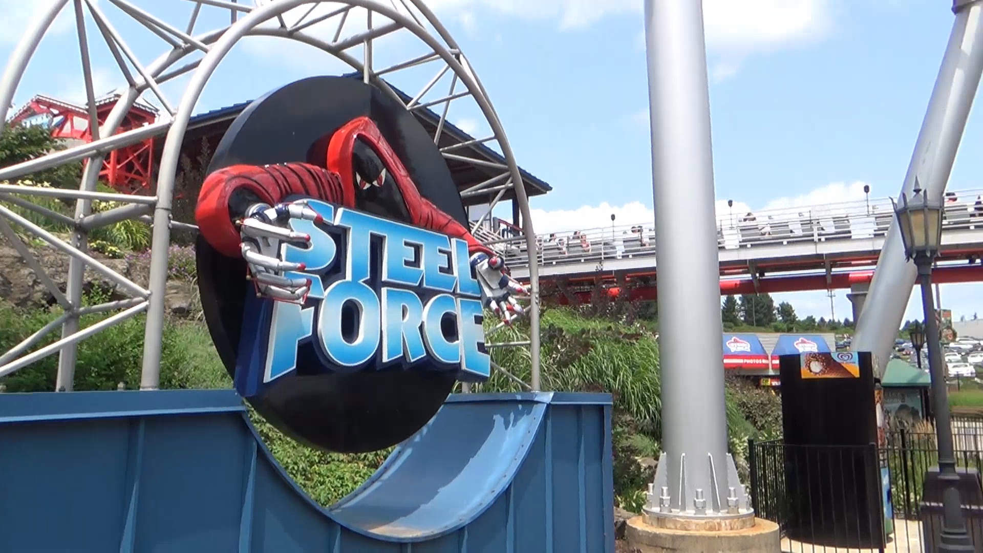 Steel Force das Panorama ein und bildet in einer Linie mit dem kleinen Flüßchen "Cedar Creek" eine Wand als Parkgrenze. Unmittelbar davor steht noch