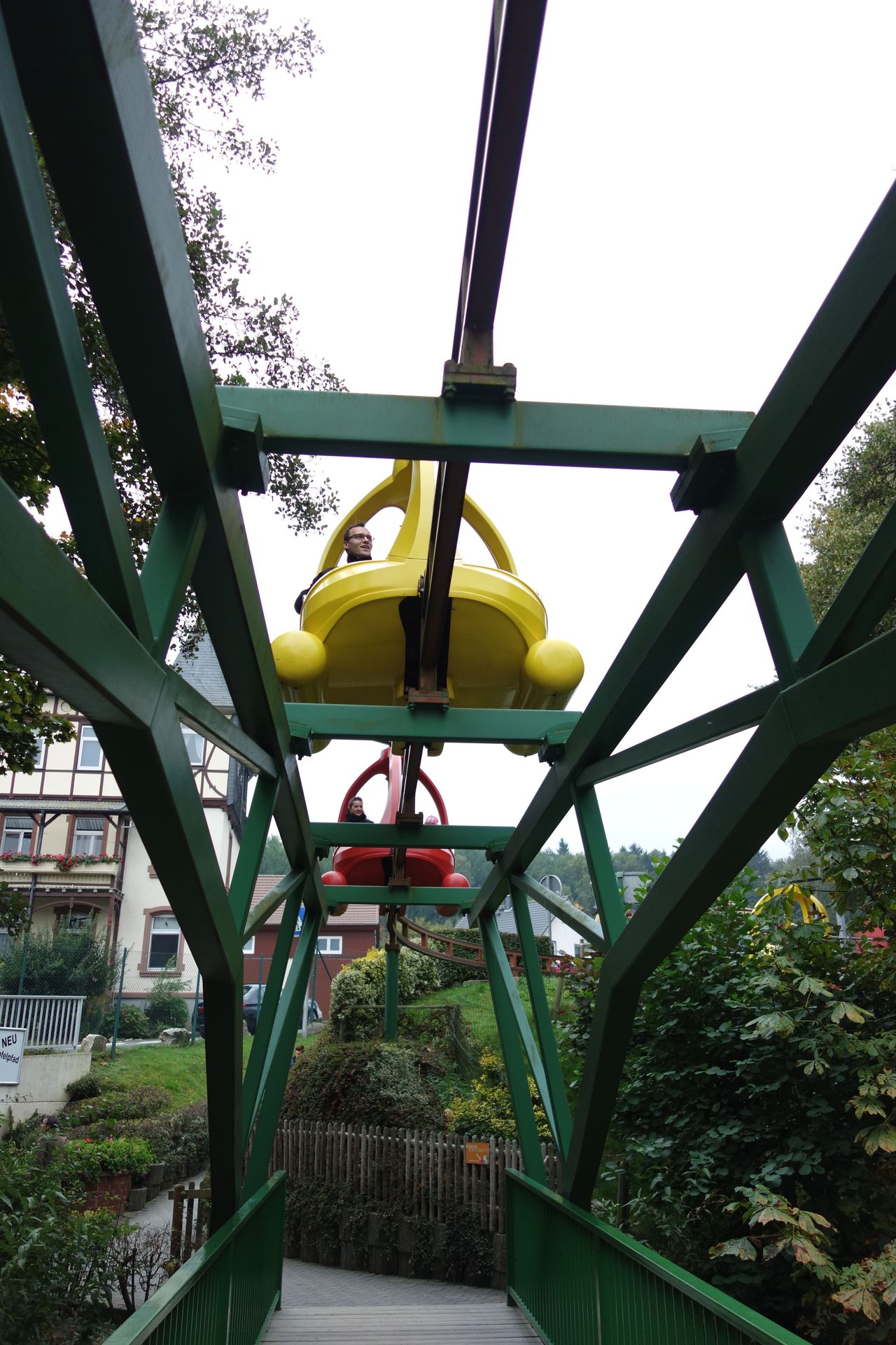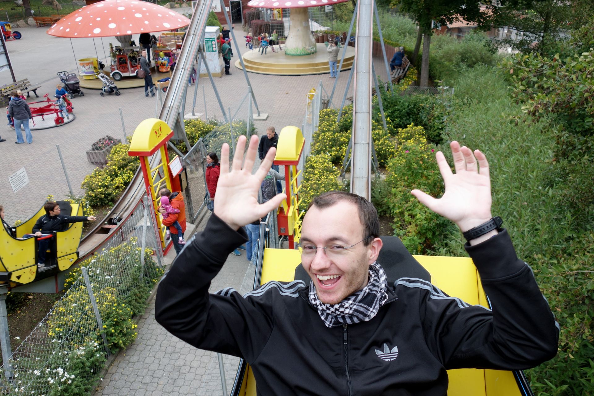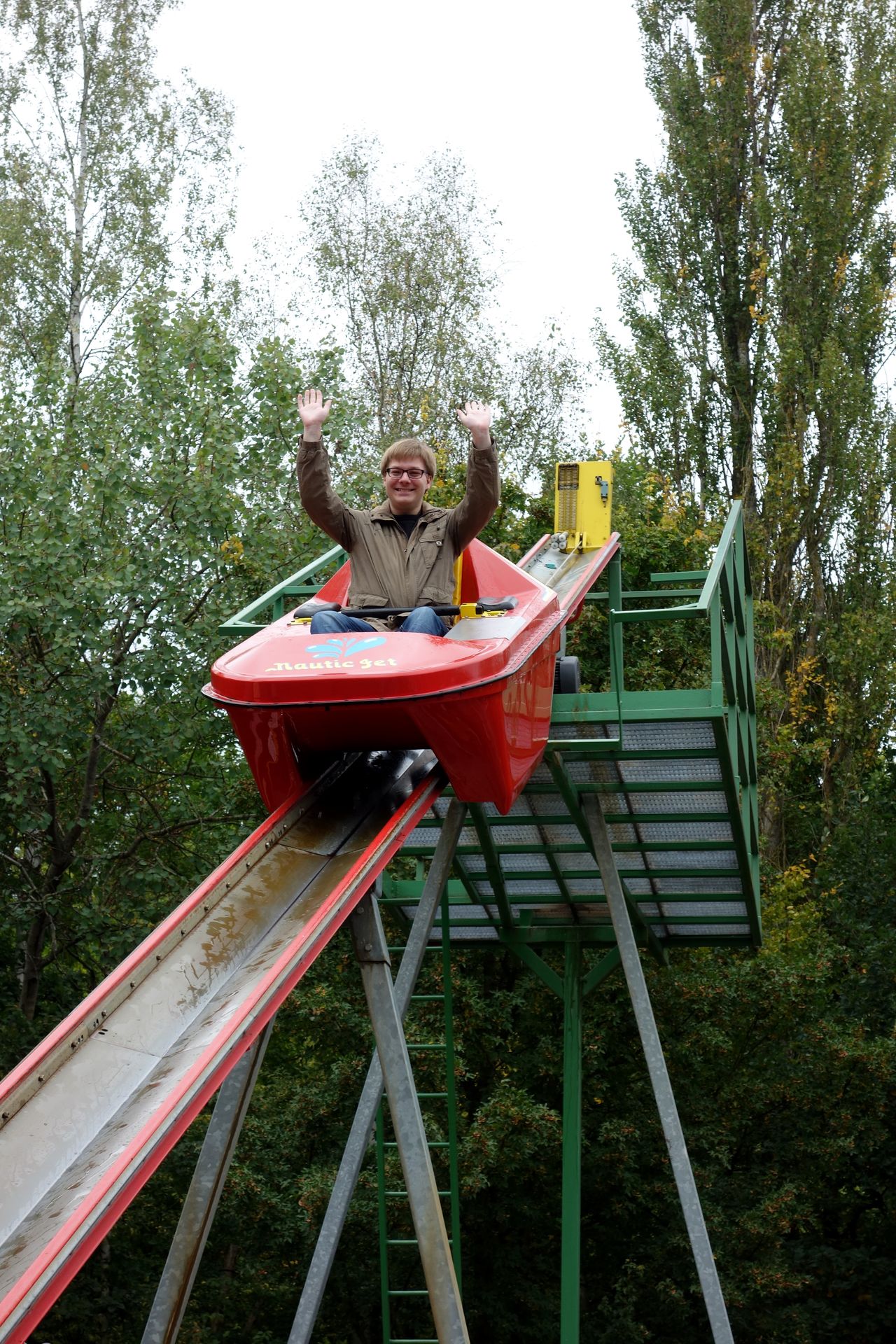 Die zugehörige Attraktion ist eine klassische Berg- und Talbahn von Zierer. Ich glaube, bisher war ich nur solche von Mack gefahren. Jedenfalls kam mir dieses Modell verdammt intensiv vor. Der Druck nach Außen war ordentlich, und die Fahrtzeit auch nicht gerade knapp bemessen.