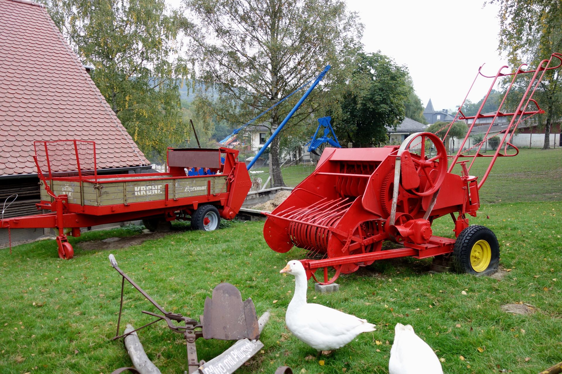 Über den ganzen Park verteilt sind auch Geräte aus der Landwirtschaft ausgestellt.