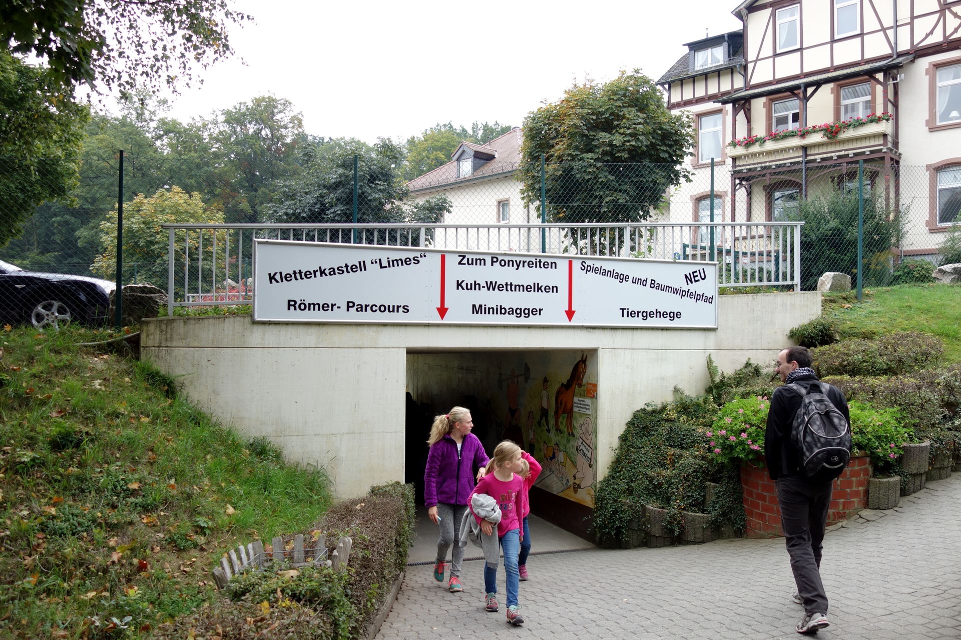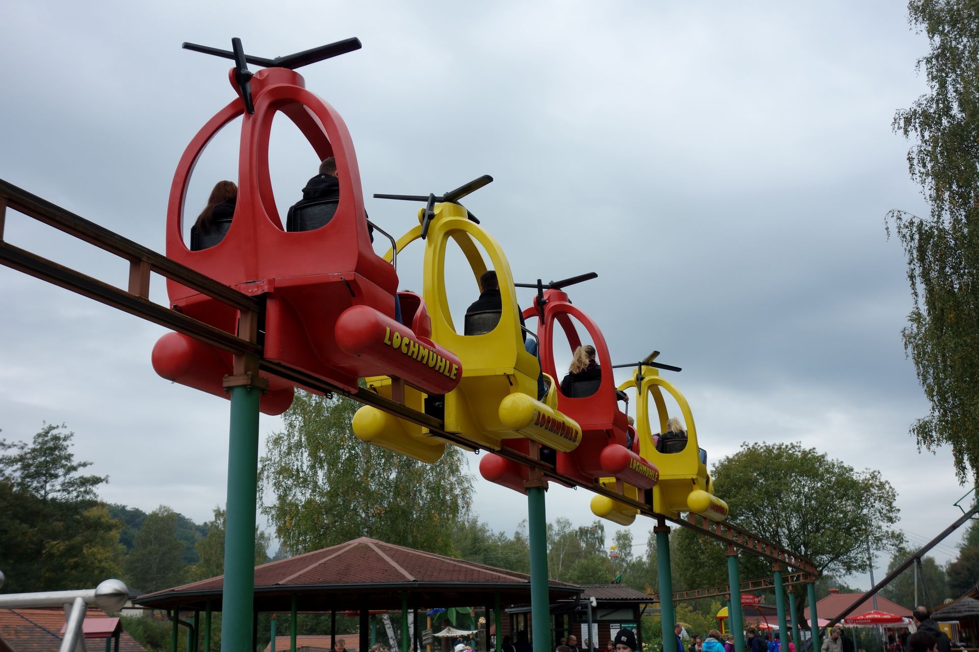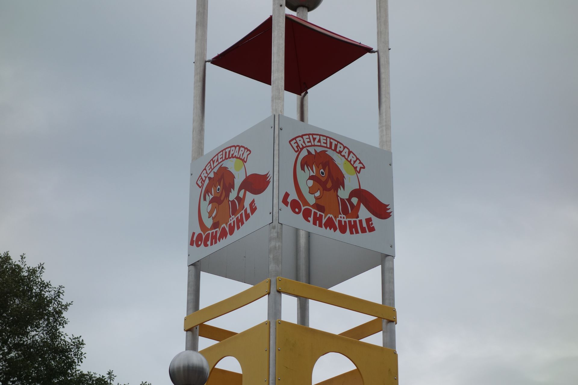 Als Ziele hatte ich zwei eher kleinere Parks im Raum Frankfurt ausgesucht, weshalb die Planung bei mir mit dem Titel "Frankfurter Kranz" lief. Wie üblich erfolgte die Aufnahme meiner Begleitung am Mitfahrerparkplatz bei Gernsheim, dann ging es sofort zum ersten Park. Dieser liegt in Wehrheim und nennt sich Freizeitpark Lochmühle. Wie der Name schon andeutet, geht der Park auf eine alte Mühle zurück, die erstmals im 13. Jahrhundert erwähnt wurde. Mehrfach wurde sie zerstört, einige Pächter litten unter finanziellen Problemen und einer soll sogar eine Bande von Räubern angeführt haben. Später wurde es dann doch etwas gesitteter und der damalige Besitzer eröffnete im Jahr 1867 eine Gastwirtschaft als zweites Standbein. Um 1900 wurde der Mühlbetrieb schließlich eingestellt. Stattdessen richtete man für den aufkommenden Tourismus ein Gasthaus ein. Nach dem zweiten Weltkrieg wurde das Land zunächst landwirtschaftlich genutzt, später folgte ein Reiterhof. Erste Spielgeräte wurden in den 70er Jahren aufgestellt, womit der Grundstein für den heutigen Freizeitpark gelegt wurde. Die Landwirtschaft ist aber nach wie vor ein großes Thema in der Lochmühle. Doch genug zur Geschichte, kommen wir zurück zur Gegenwart (oder besser gesagt zur jüngeren Vergangenheit ).