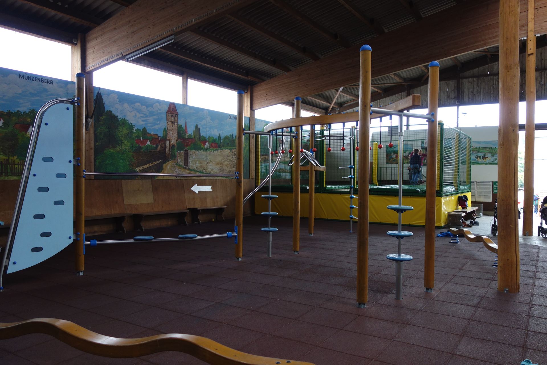 Eine große Halle gleich neben dem Eingang bietet noch Spielmöglichkeiten für Schlechtwettertage.