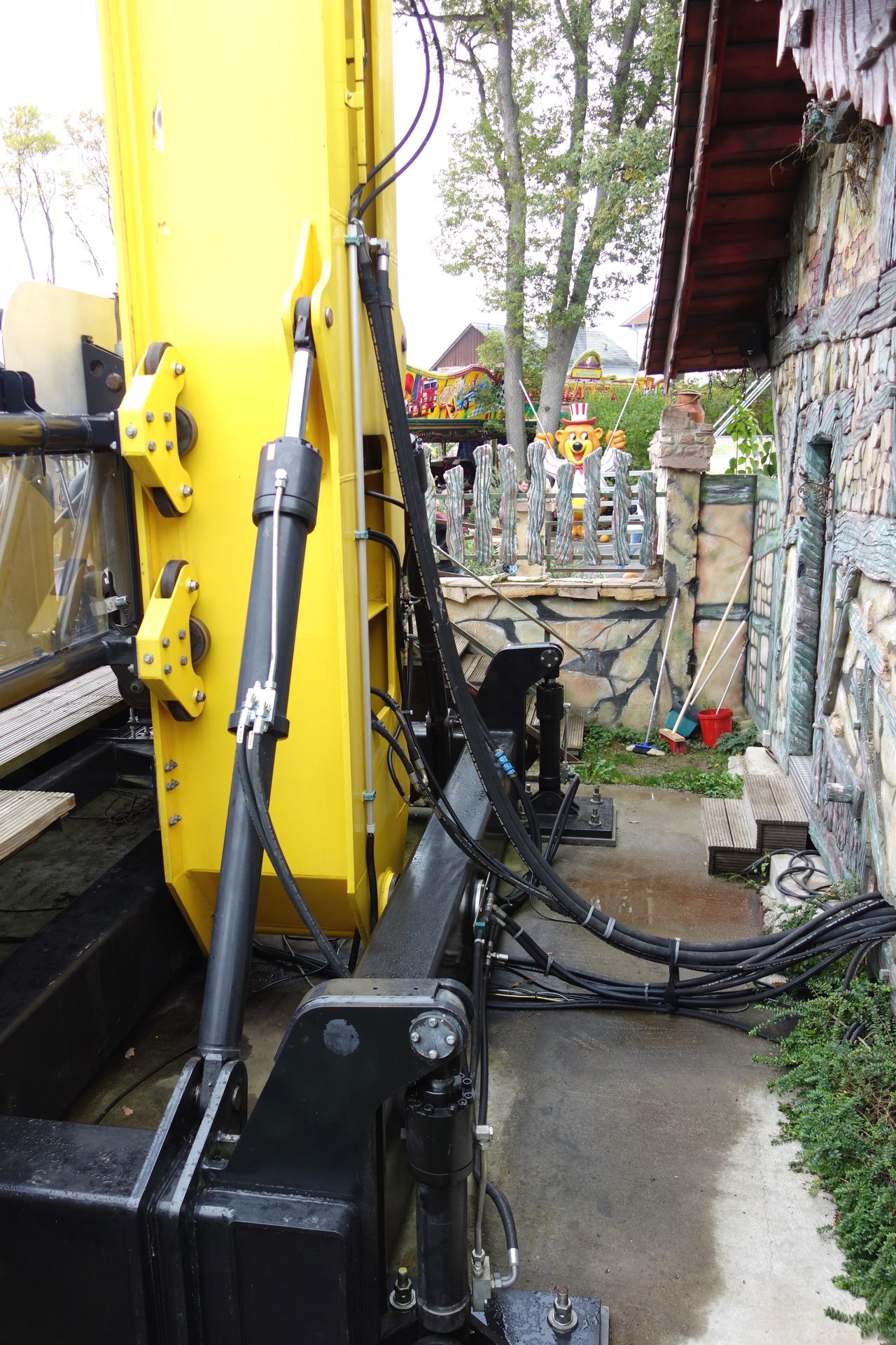 Die Besonderheit sind die Hydraulikzylinder am Fuße des 14 Meter hohen Turms.