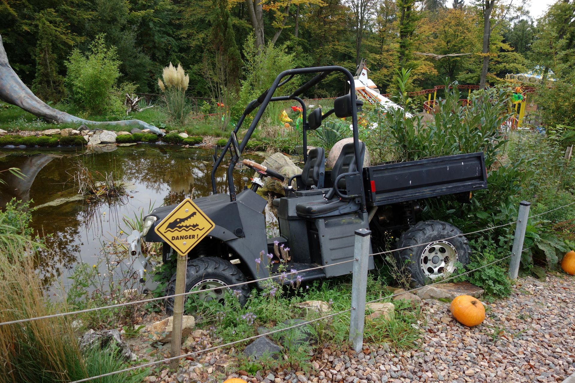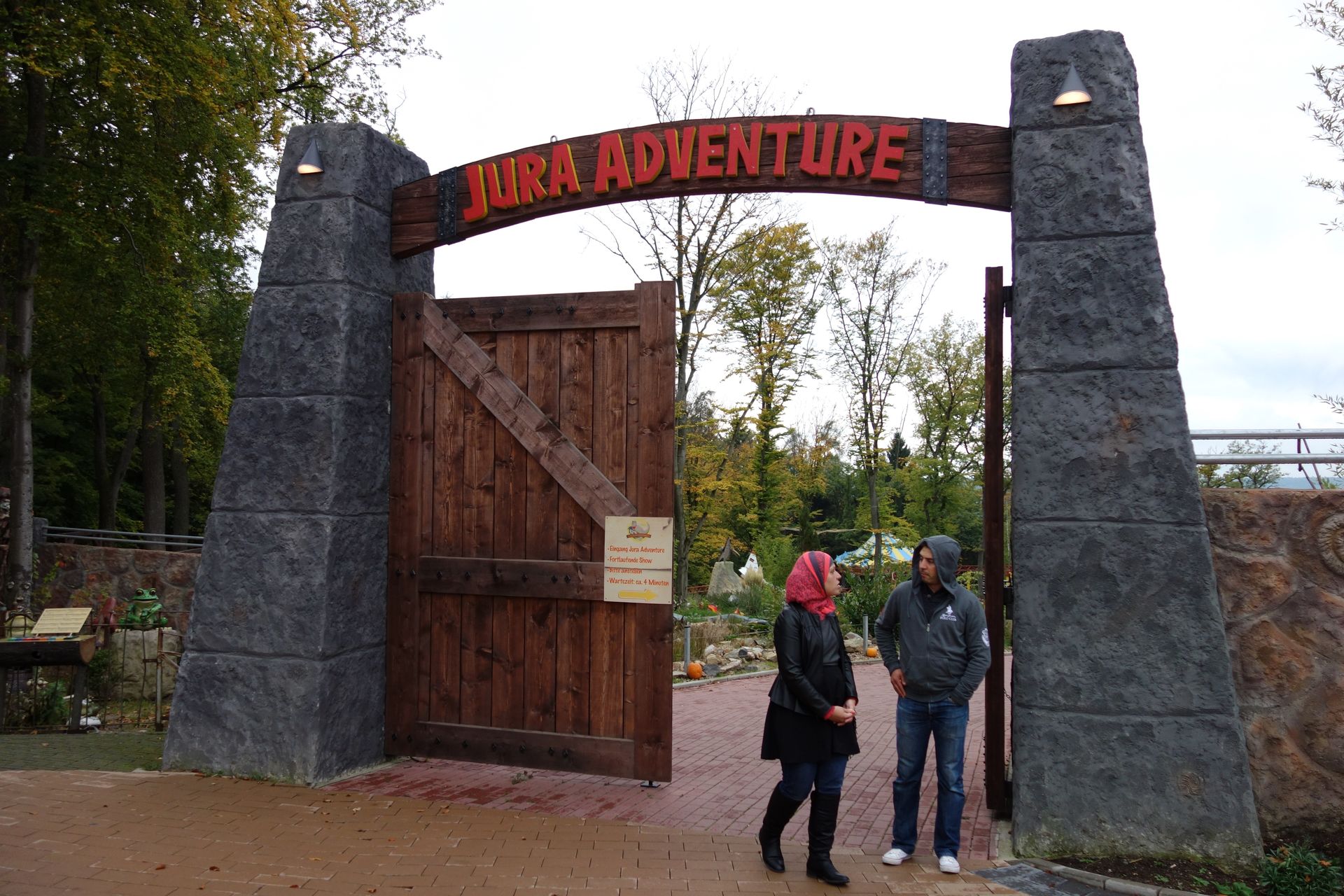 Unser zweites und letztes Ziel an diesem Tag versteckt sich mitten im dicht bewaldeten Taunus. Kein Wunder, dass mein Navi mal wieder Probleme hatte, die geforderte Adresse zu finden. Ich hatte wohl versehentlich einen nur ähnlichen Straßennamen erwischt, sodass wir schließlich irgendwo auf einem Berg standen. Einen recht großen Parkplatz gab es dort zwar in der Tat, der war aber wohl für Wanderer gedacht, denn einen Freizeitpark konnten wir nicht ausmachen. Letztlich mussten wir wieder umdrehen, zurück ins Tal und auf der anderen Seite hoch. Dort fanden wir dann tatsächlich den gesuchten Park. Die Einfahrt zum offenbar komplett erneuerten Parkplatz erkannte ich dank noch provisorischer Beschilderung allerdings zu spät. Beim zweiten Anlauf klappte aber auch das und wir konnten endlich zur Tat schreiten.
