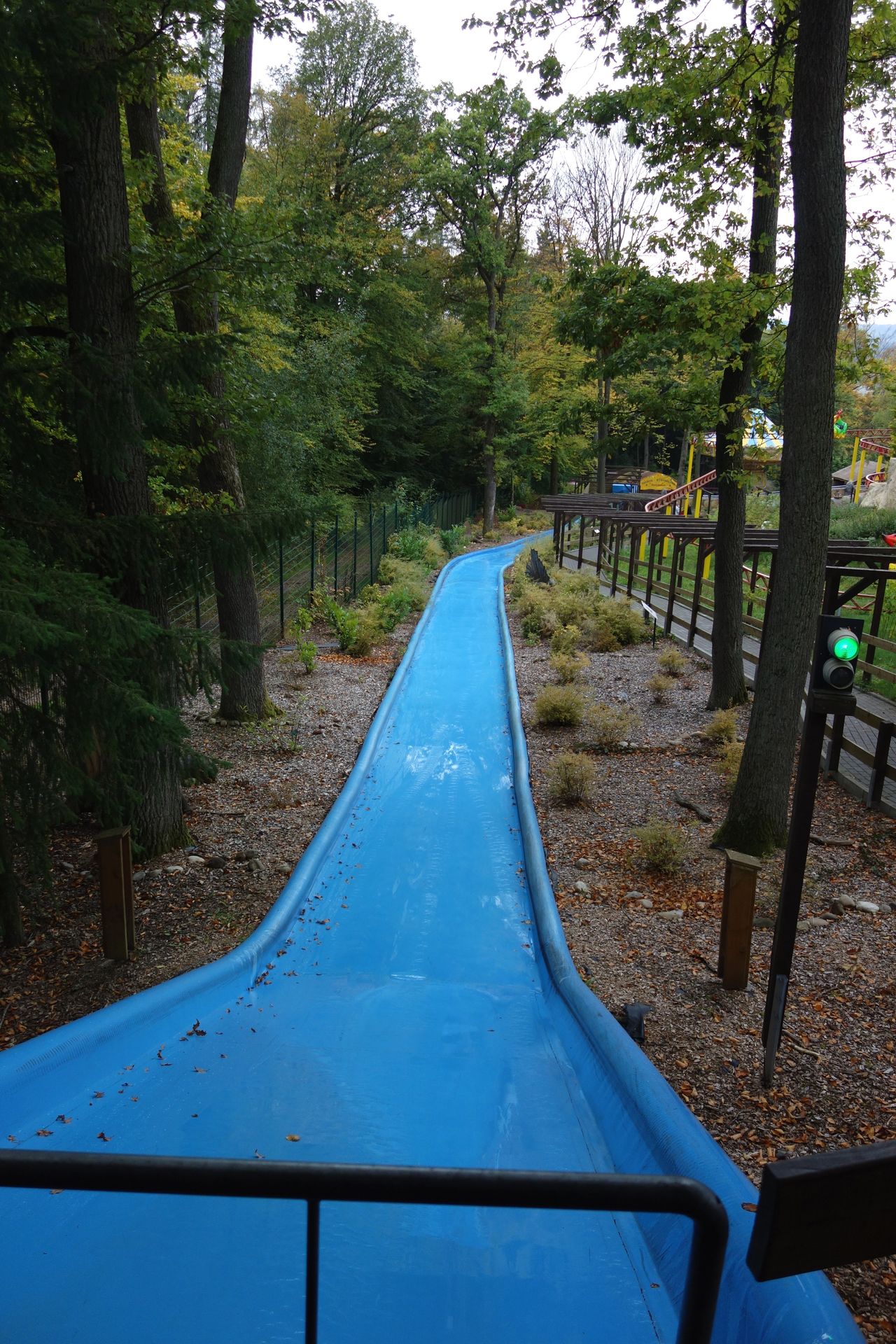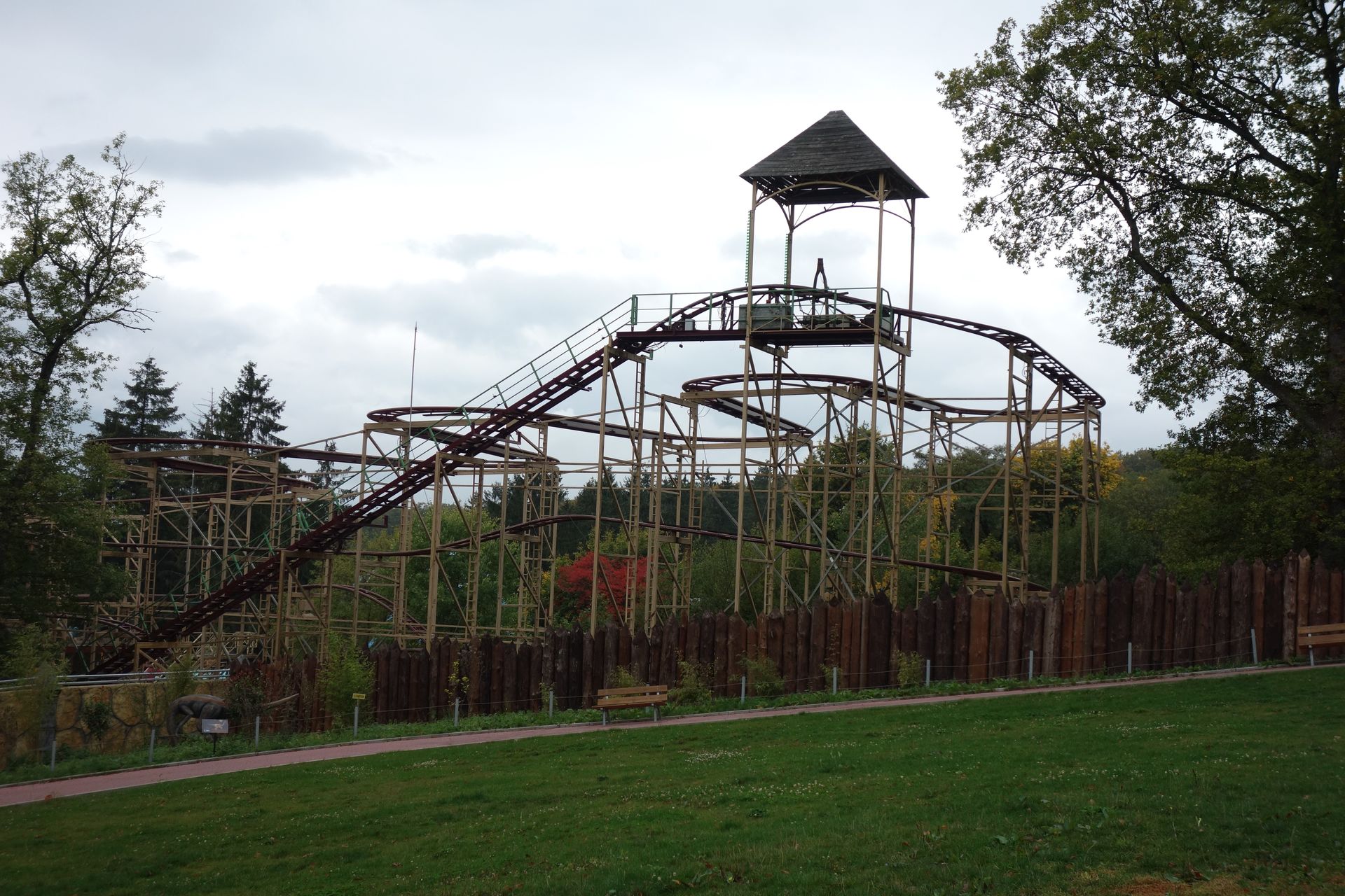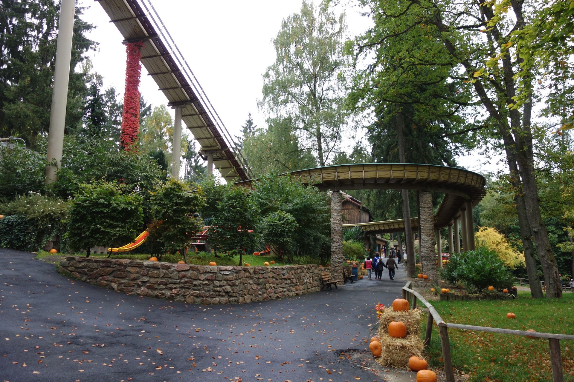 Und einen Autoscooter. Dann beginnt auch schon der Abstieg, denn der Park liegt im Hang und überwindet einige Höhenmeter.