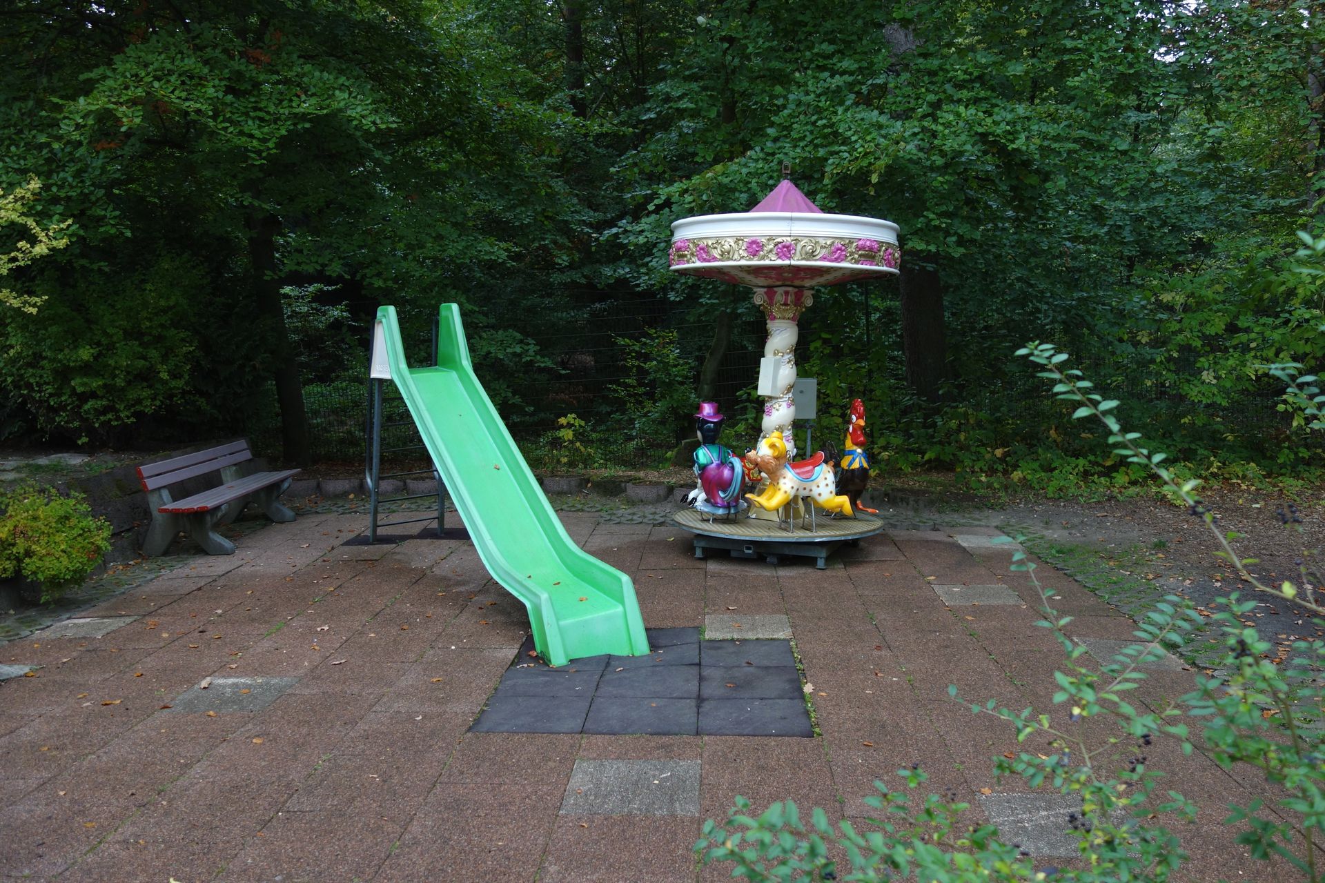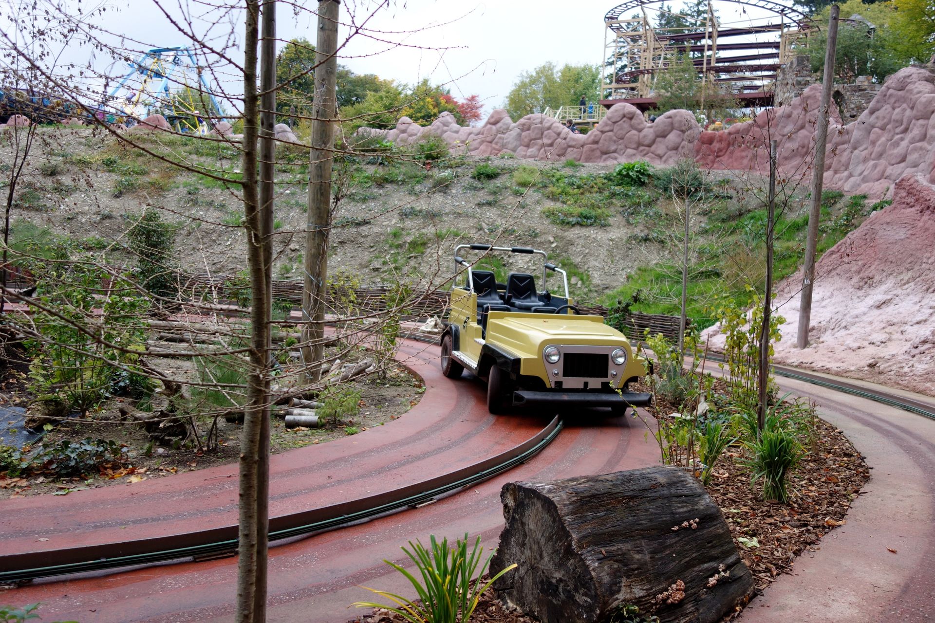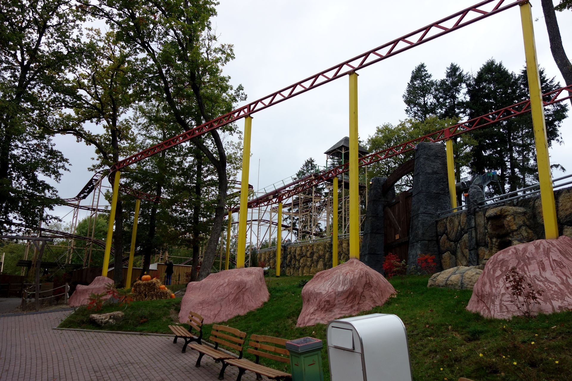 Und einen Autoscooter. Dann beginnt auch schon der Abstieg, denn der Park liegt im Hang und überwindet einige Höhenmeter.